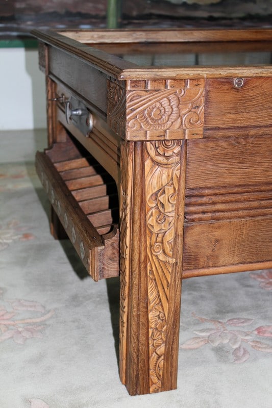 Depuis 50 ans, chaque pièce de mobilier est minutieusement restaurée avec passion dans notre atelier d’ébénisterie.