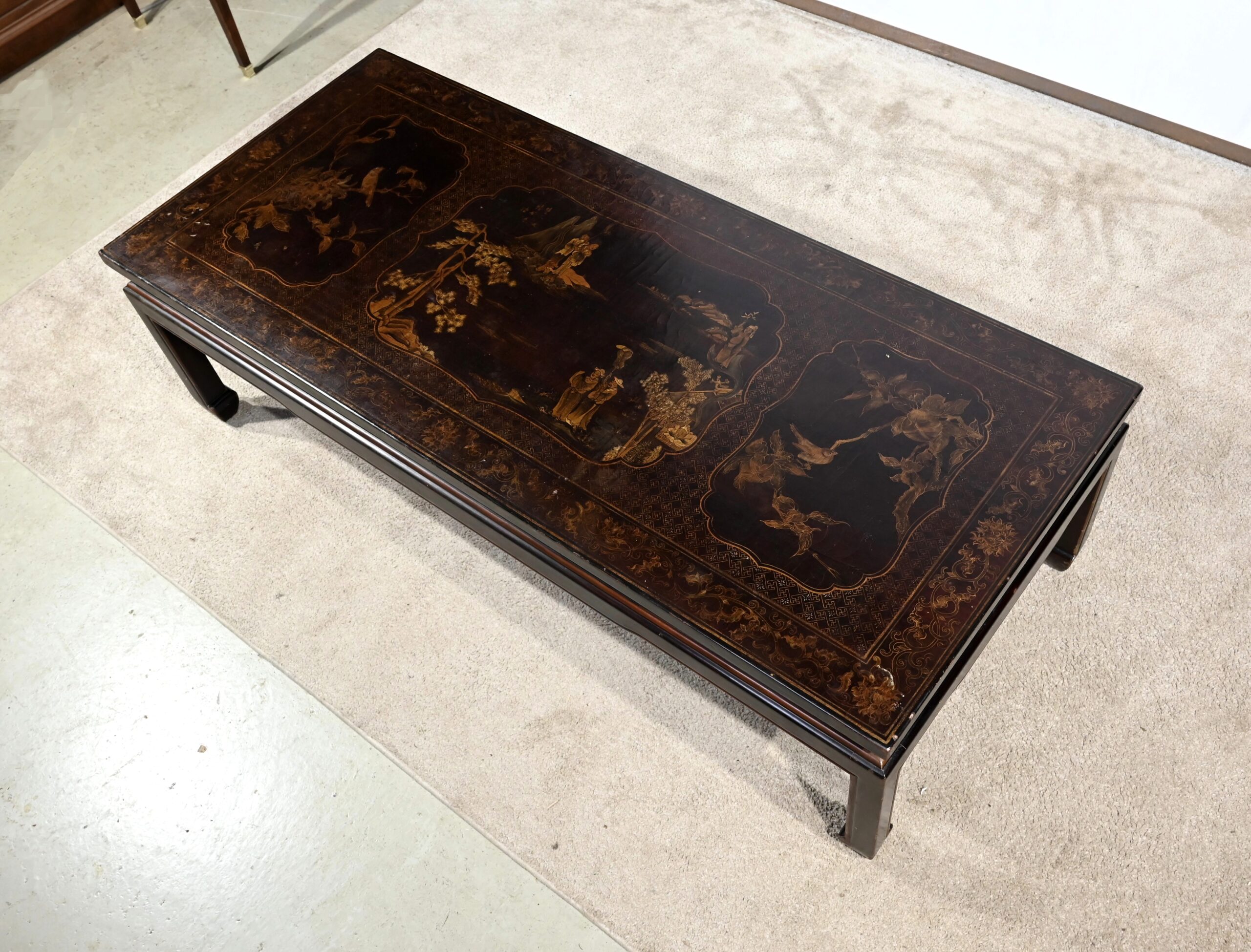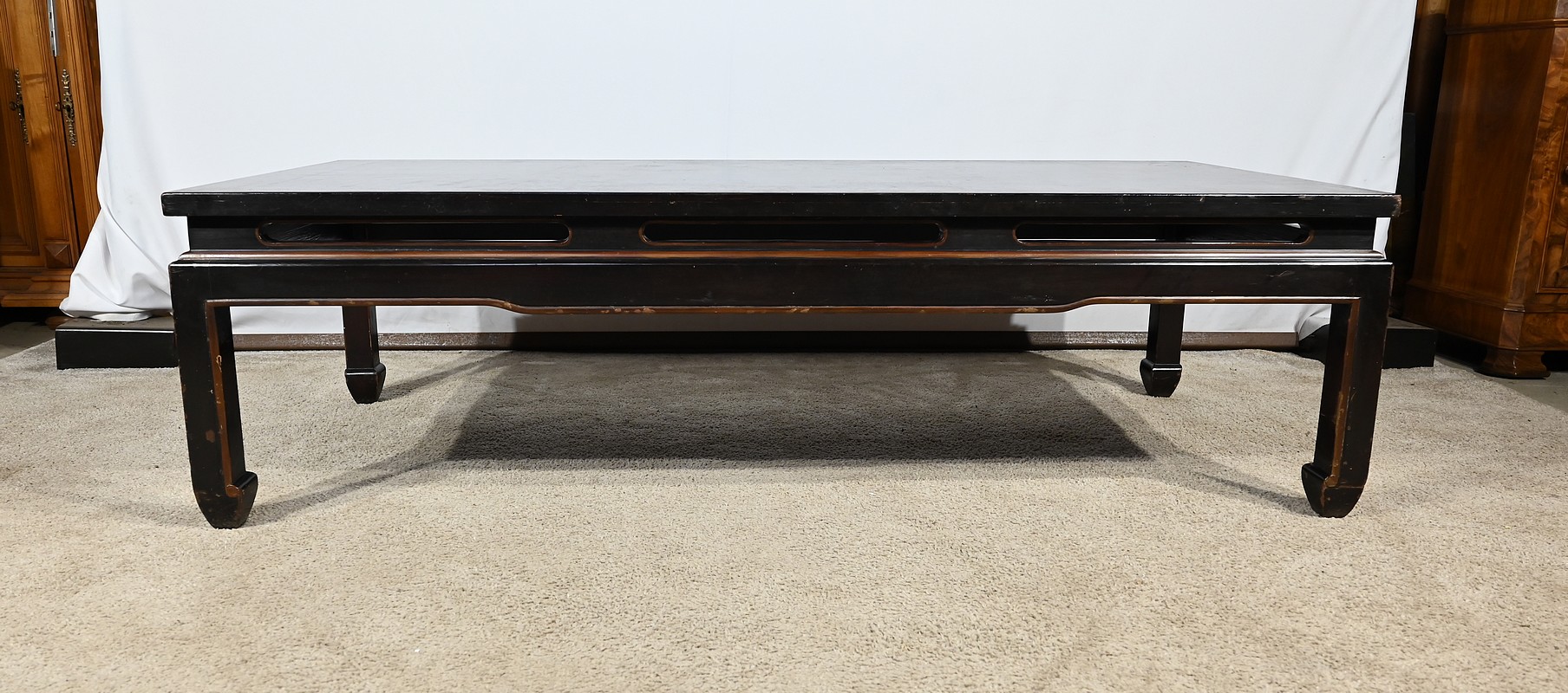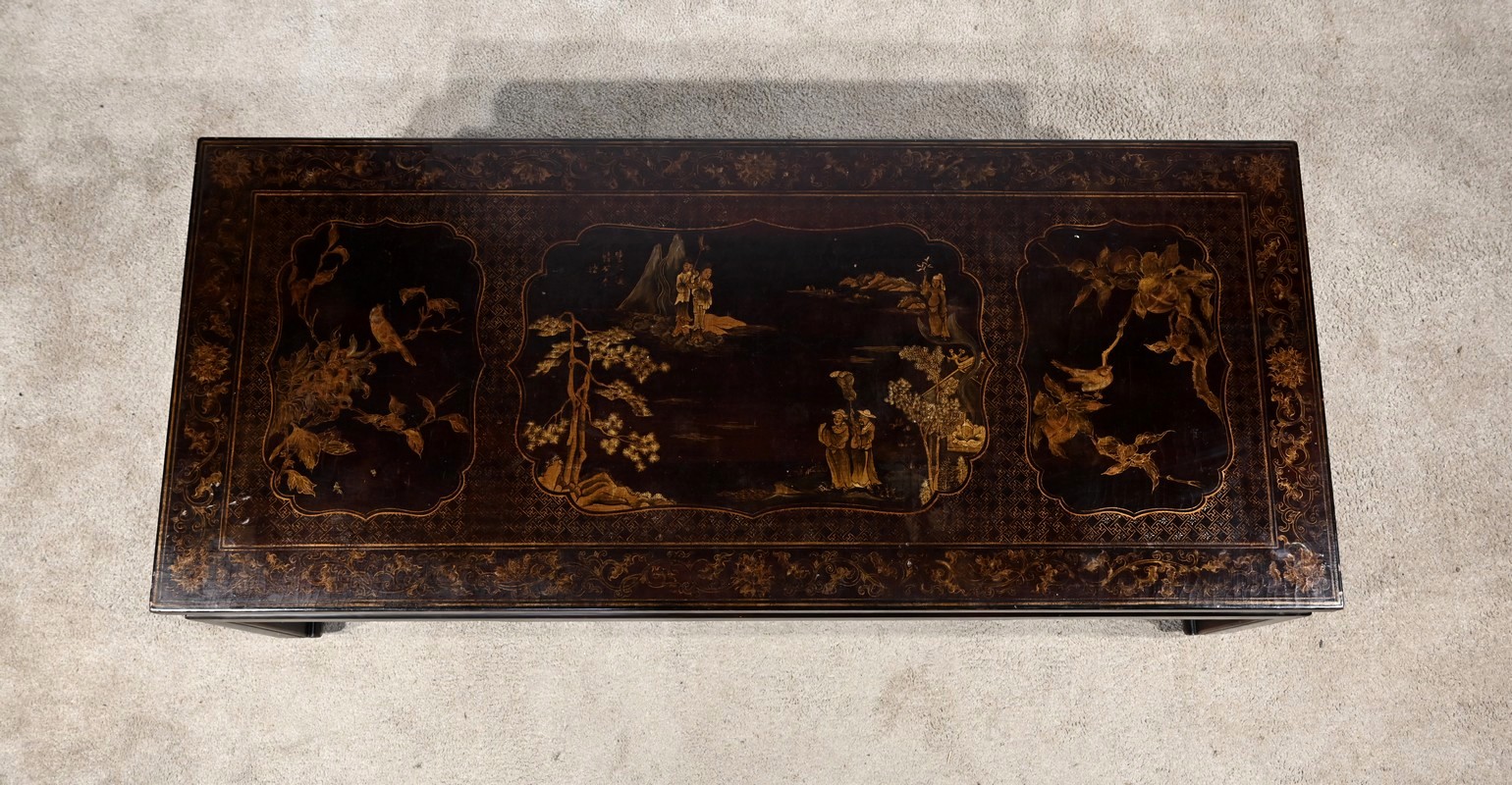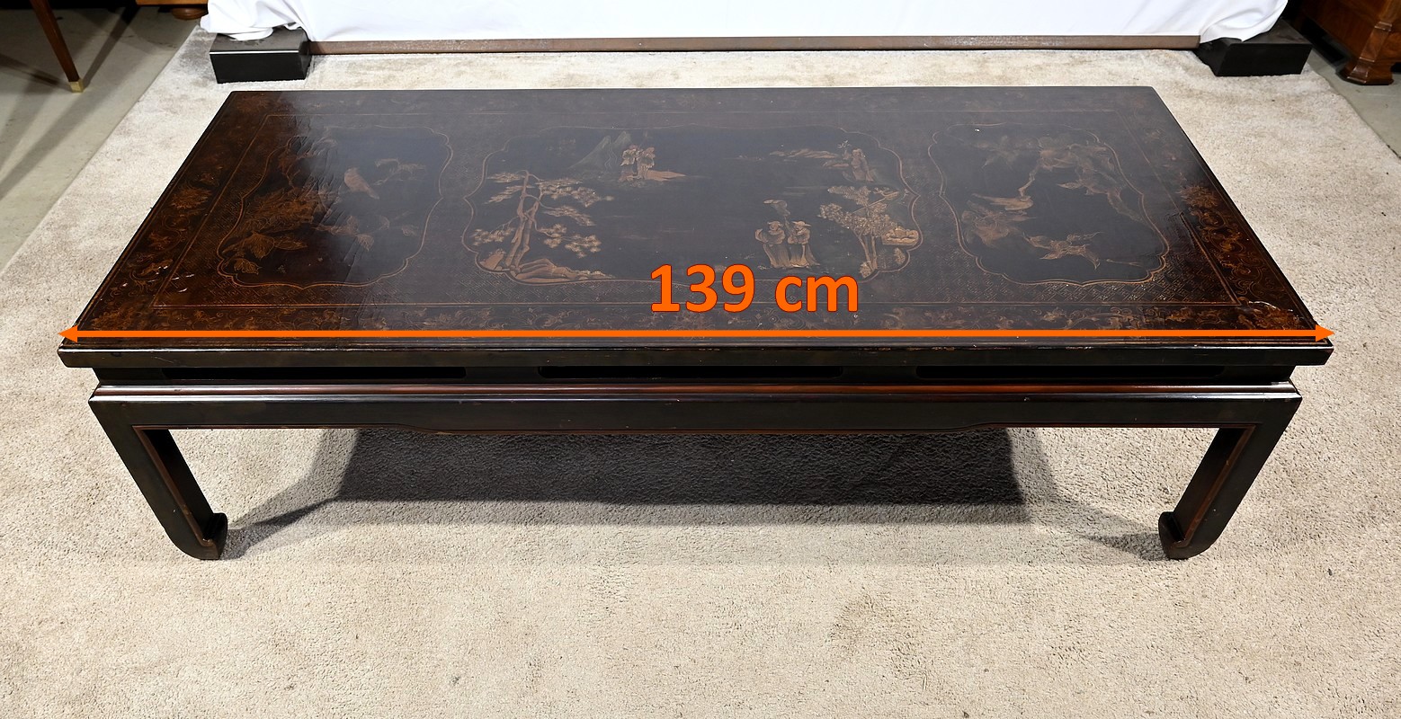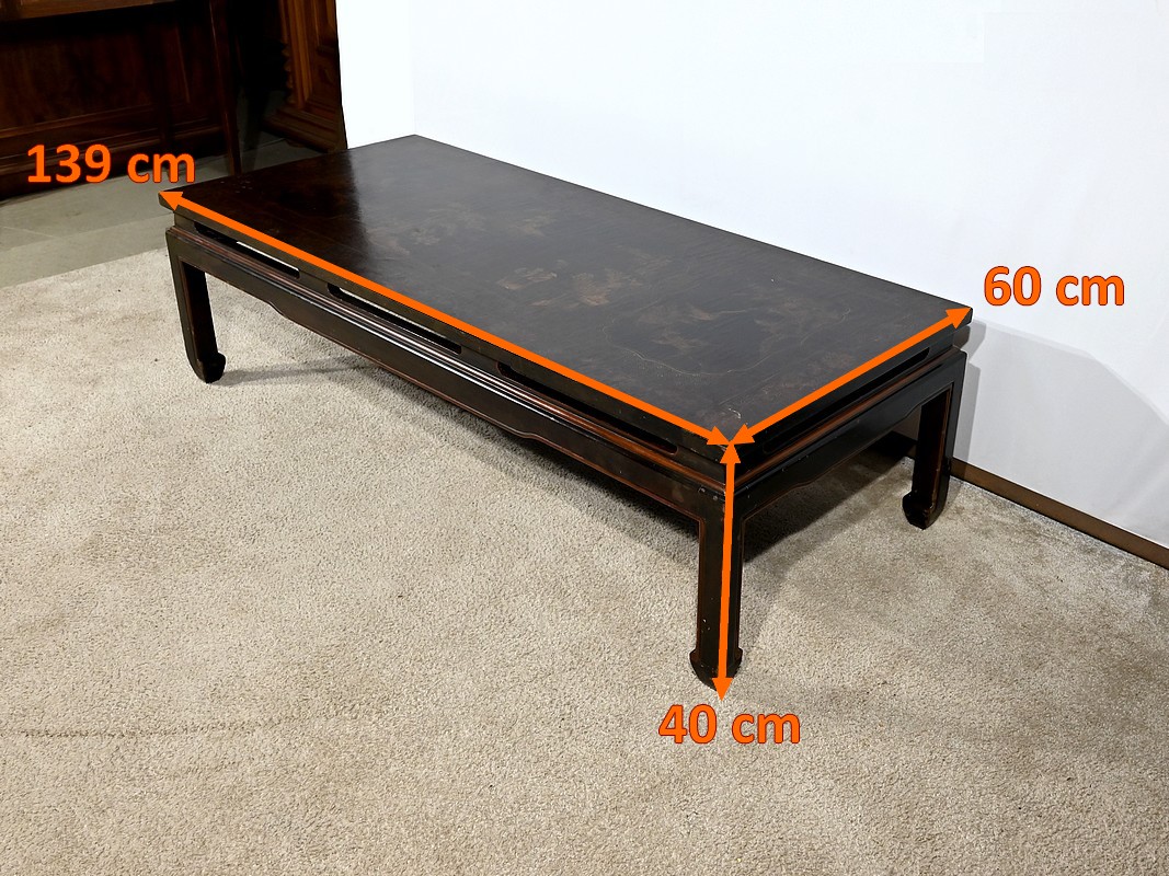 Importante Table Basse Asiatique, en Bois laqué noir – Milieu XXe