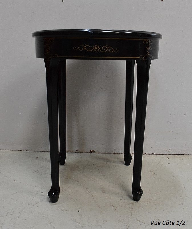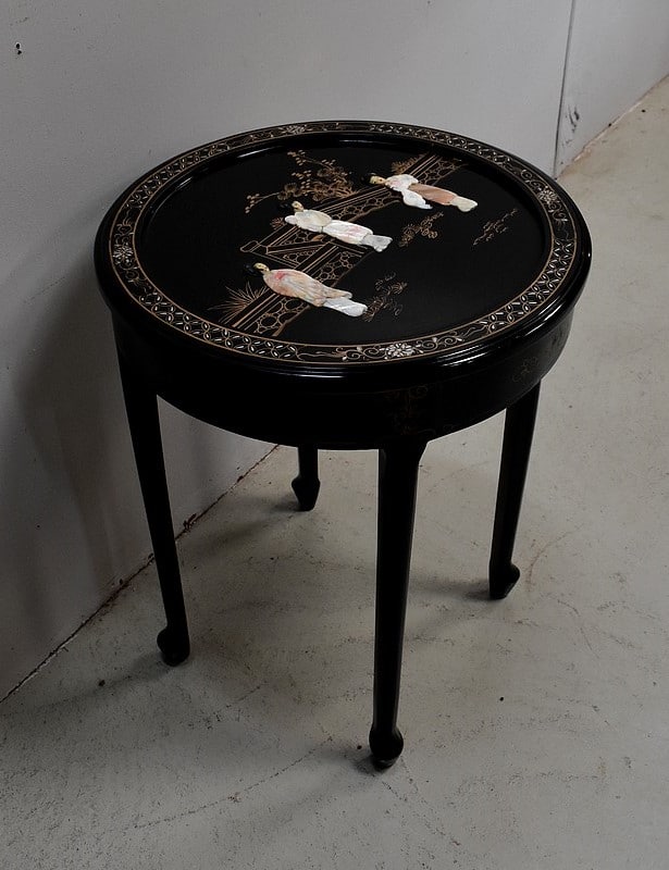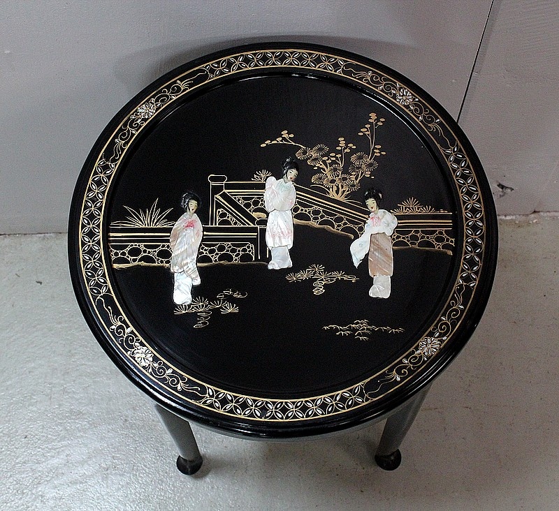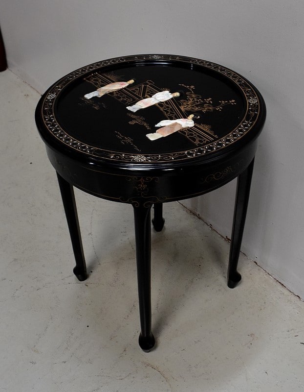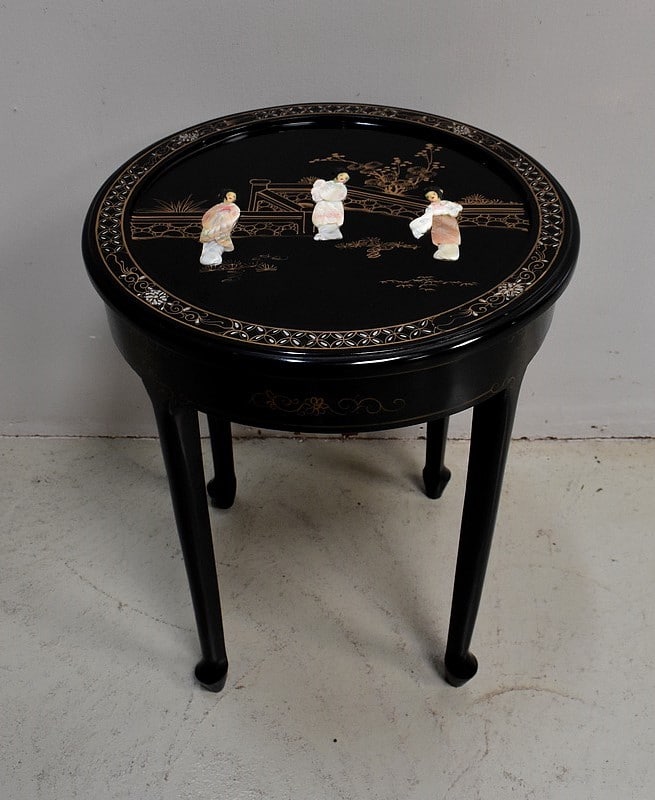 Petite Table Asiatique Ronde en bois laqué Noir – XXe
