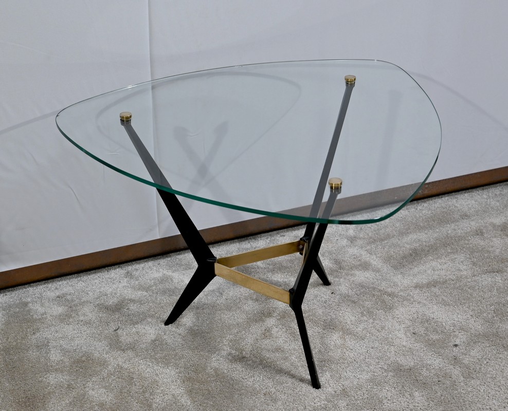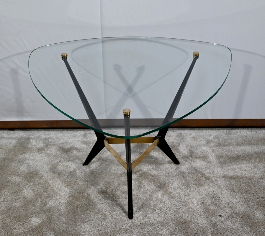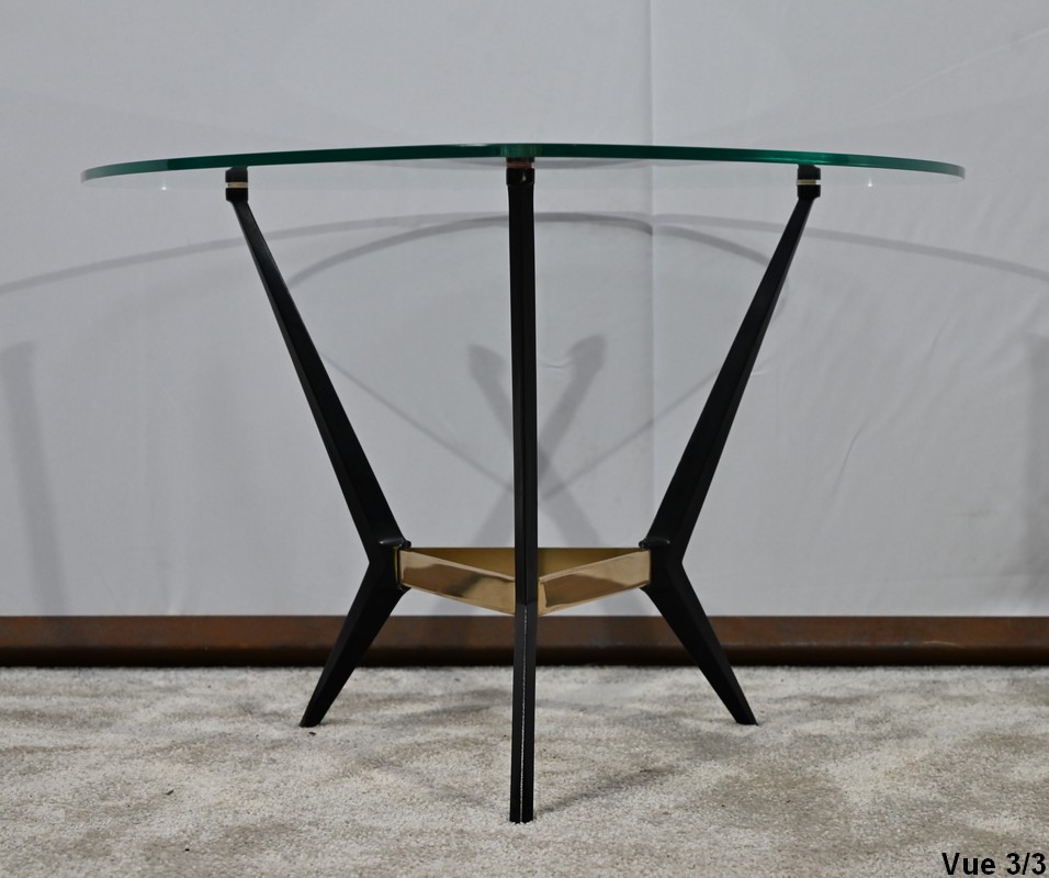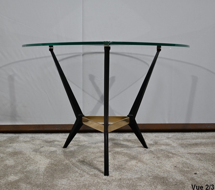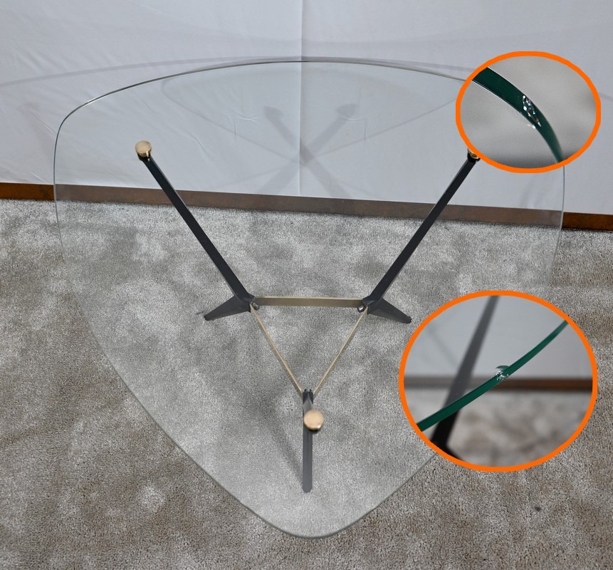 Petite Table Basse en Verre et Métal – 1980