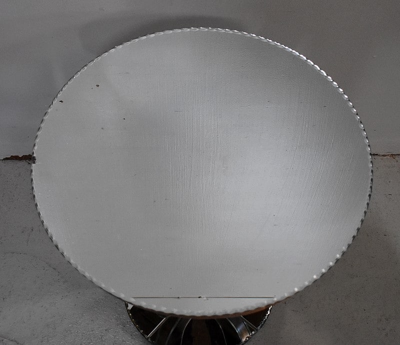 Son dessus, Rond, est garni d’un plateau de Verre aux pourtours Guillochés.
