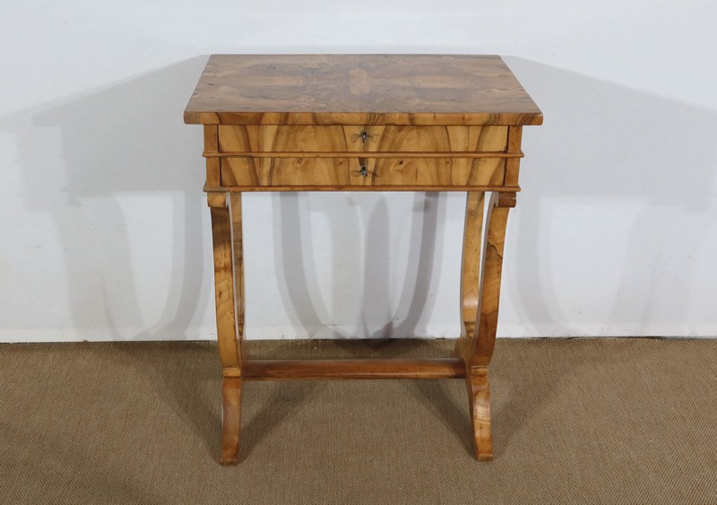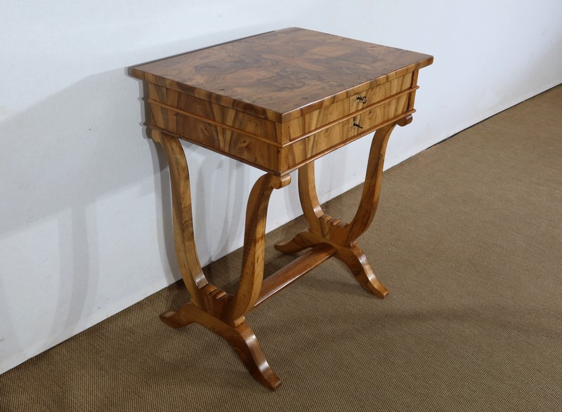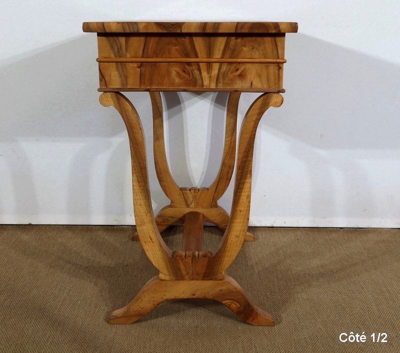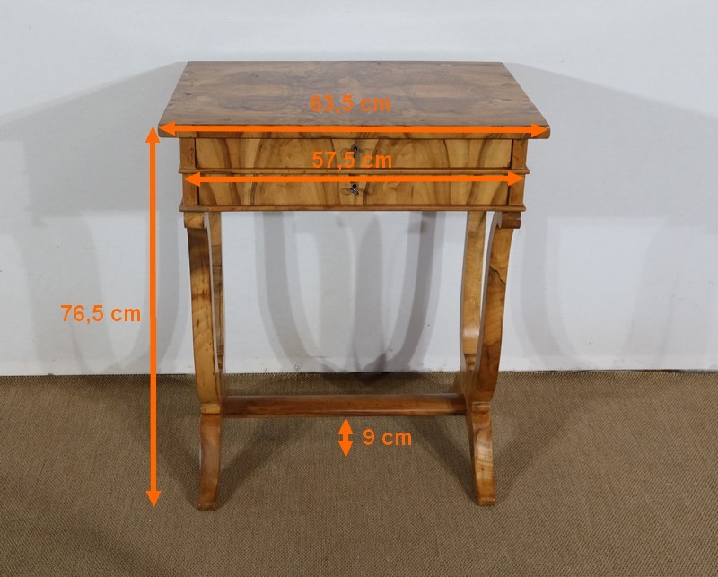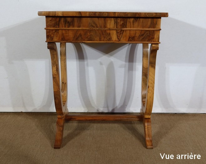 Charmante petite Table de salon d’époque Restauration, mise en valeur avec subtilité par les nuances du Noyer.