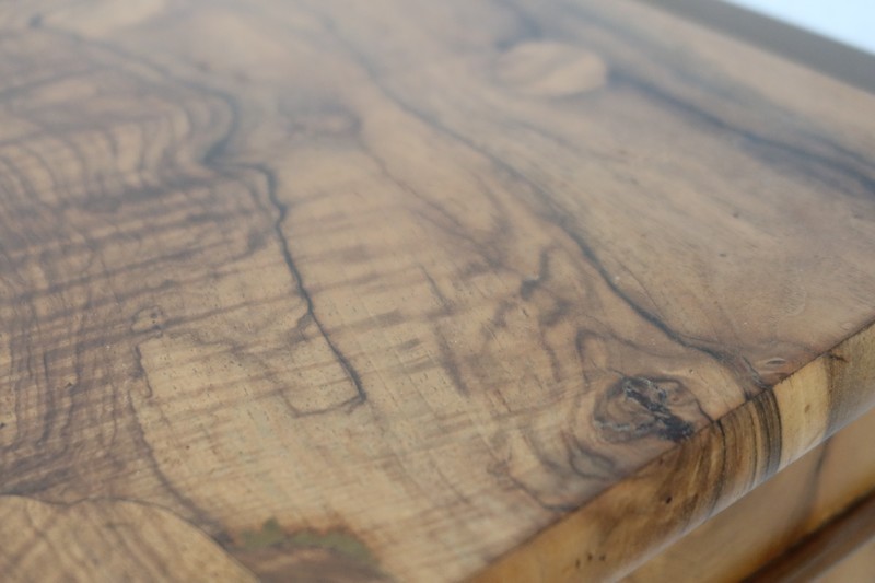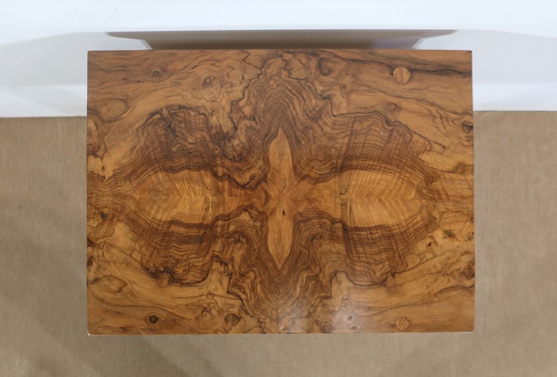 Le dessus est composé de 4 éléments de placage de cœur de noyer, technique dite « à Quatre Feuilles ».
