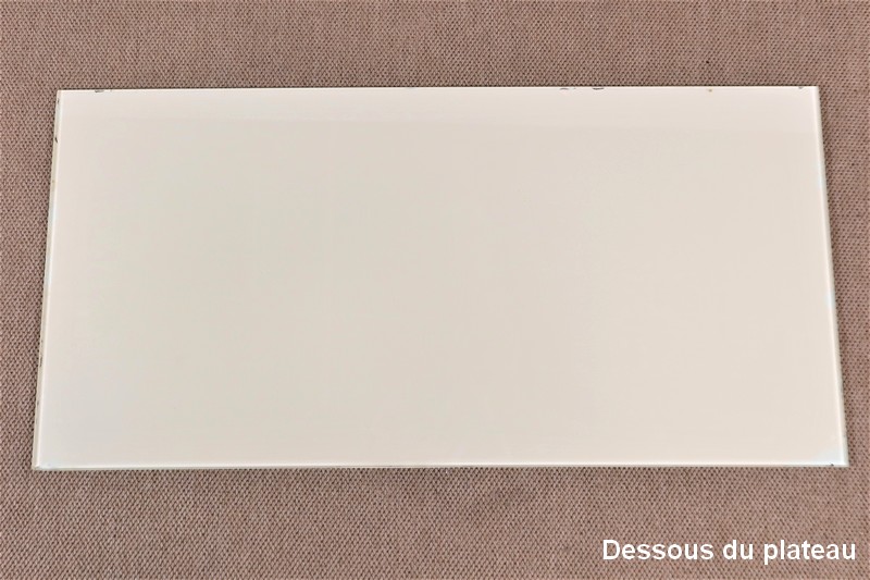 Le dessus du bout de canapé est un verre naturel et transparent légèrement biseauté.