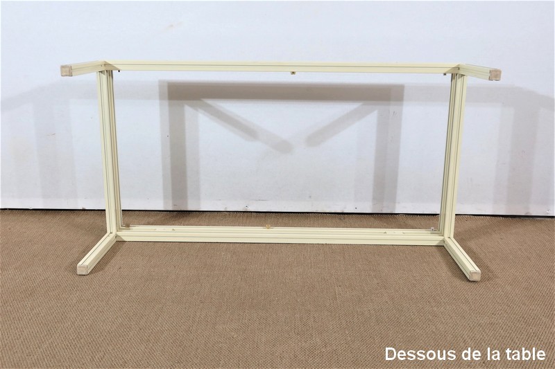 Cette table basse et ce bout de canapé n’y font pas exception. Ils sont composés, pour la table, d’une double ossature de section carrée et d’une simple ossature pour le bout de canapé.