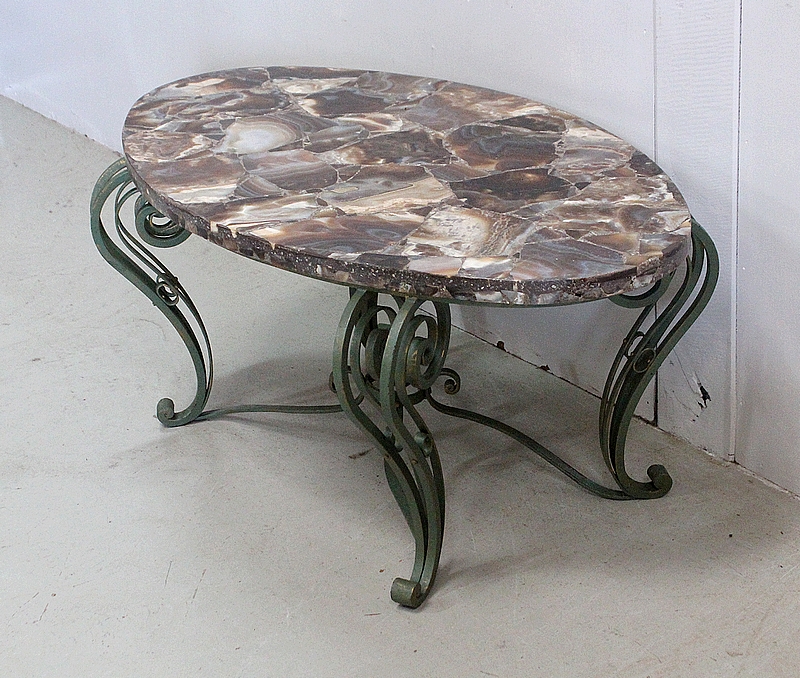 Charmante Table Basse de Milieu, avec structure en Fer Forgé, conçue dans les Années 1950.