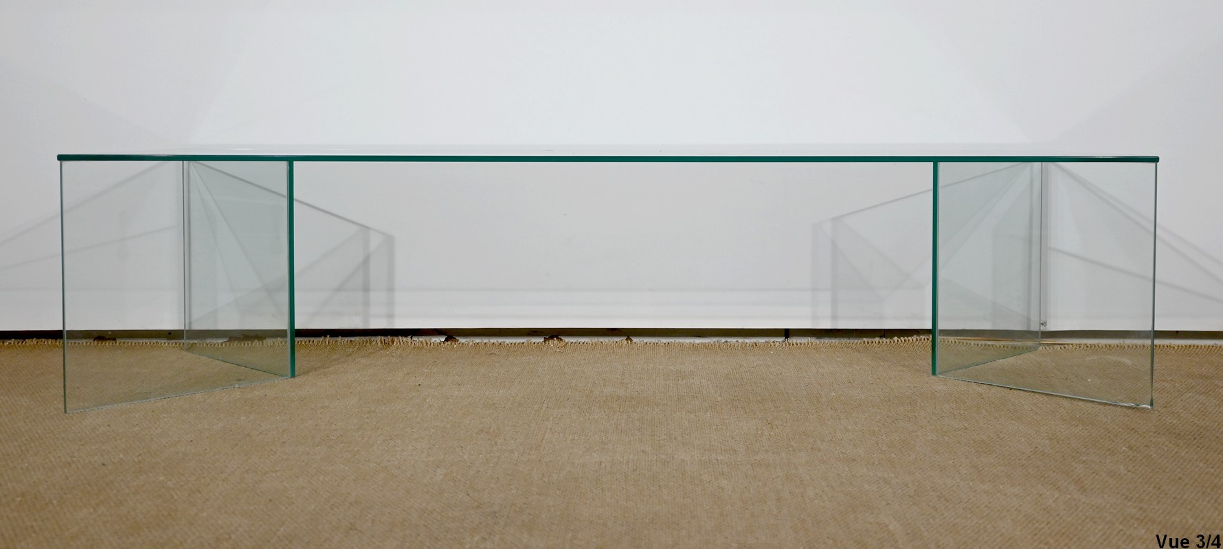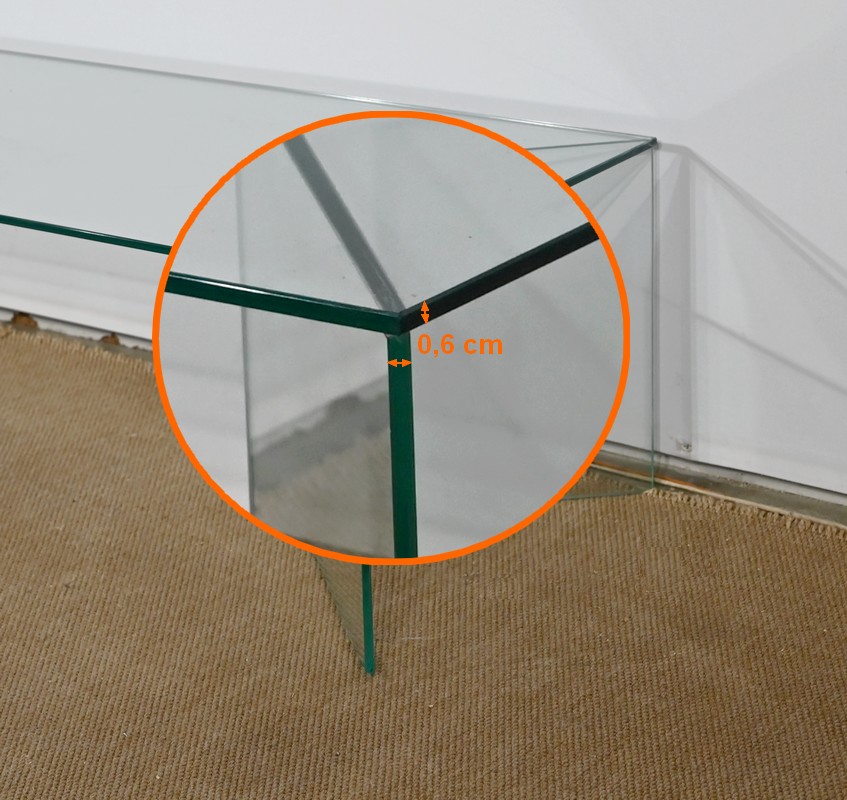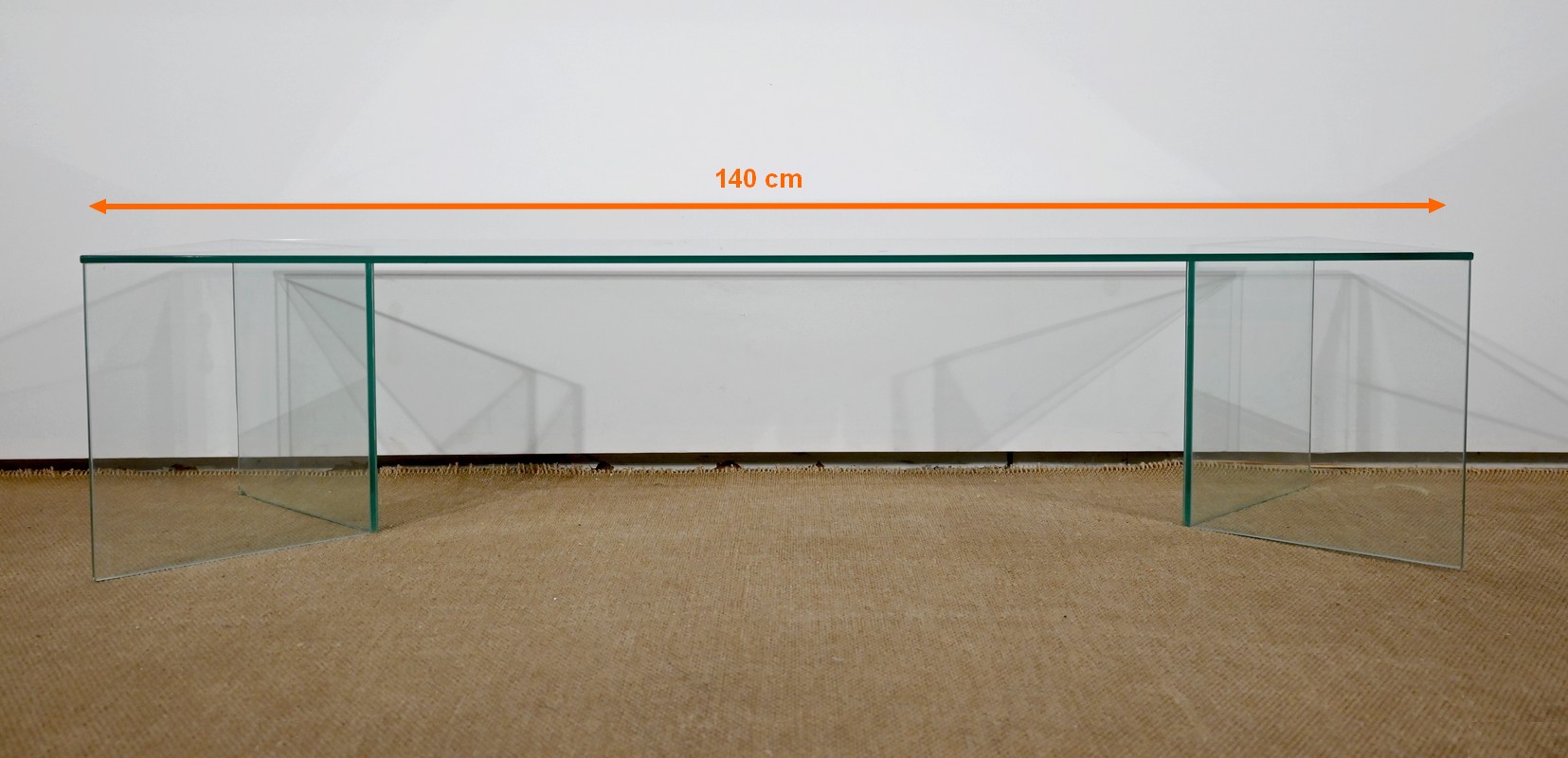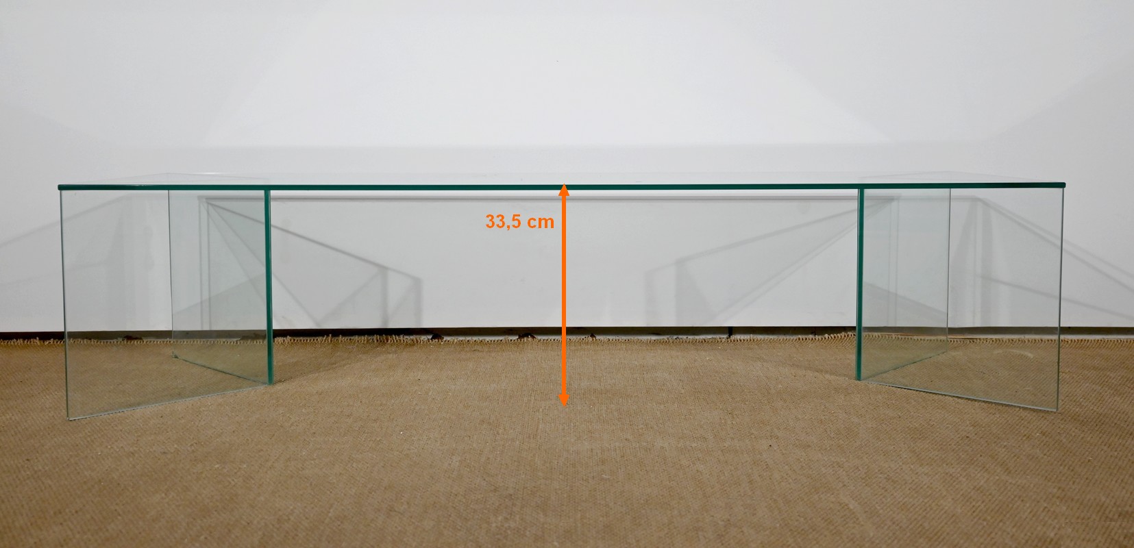 Cette table basse en verre, au design très épuré, s’harmonisera particulièrement bien dans un style actuel et moderne.