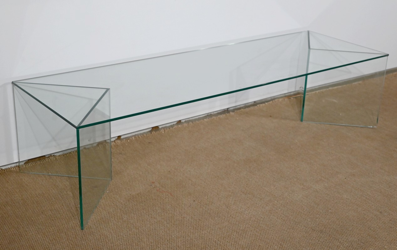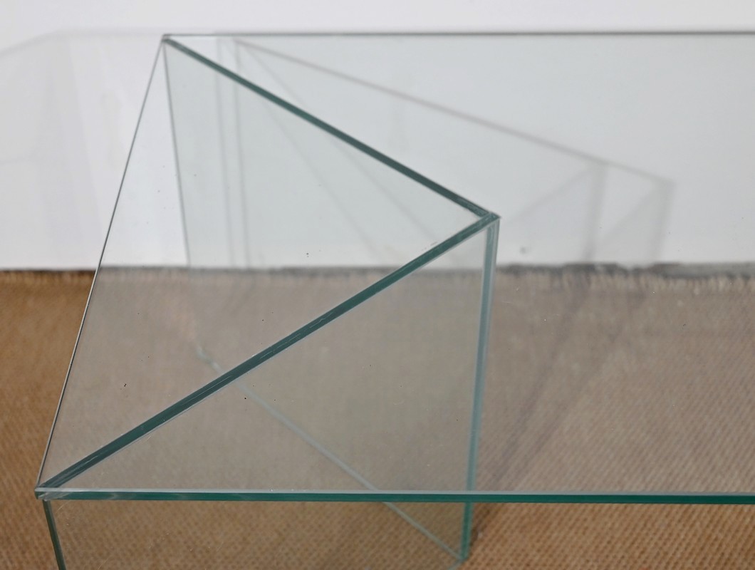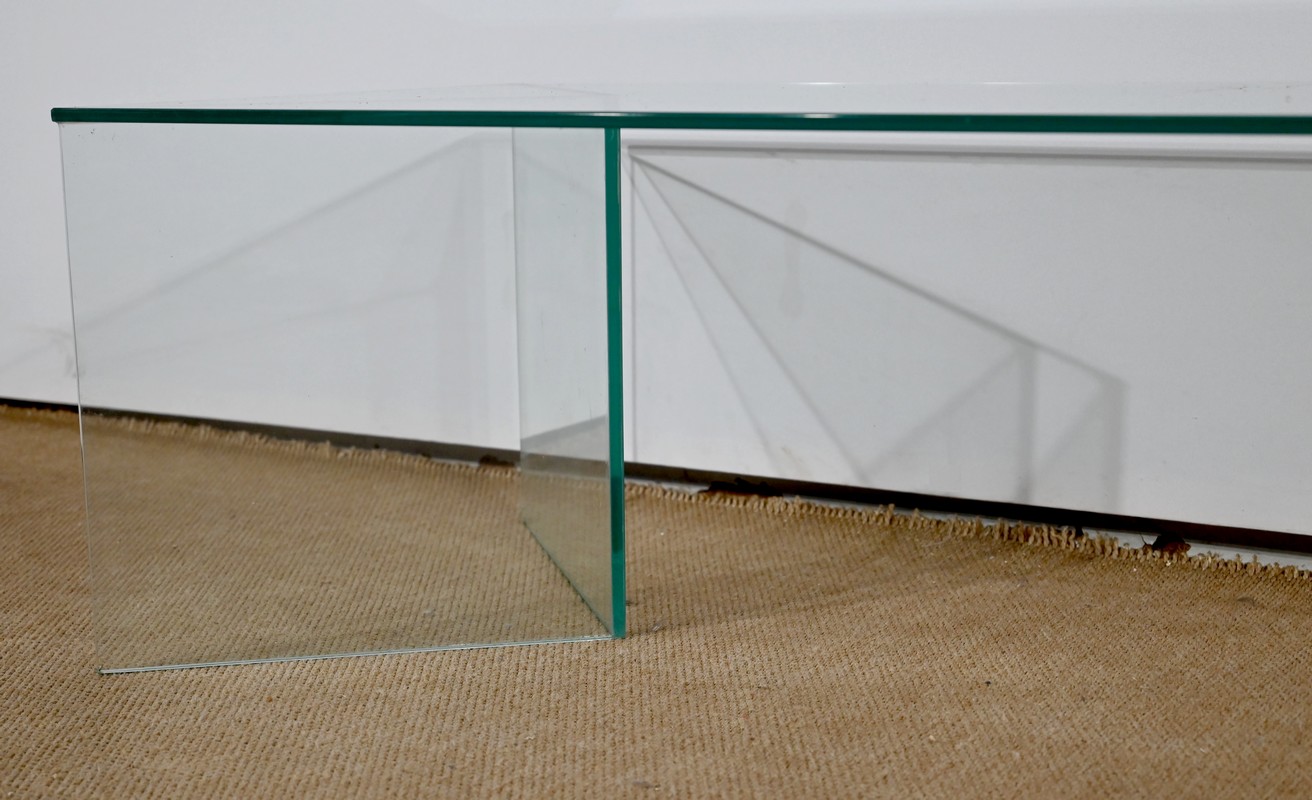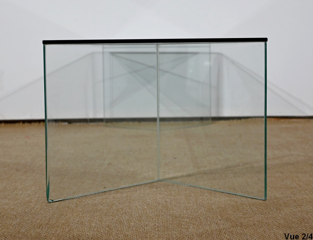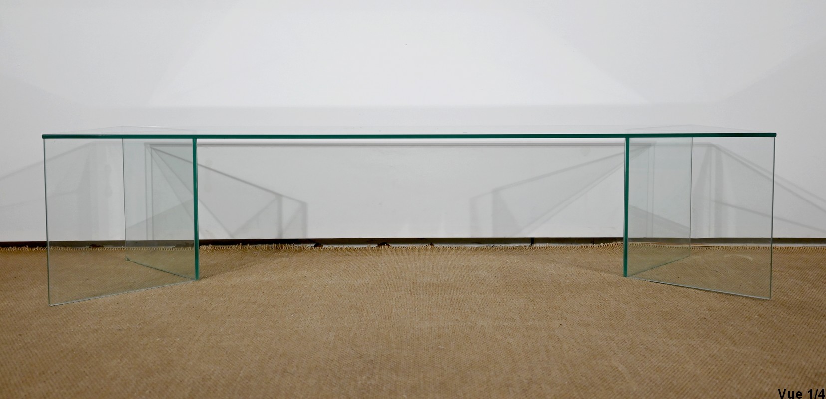 Cette table basse en verre, au design très épuré, s’harmonisera particulièrement bien dans un style actuel et moderne.