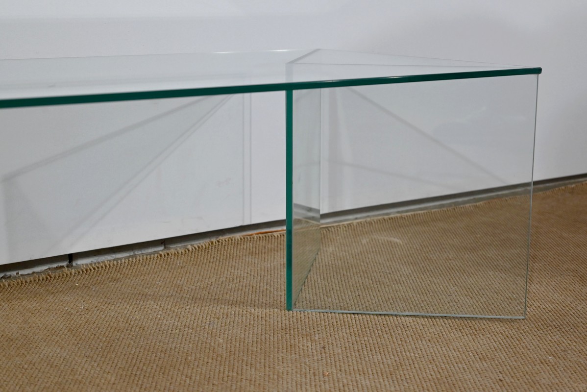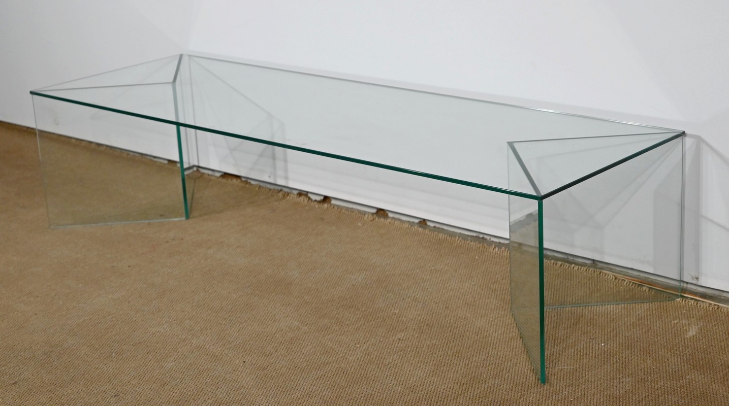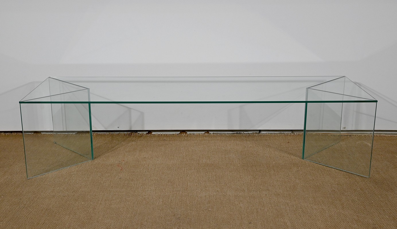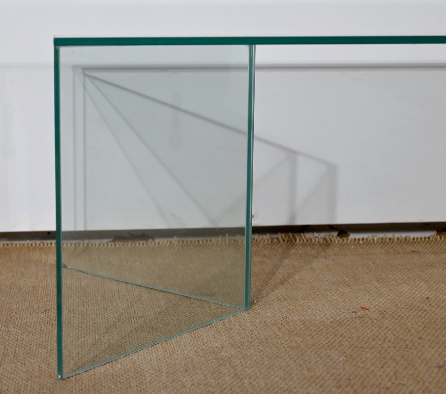 Cette table basse en verre, au design très épuré, s’harmonisera particulièrement bien dans un style actuel et moderne.