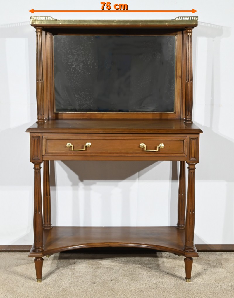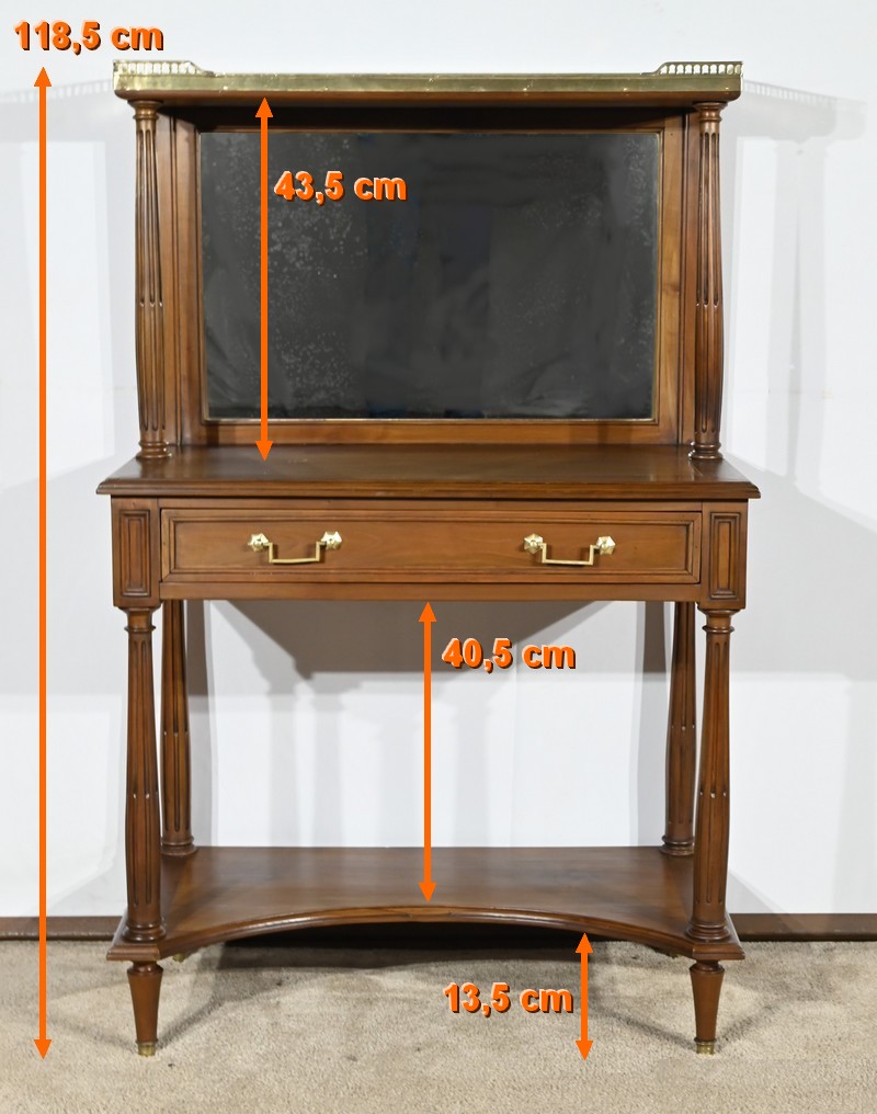 La partie supérieure est foncée d’un miroir au mercure avec cadre en bois accolé.