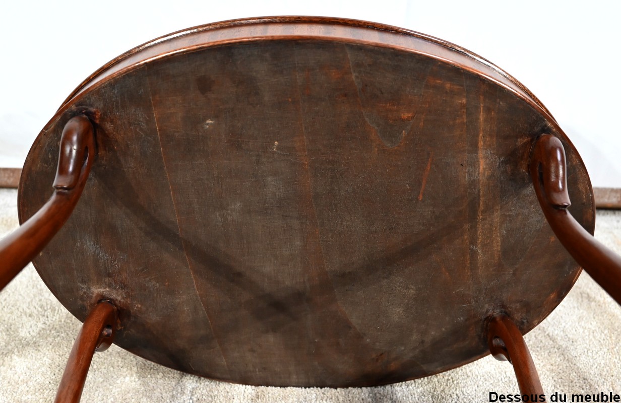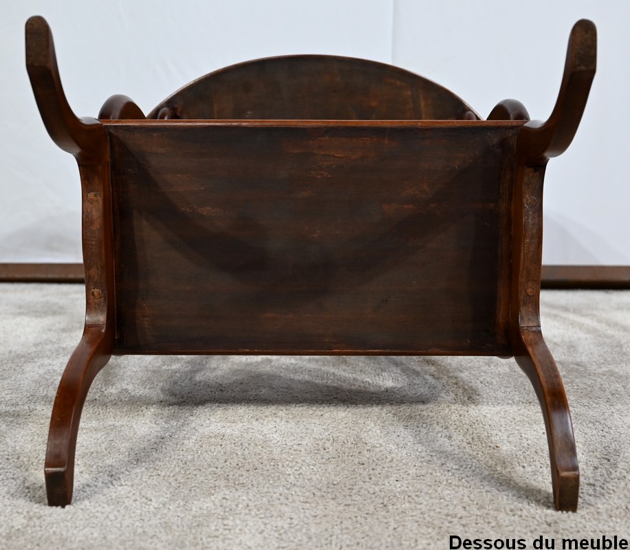 L’ensemble repose sur quatre pieds galbés, se dégageant vers l’extérieur, assurant une bonne stabilité à ce petit meuble chaleureux.