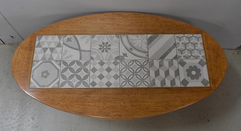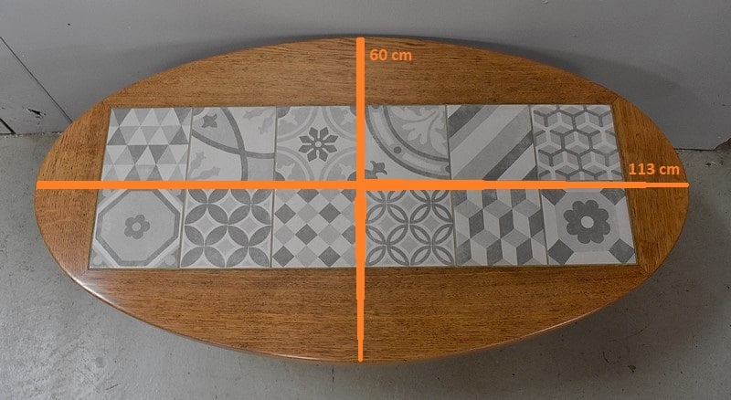 Cette Table se compose d’un plateau Ovale garni de douze carreaux Granités, en Céramique, aux motifs Gris tous différents les uns des autres. Avec ses 4.5 cm d’épaisseur, ce dessus inspire la Solidité.