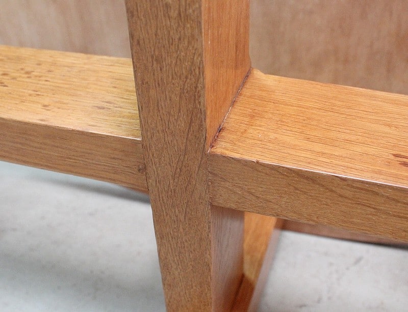 Il repose sur quatre pieds droits à section Carrée, terminés par un Tournage. Ils sont reliés par paire par des traverses formant une entretoise en croix, qui finit de rassurer sur la Stabilité de l’ensemble.