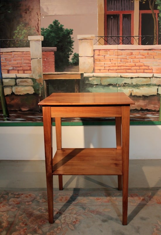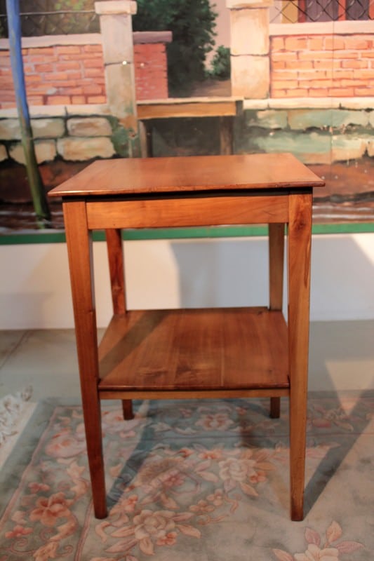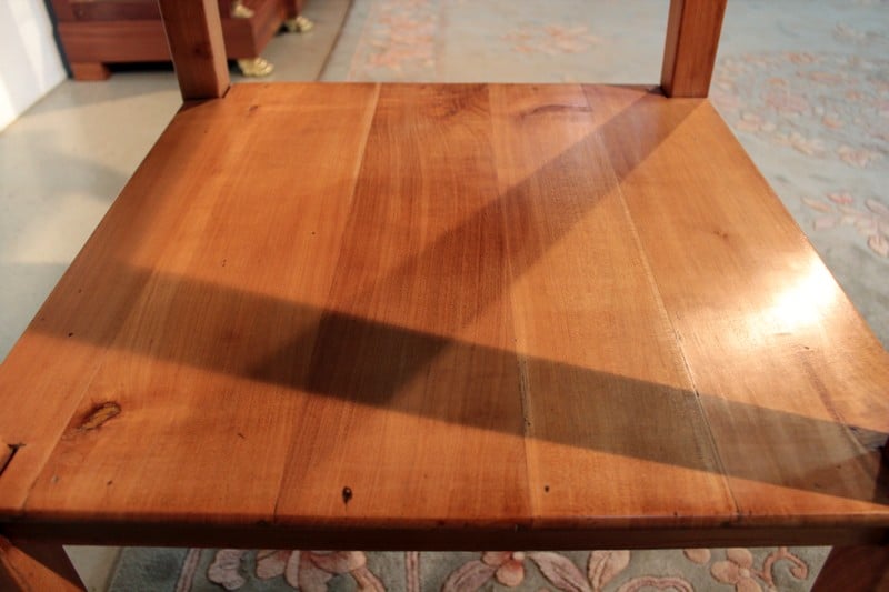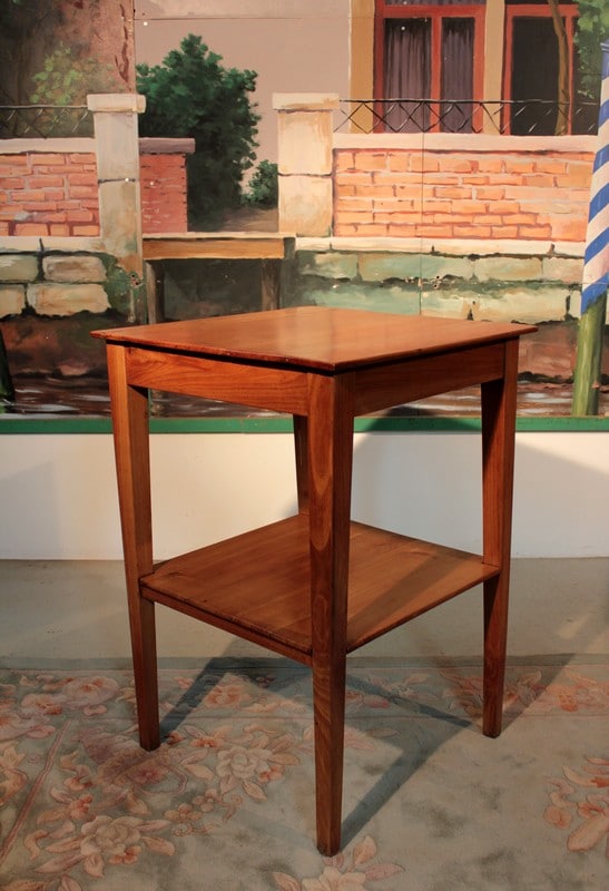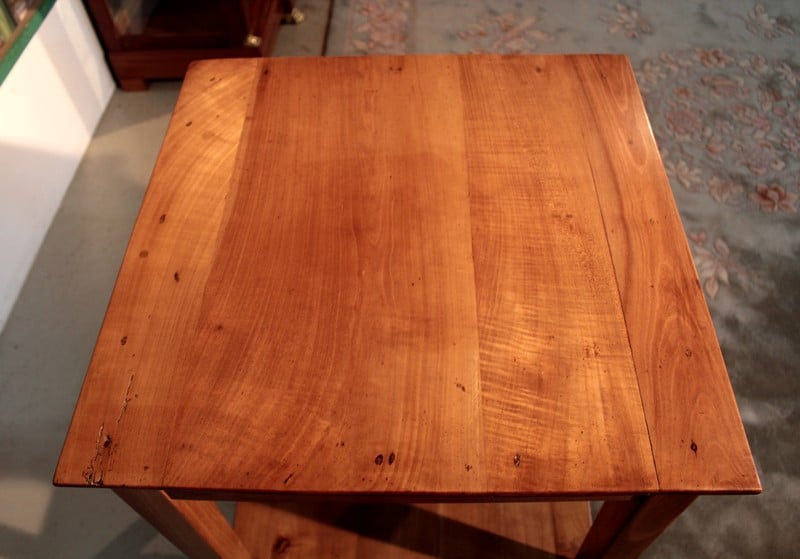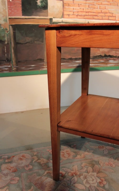 Table de service à double plateau en merisier, dans le goût Directoire. De forme carrée, elle repose sur 4 pieds gainés.