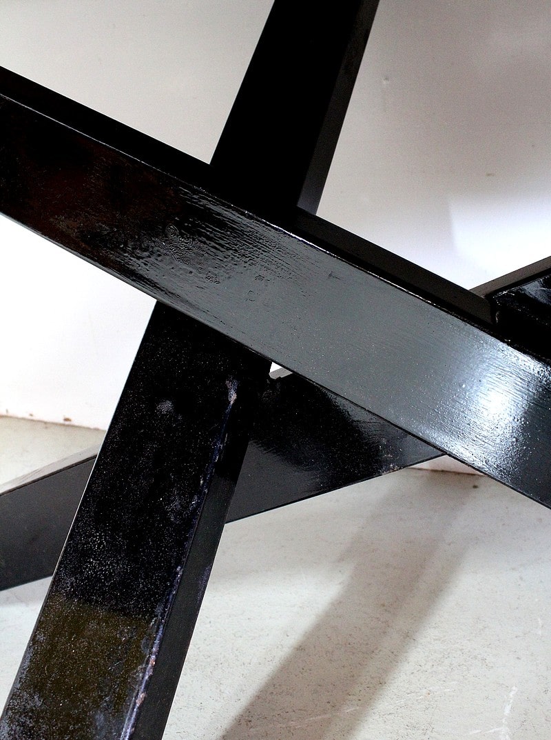 Ses quatre pieds inclinés, en métal Noir, s’entrecroisent pour un rendu asymétrique et moderne.