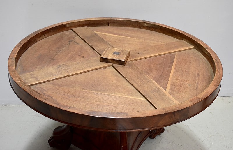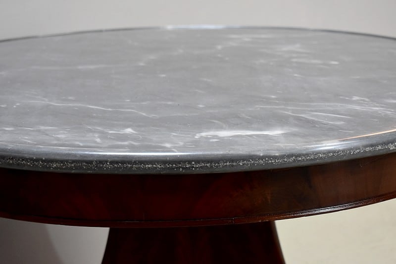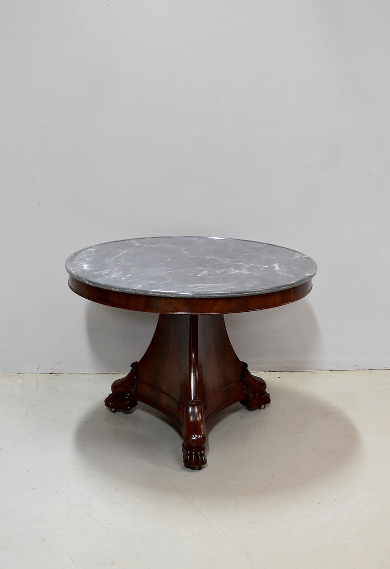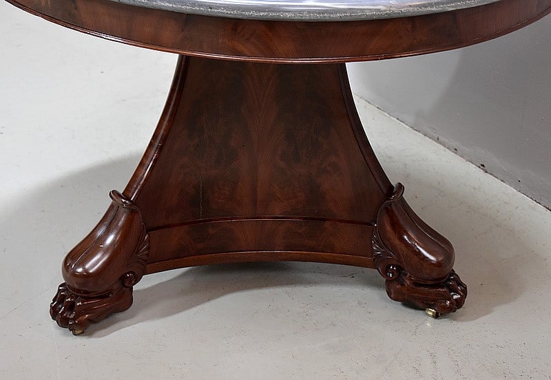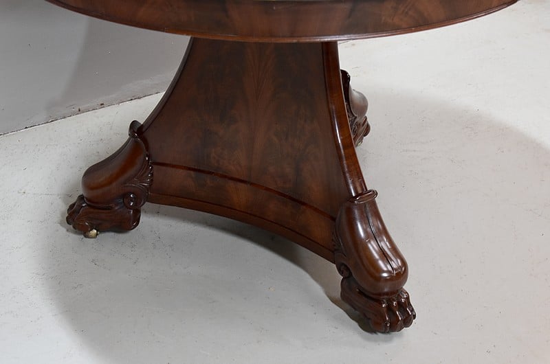 Guéridon Empire en Acajou massif et placage de Ronce d’Acajou de Cuba.