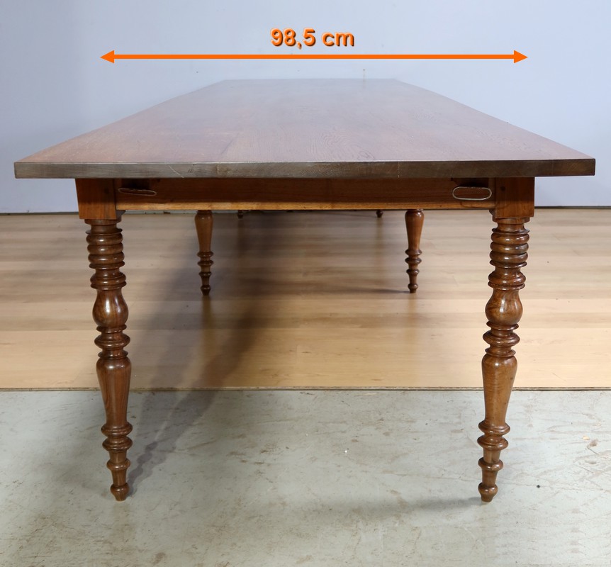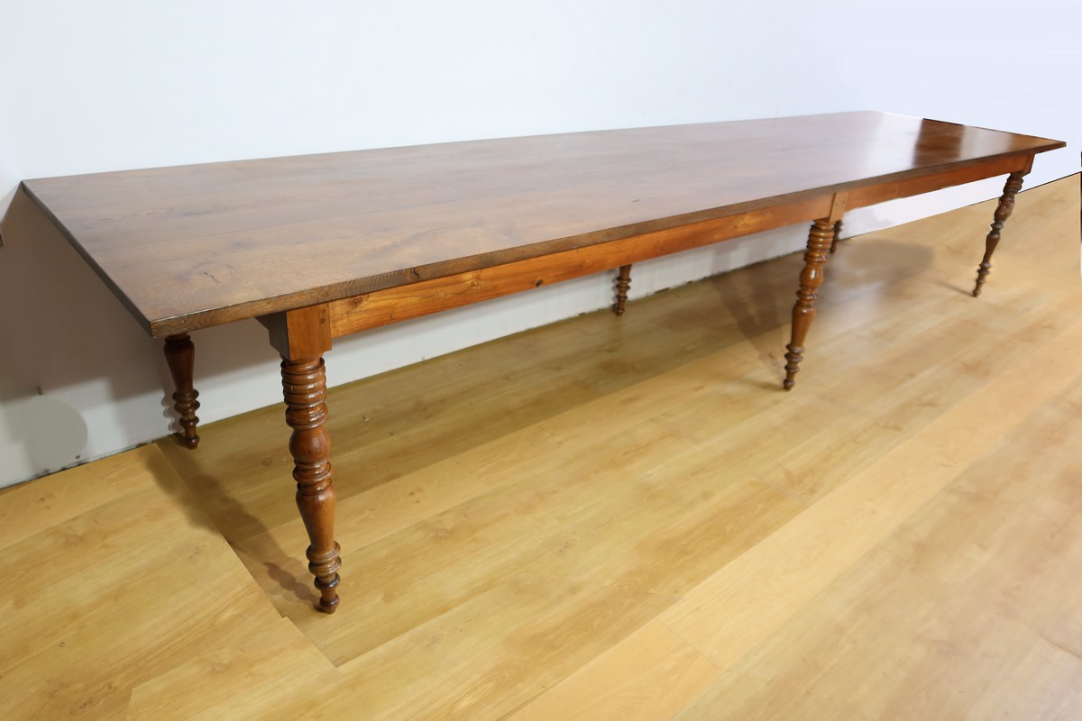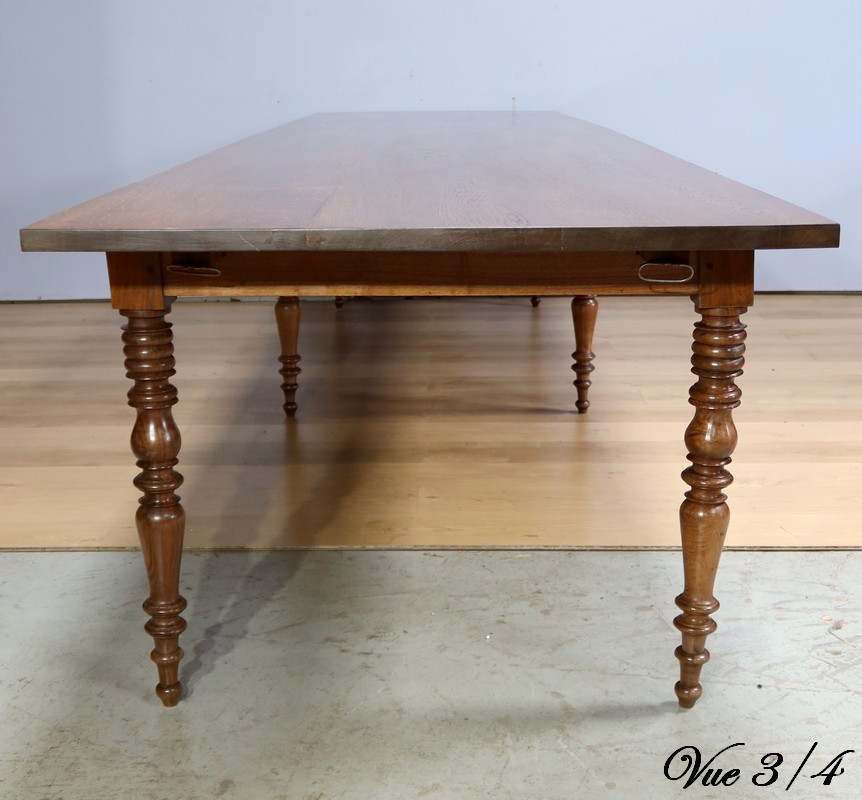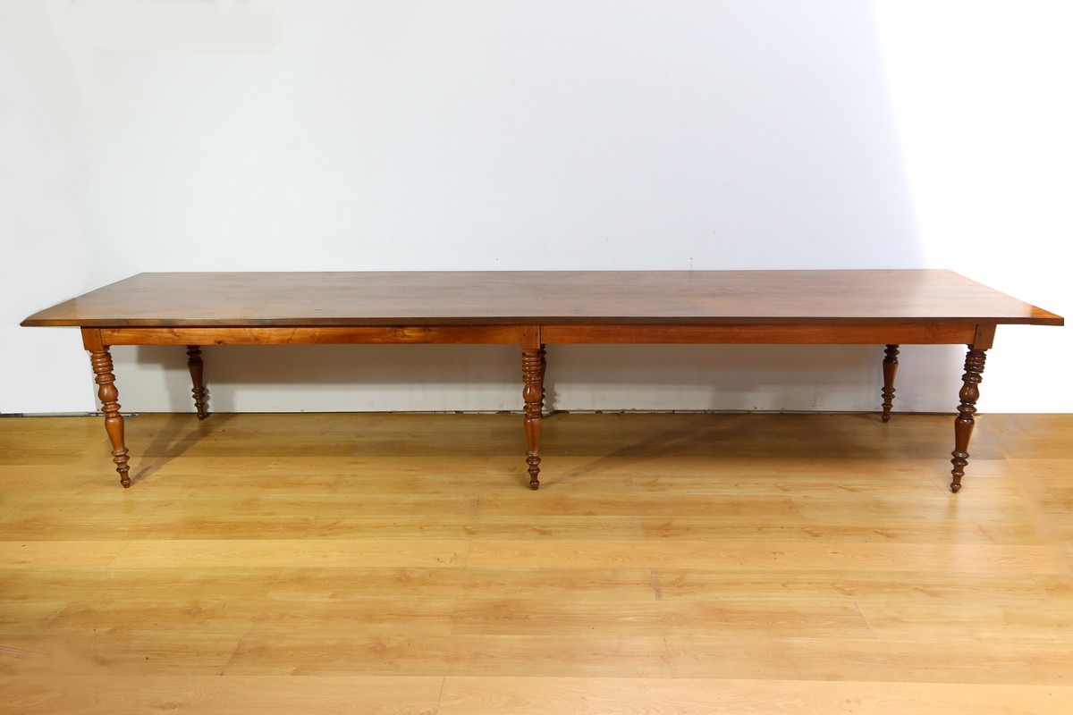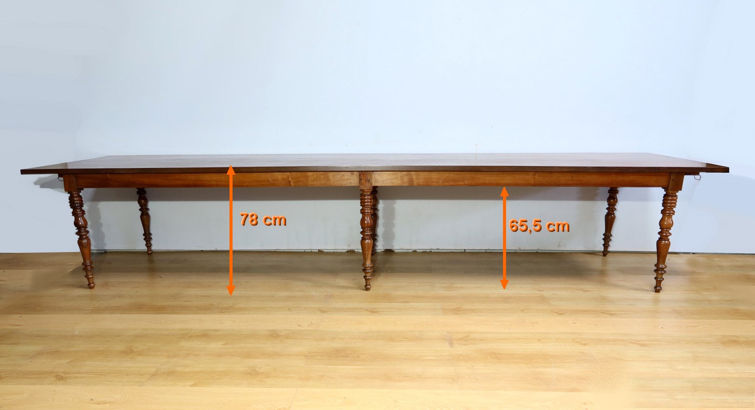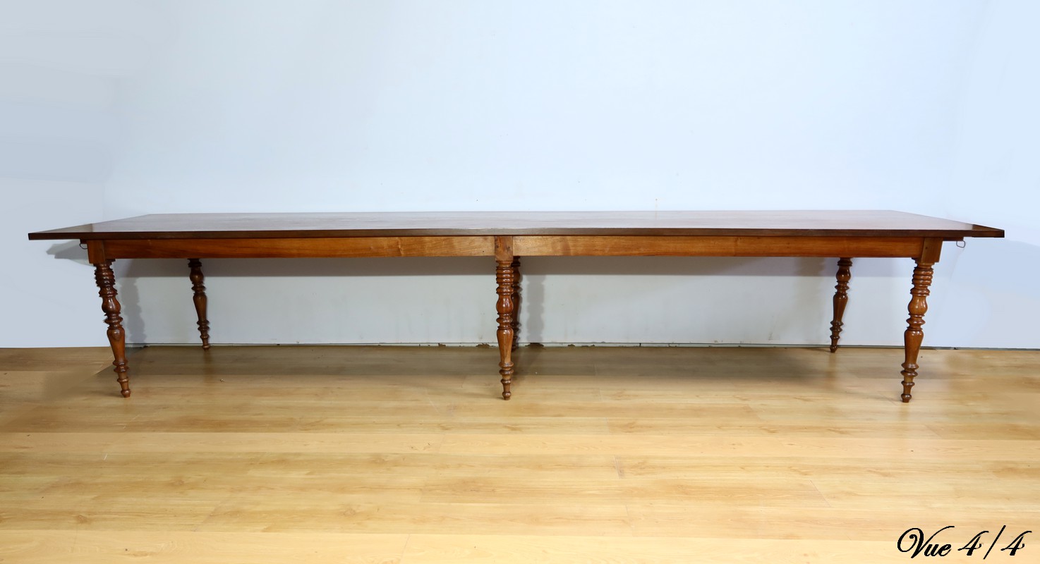 Cette importante table de Communauté, pouvant accueillir entre 16 et 20 couverts, présente un plateau postérieur en chêne massif modulable par la possibilité d’y ajouter deux allonges de 60 cm chacune.