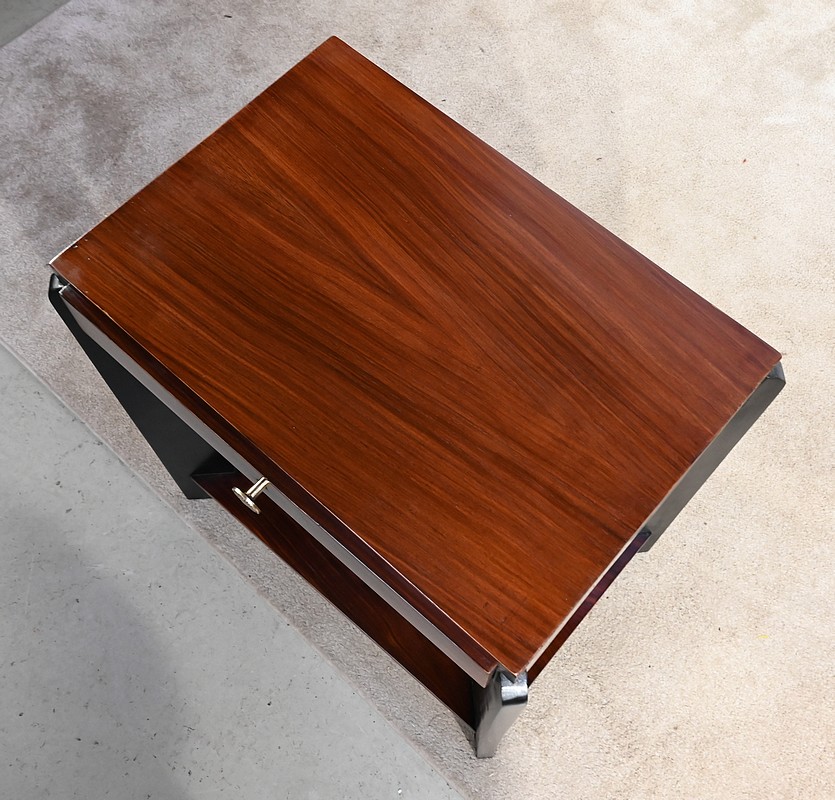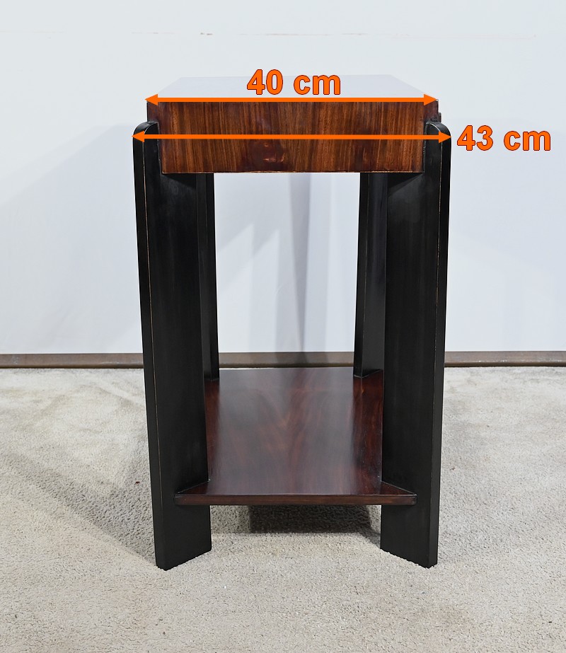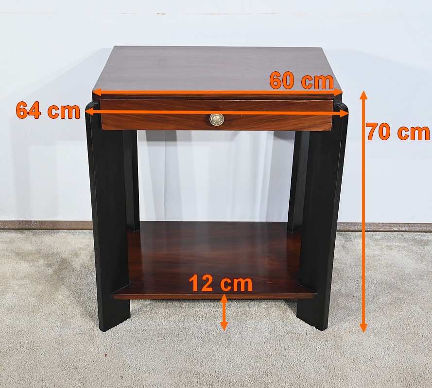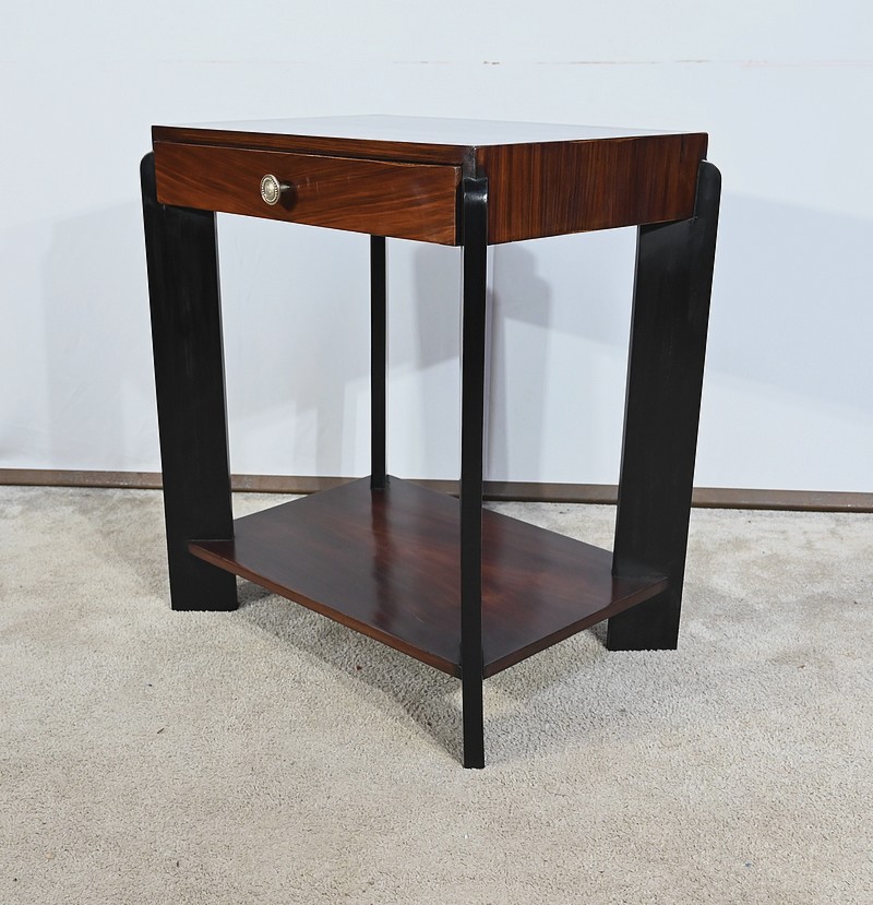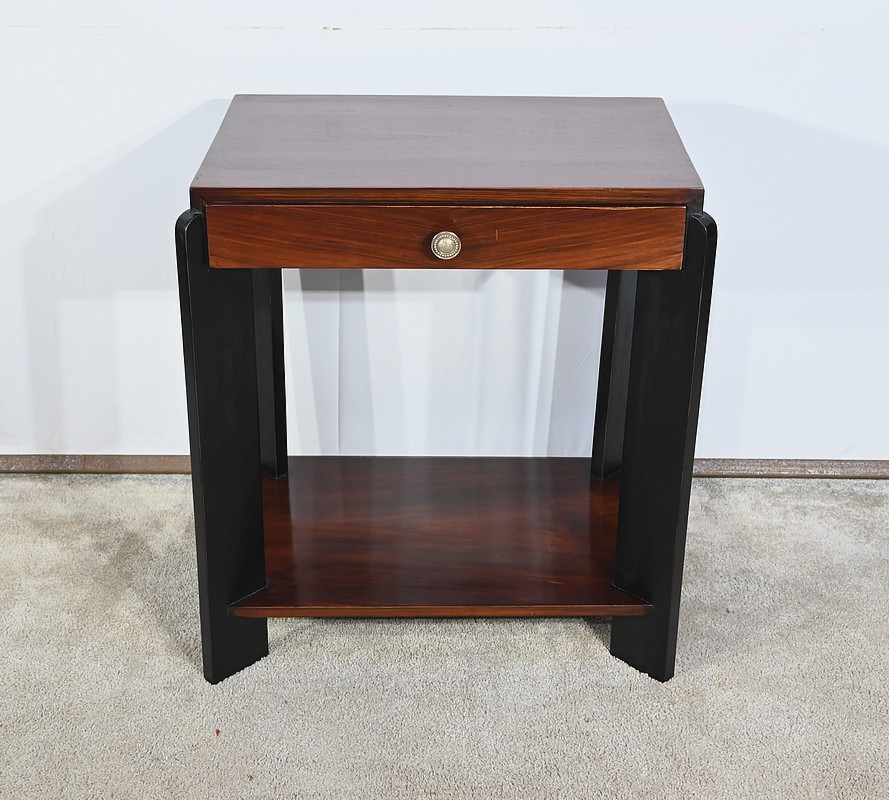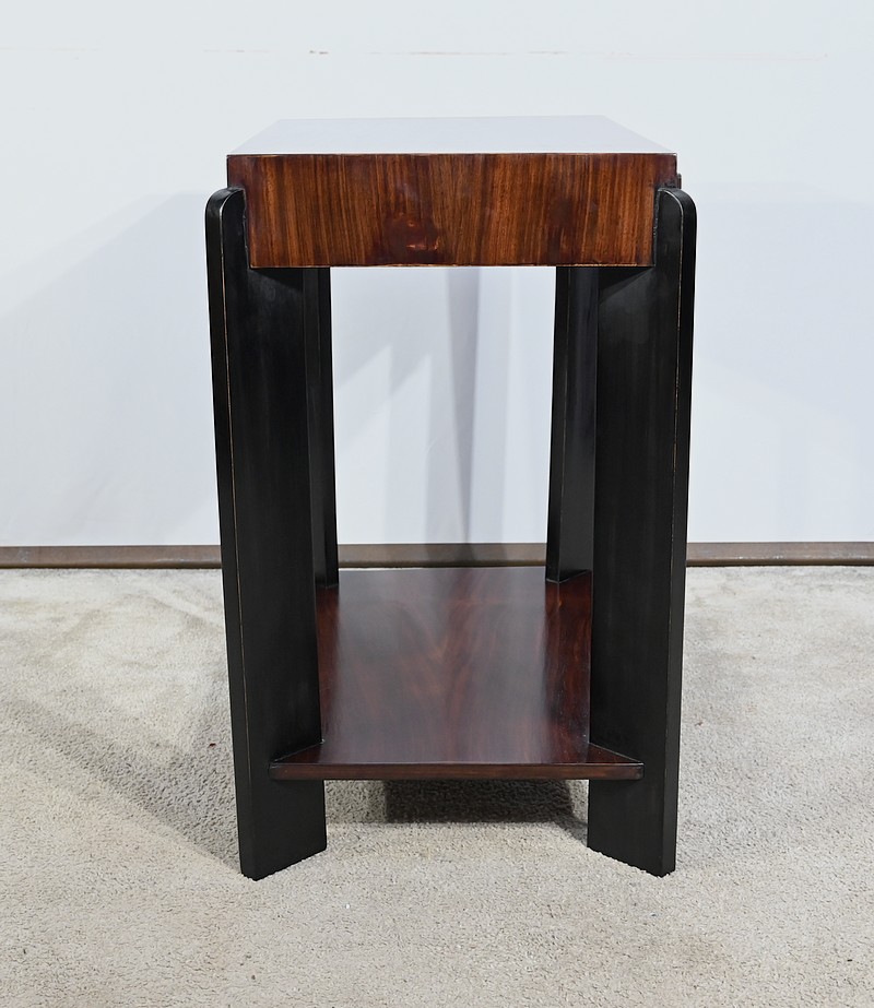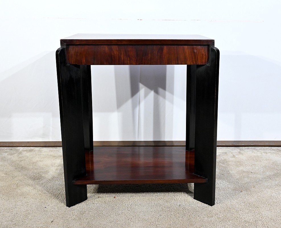 On appréciera les lignes Art Déco de cette petite table, associées à des pieds de section rectangulaire originaux. Elle forme un ensemble harmonieux et facilement adaptable aux différentes pièces de votre intérieur.