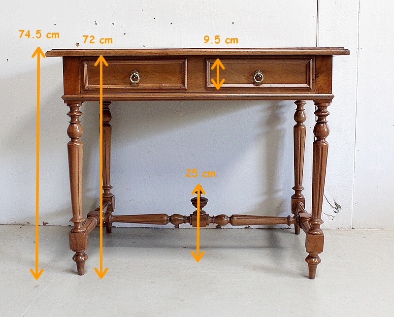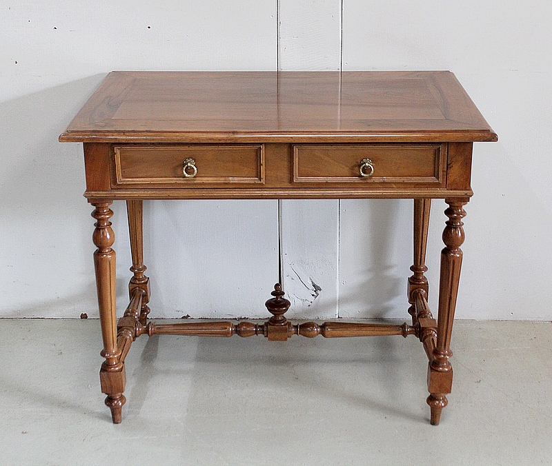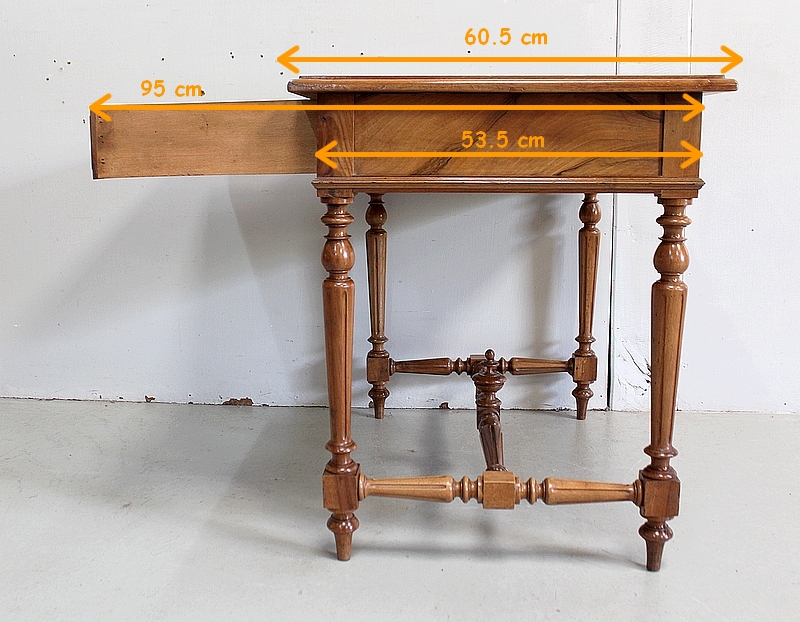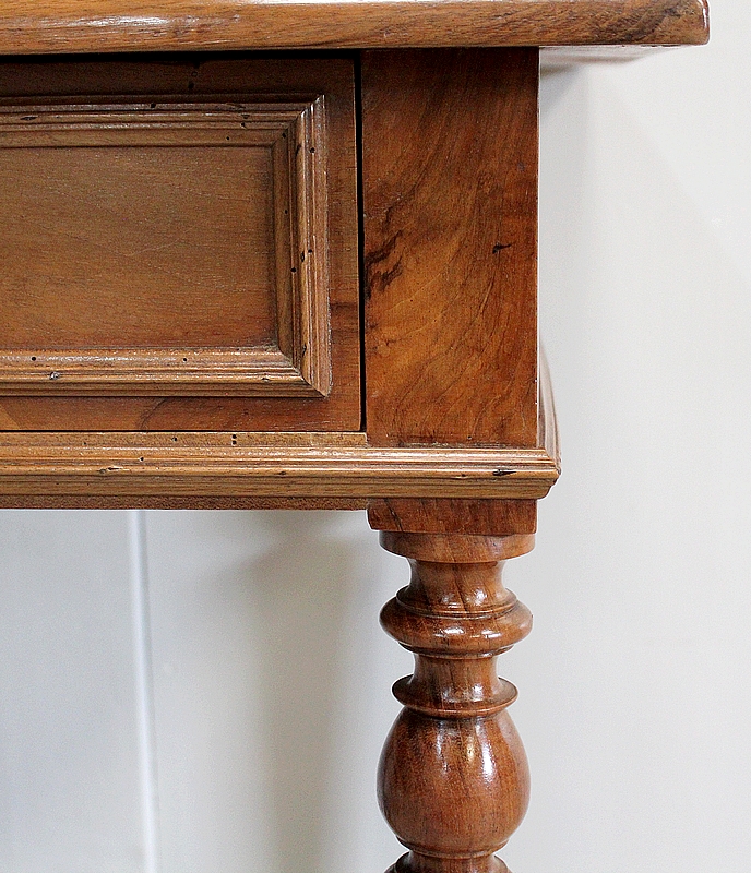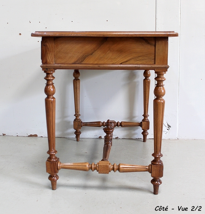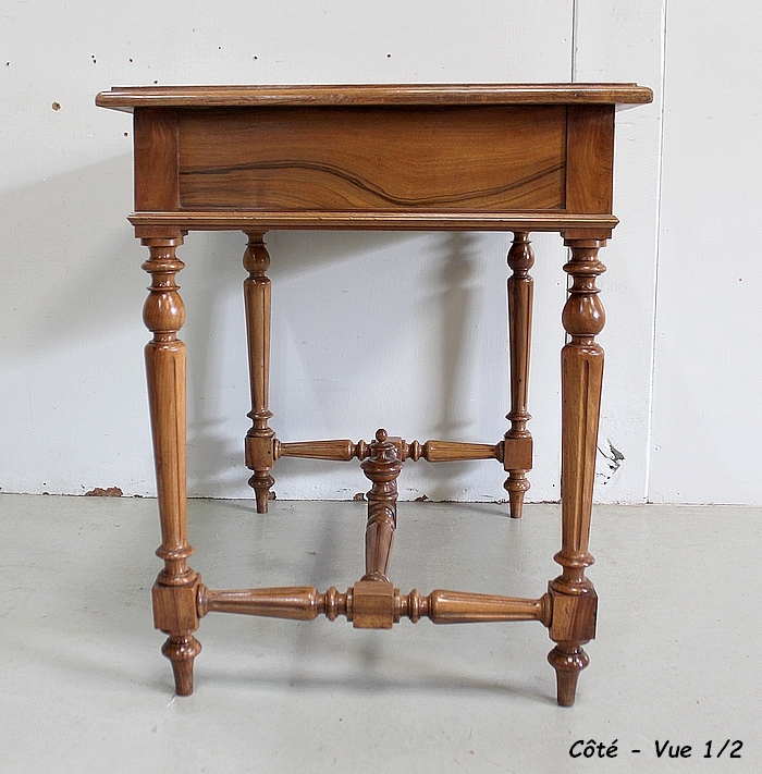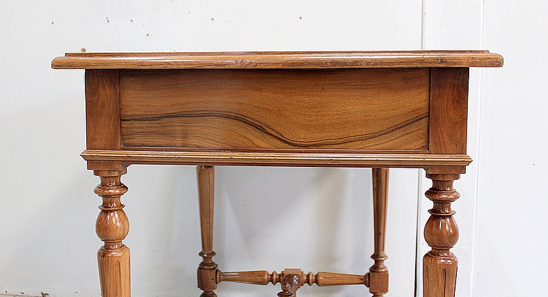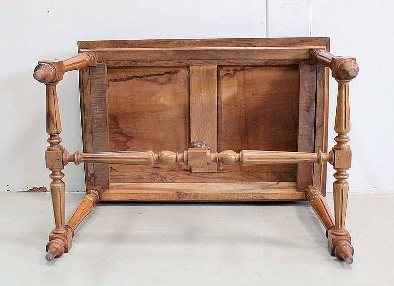 Charmante Petite Table en Noyer massif toutes Faces, conçue en 1920, pouvant également faire office de Bureau.