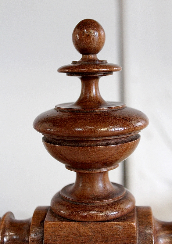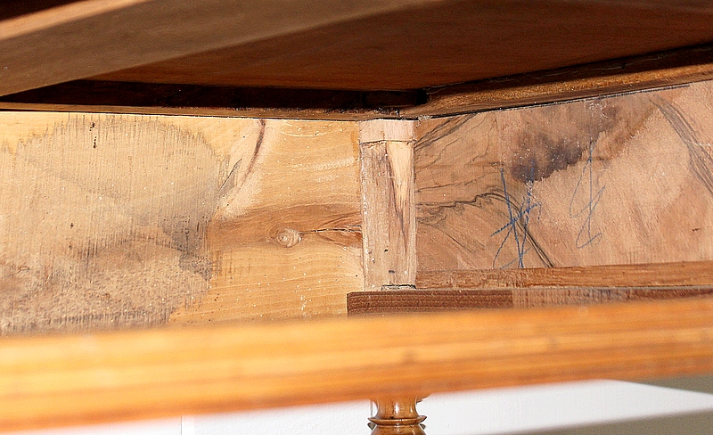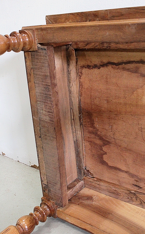 Son dessus de forme Rectangulaire se compose d’un Plateau en Bois massif, avec entourage assemblé à coupe d’Onglets et Mouluré en Bec de Corbin sur son Pourtour.