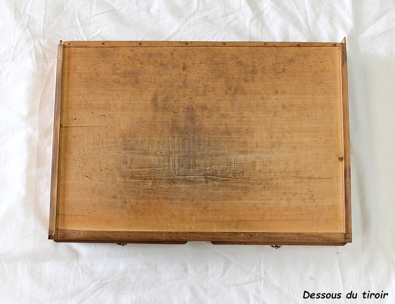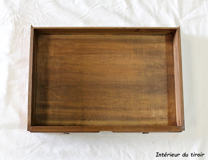 Ce Meuble Vintage ouvre en Ceinture par un unique tiroir, malgré une façade qui en simule deux. En effet, cette dernière présente deux Anneaux en Bronze, ainsi que des baguettes Moulurées formant deux encadrements.
