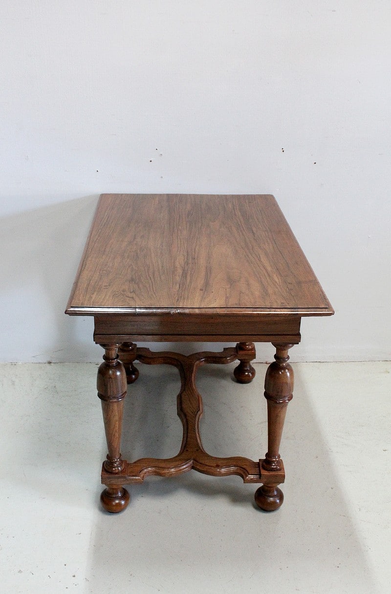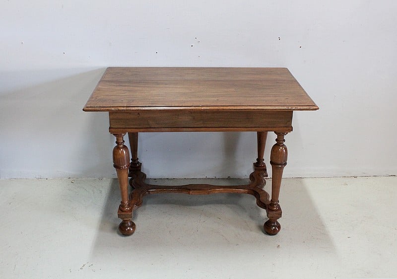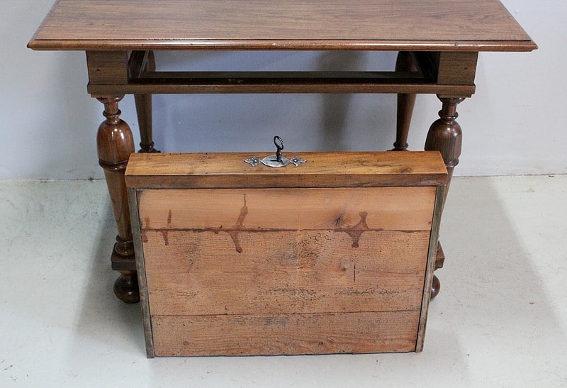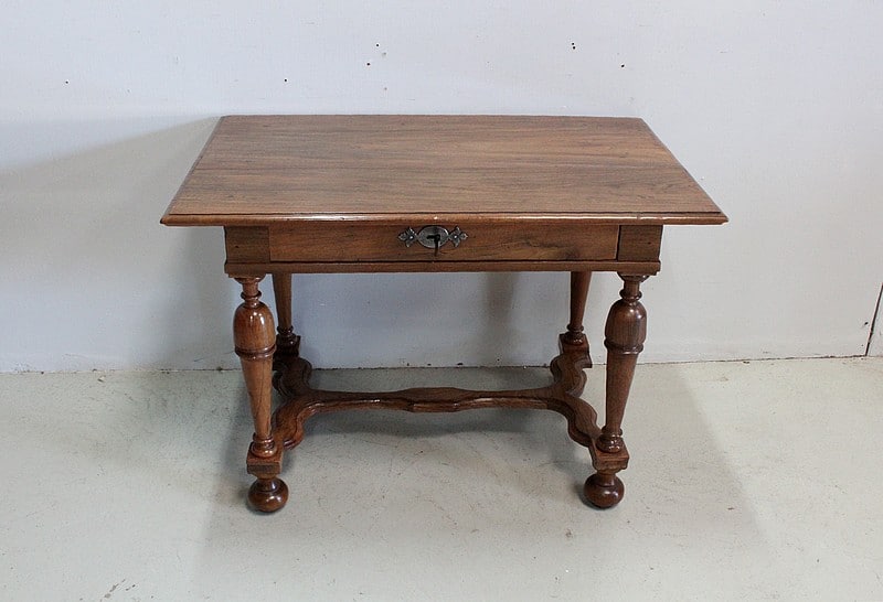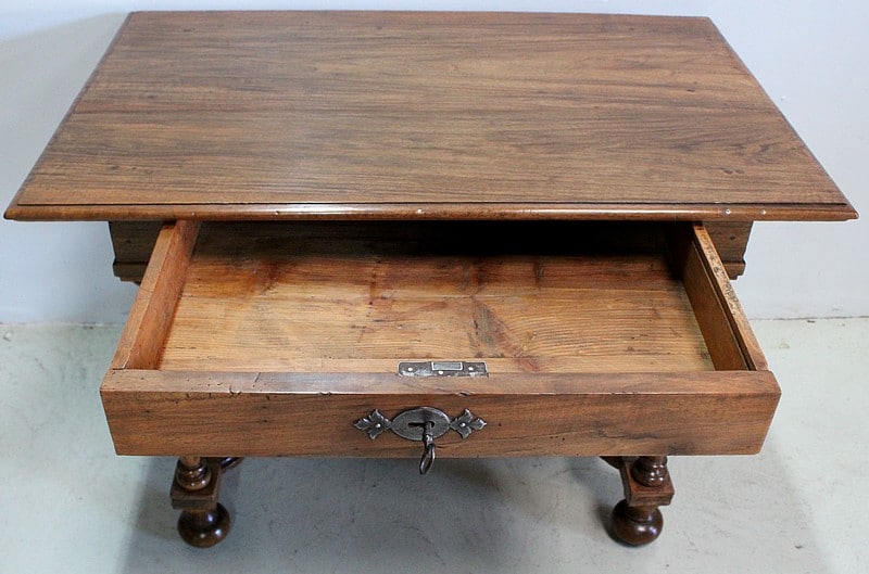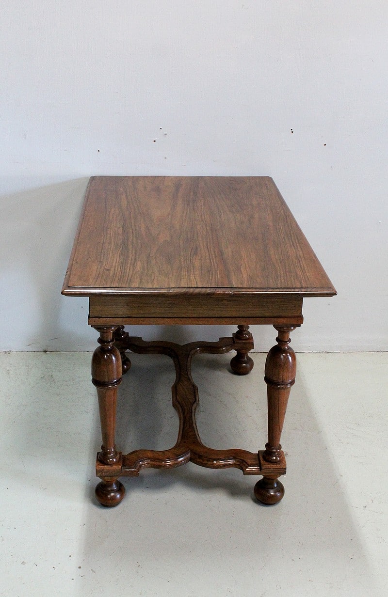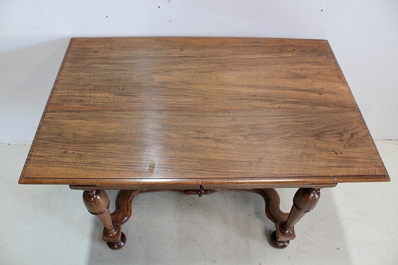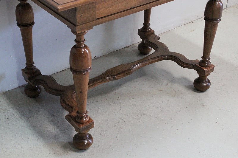 Petite table bureau de style Louis XIV en Noyer blond massif.