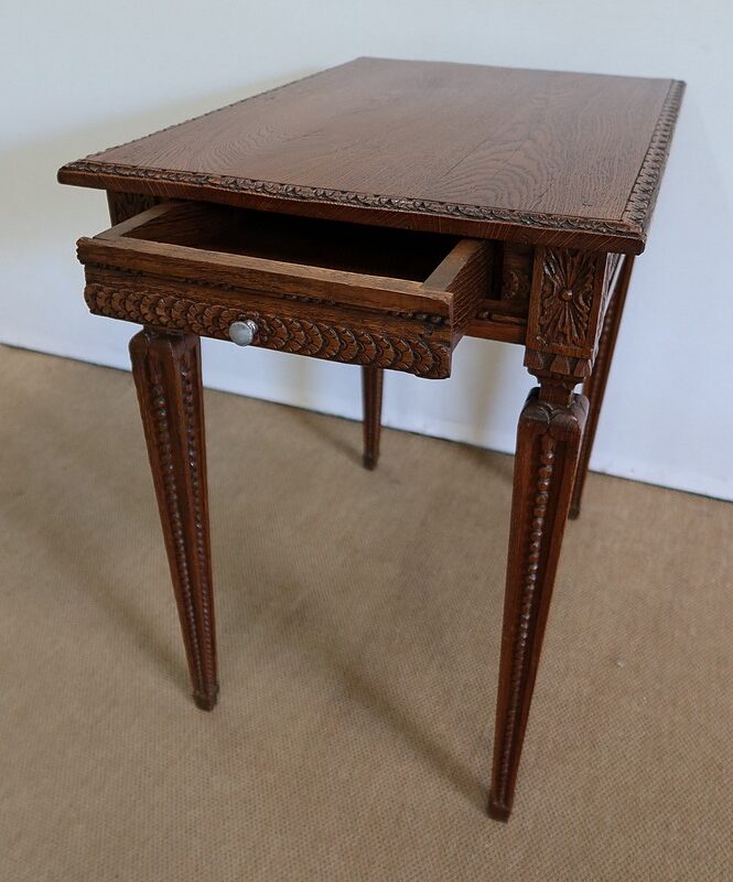 Petite Table d’appoint en Chêne massif, goût Louis XVI – 1900