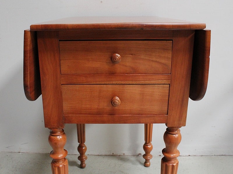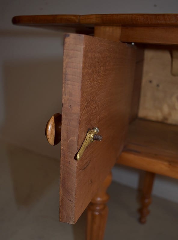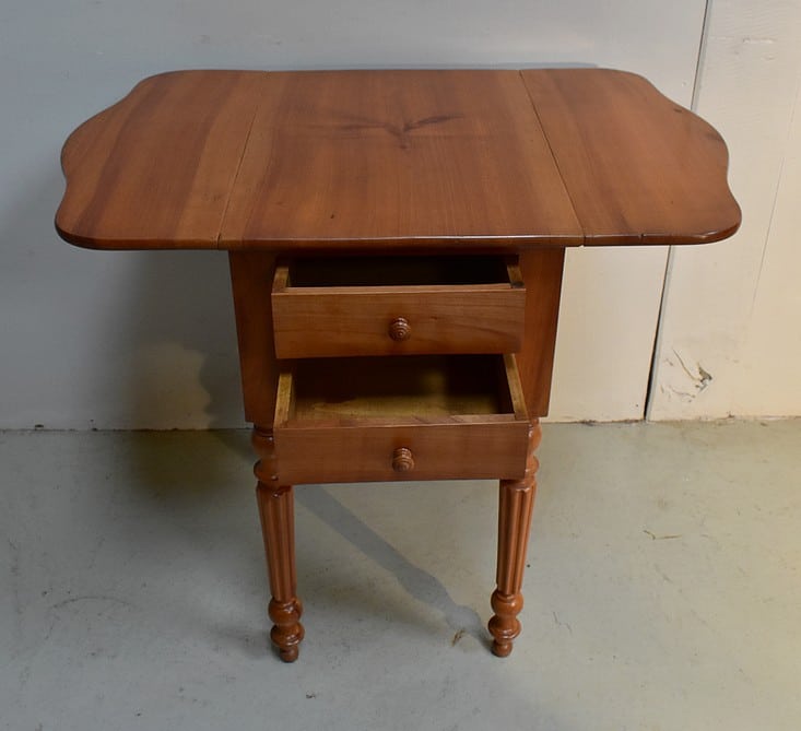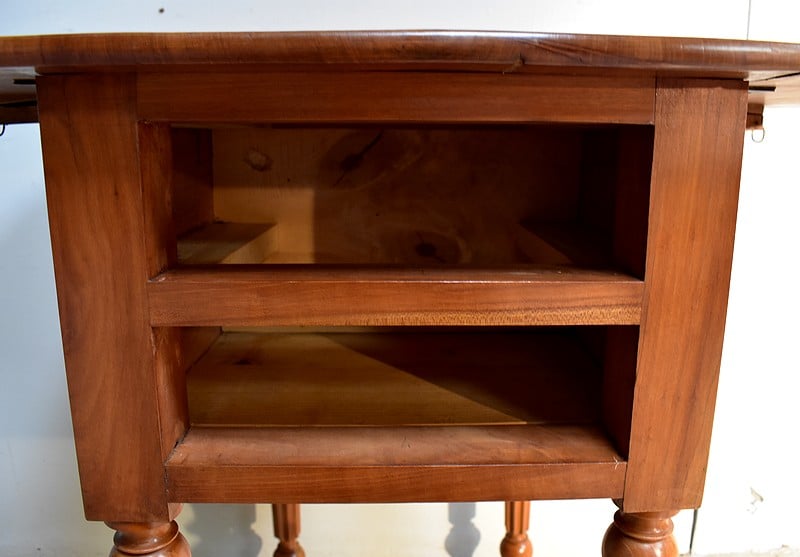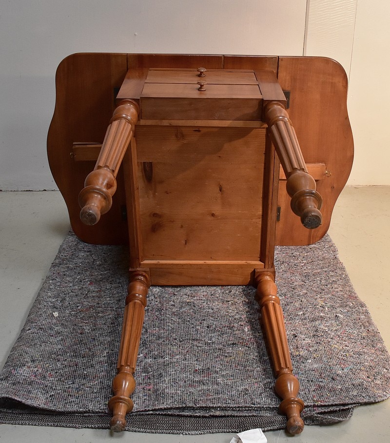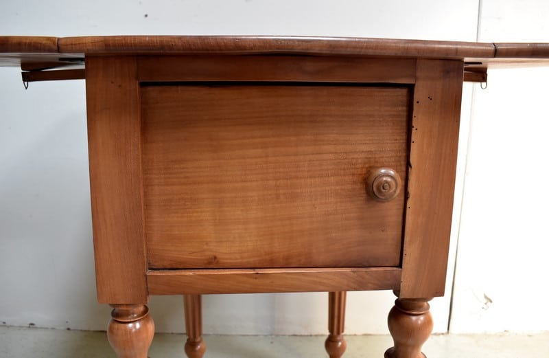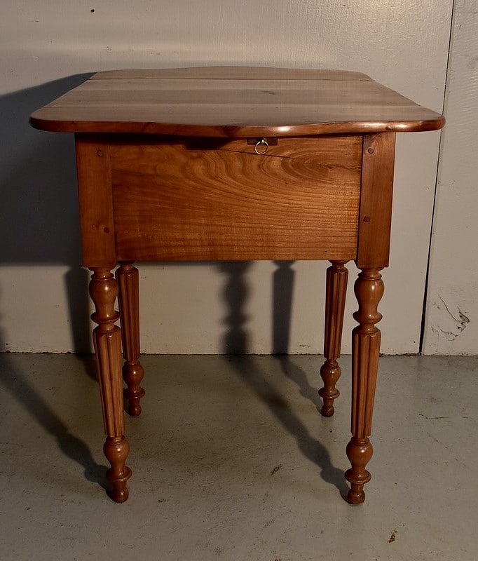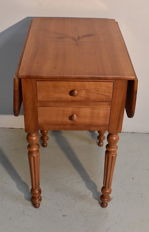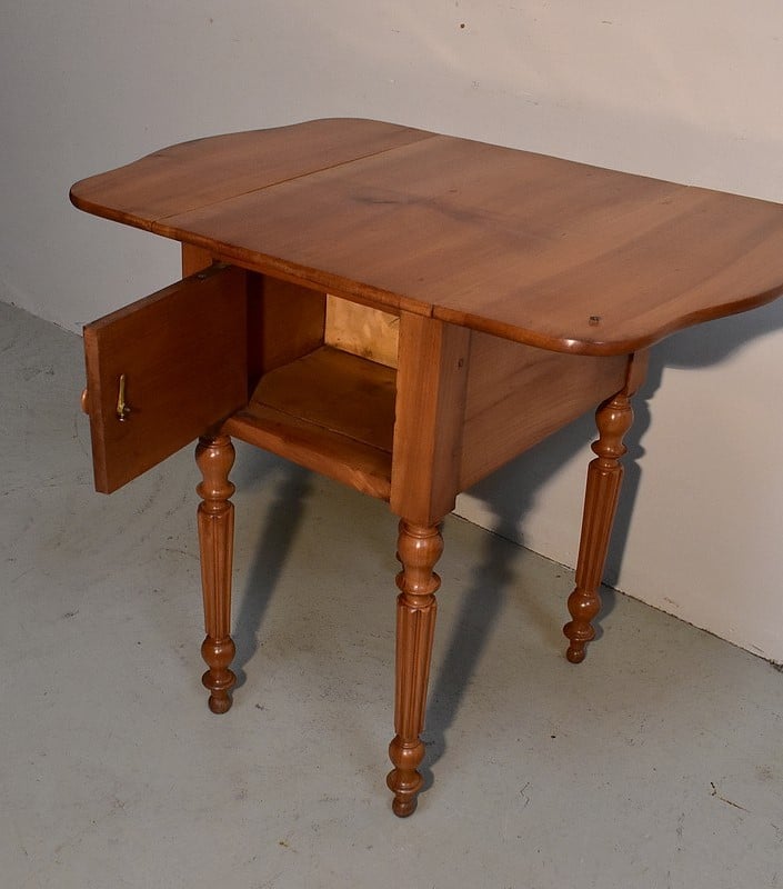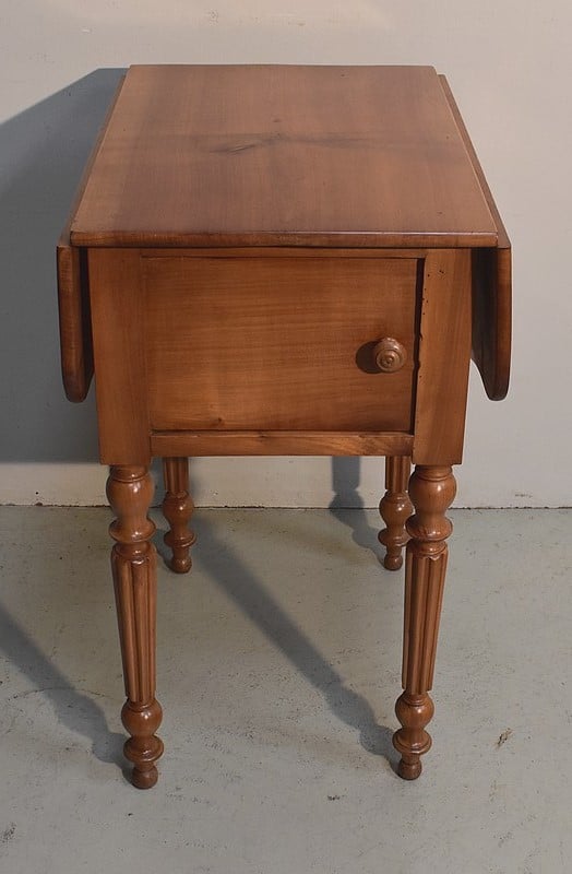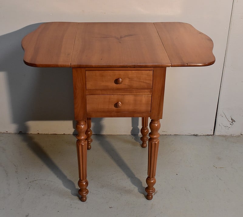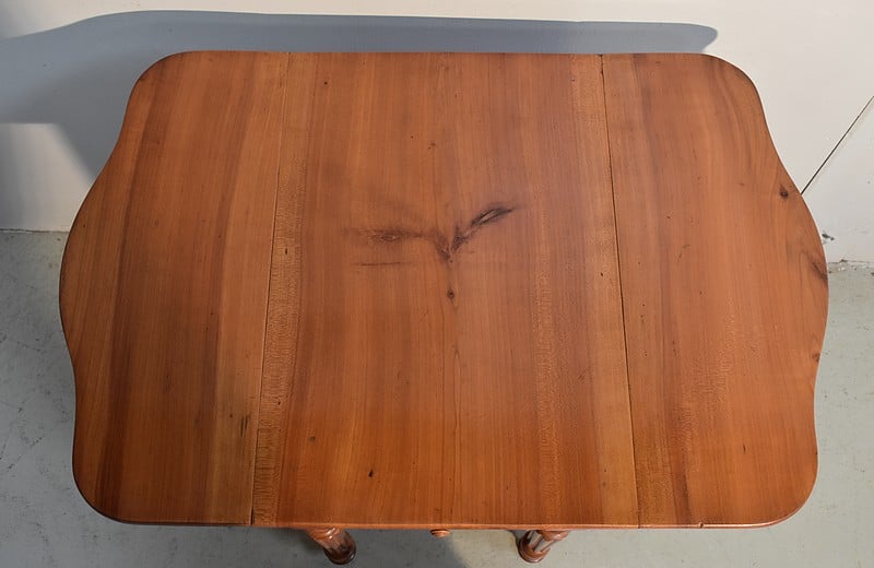 Petite Table de Salon en Merisier massif, constituée d’un plateau et de 2 volets latéraux du même bois.