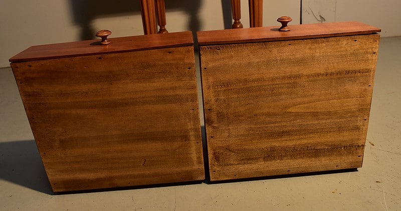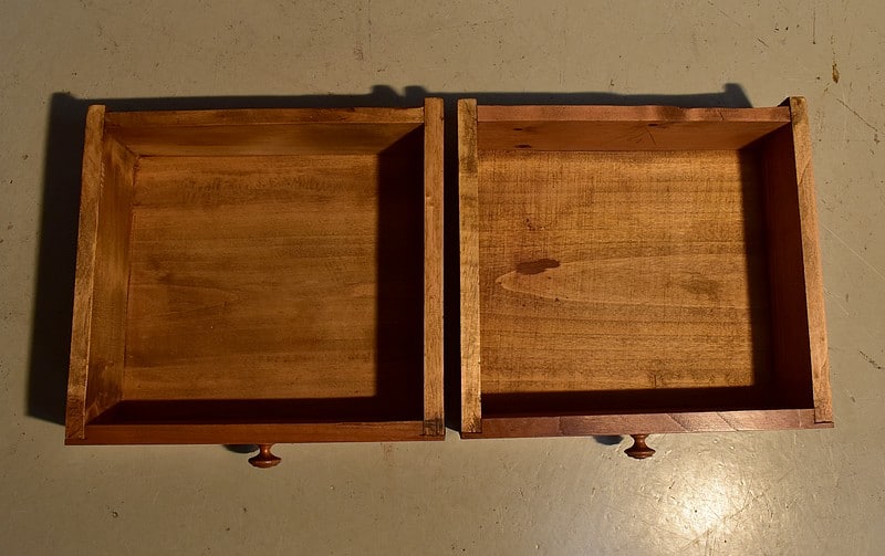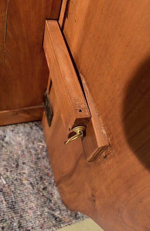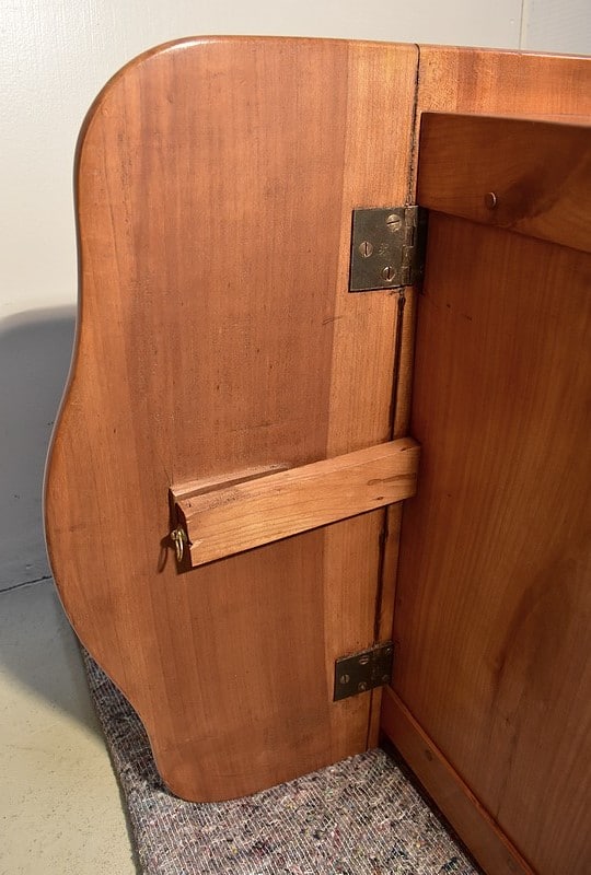 Elle ouvre par une petite porte avec bouton de tirage et fermoir tournants sur une 1ère façade. 2 tiroirs offrant une profondeur de 6 cm composent la 2ème.