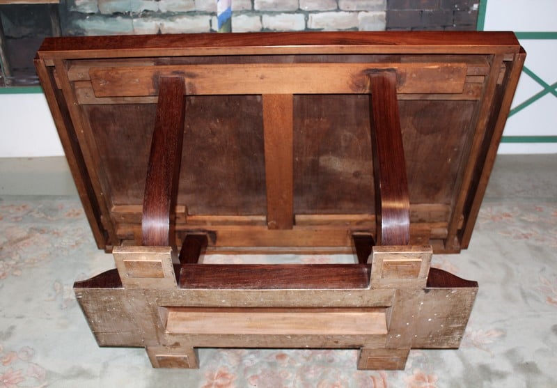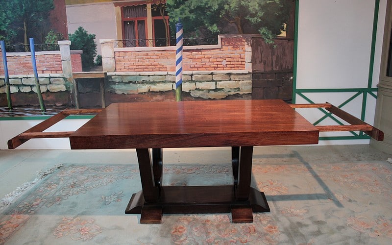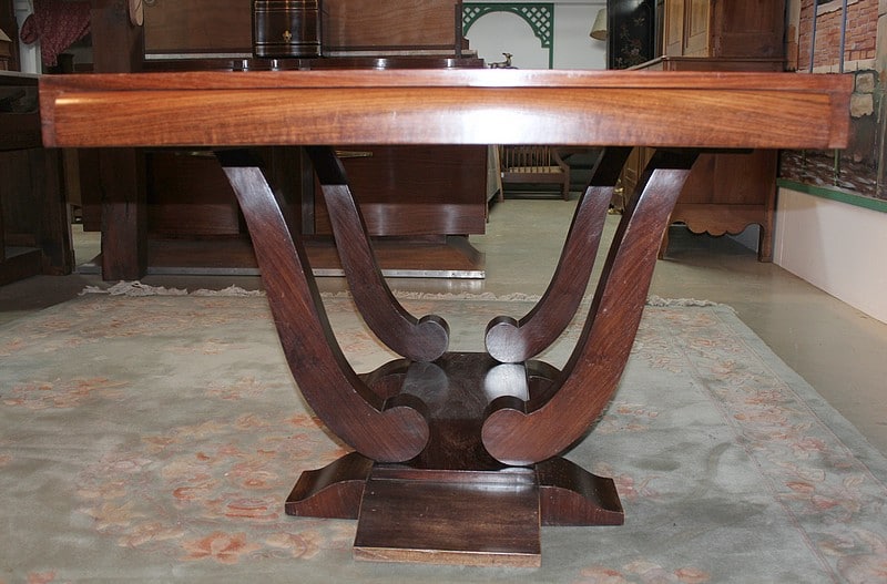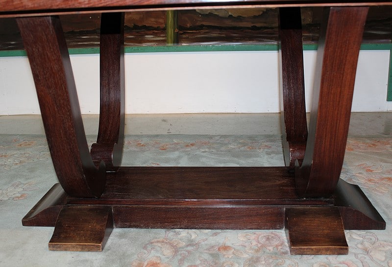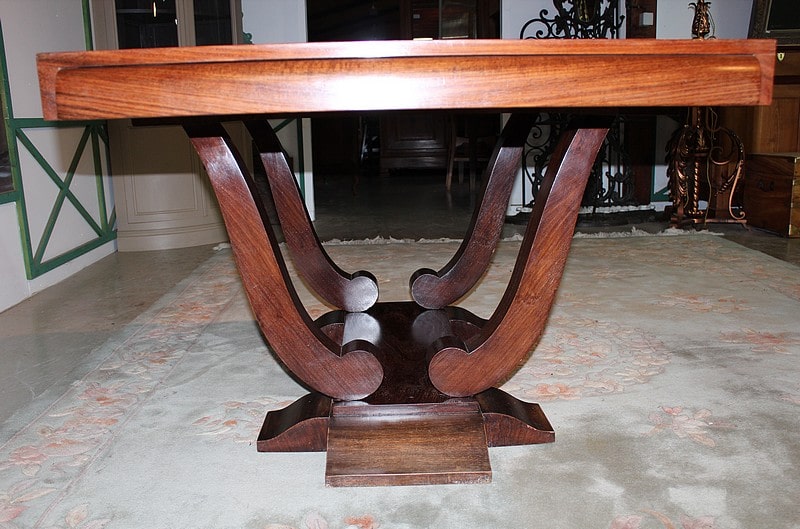 Table rectangulaire Art Déco en placage de Palissandre clair pour le plateau et sombre pour le piètement.