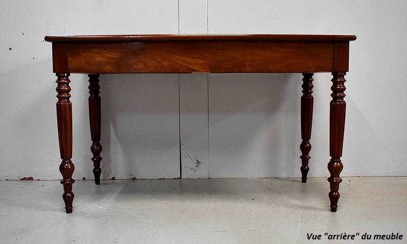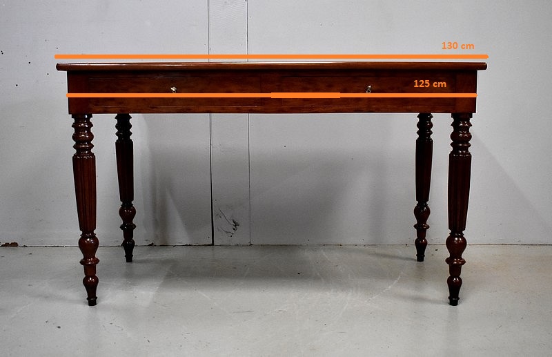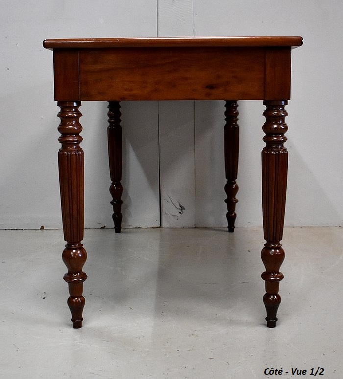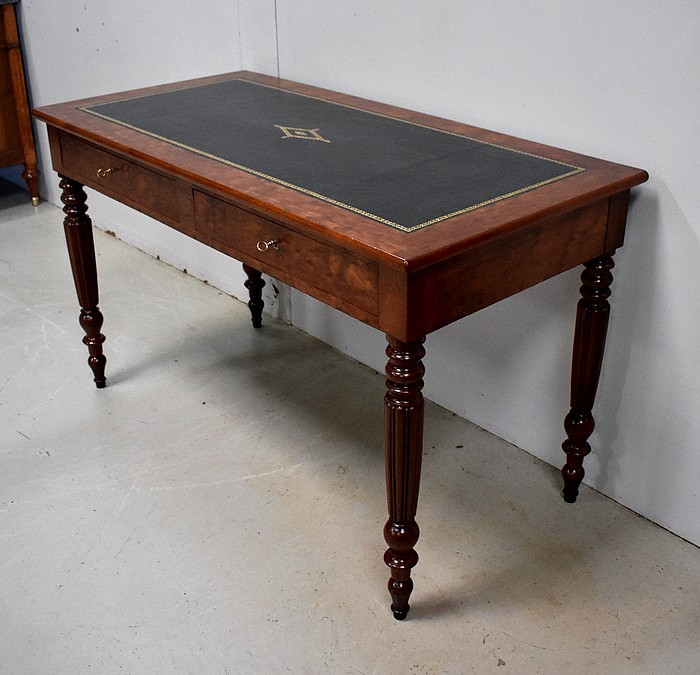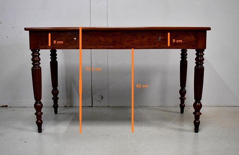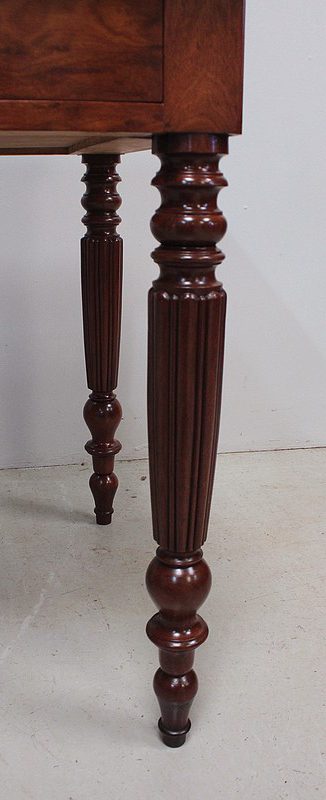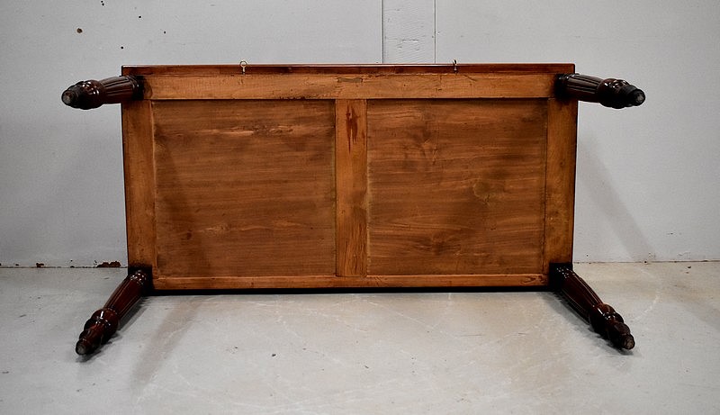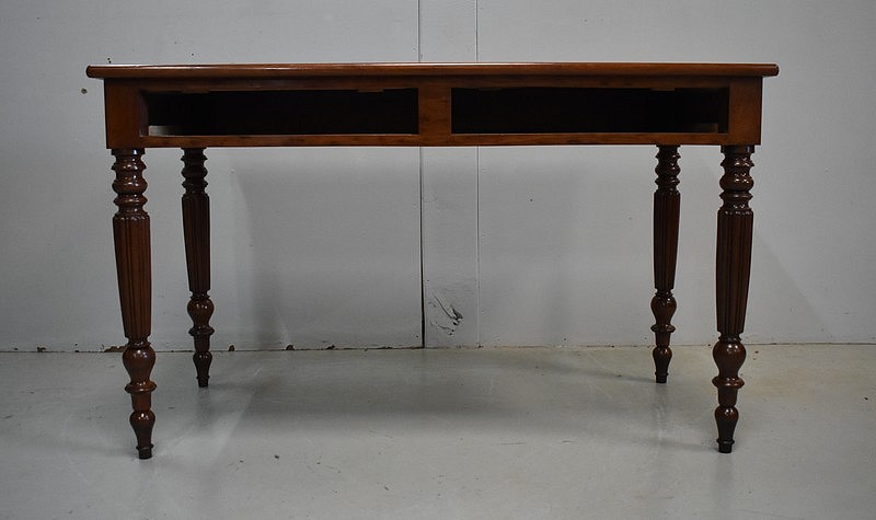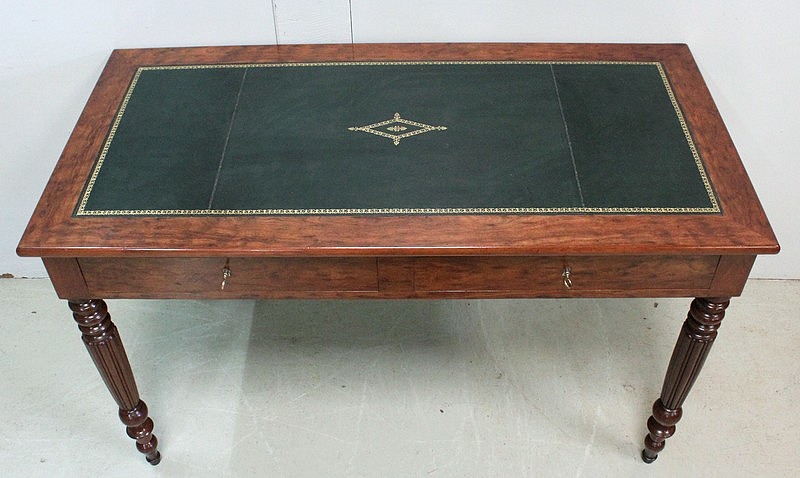 Élégante Table Bureau Toutes Faces, montée sur quatre pieds tournés en Acajou Massif de Cuba, godronnés sur leurs parties centrales.
