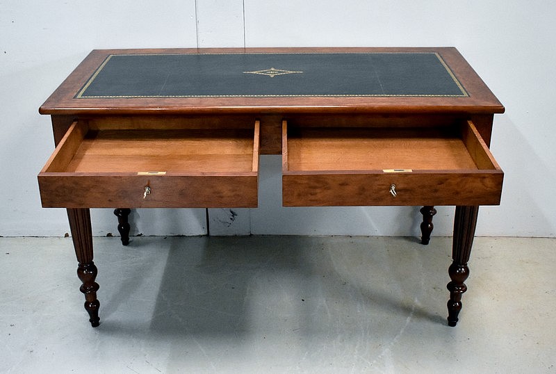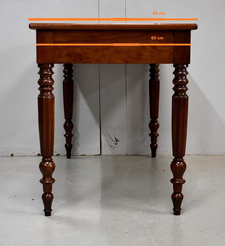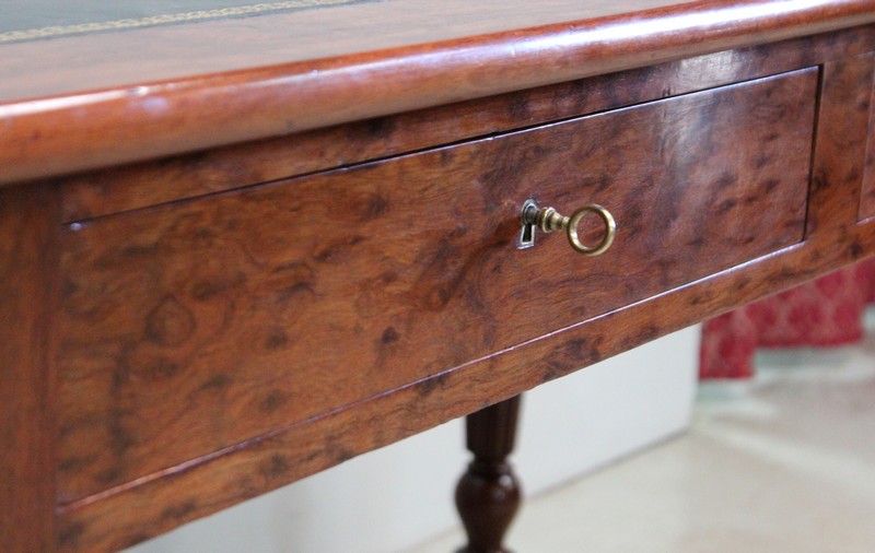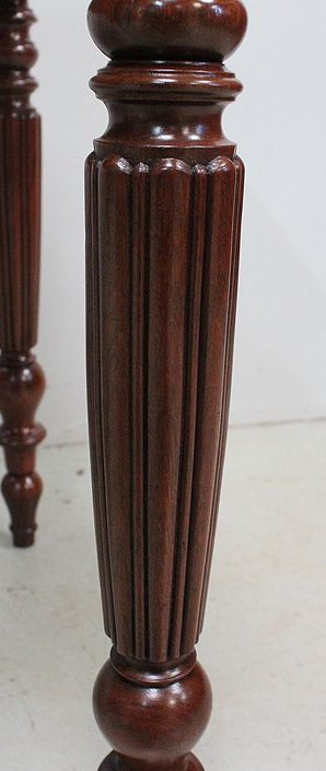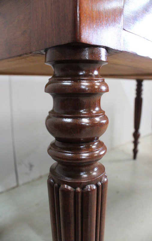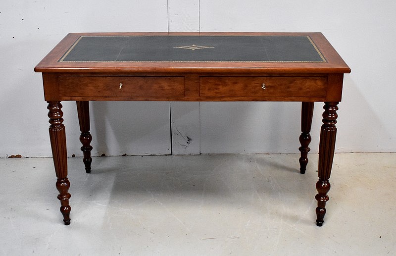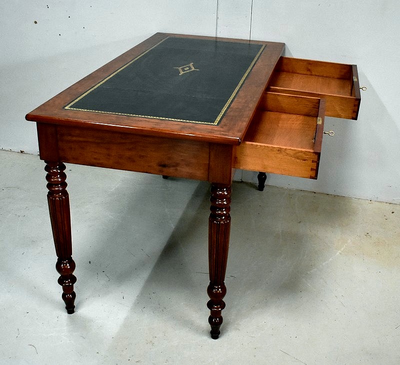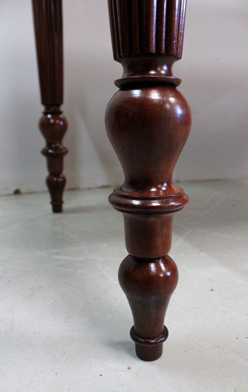 Élégante Table Bureau Toutes Faces, montée sur quatre pieds tournés en Acajou Massif de Cuba, godronnés sur leurs parties centrales.