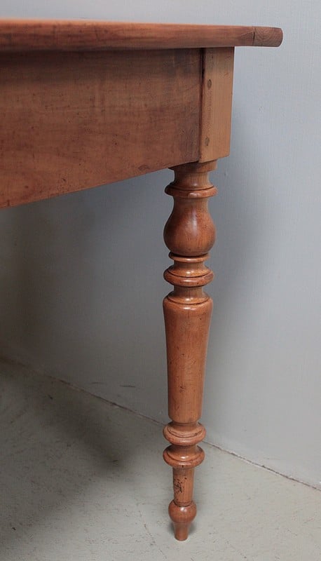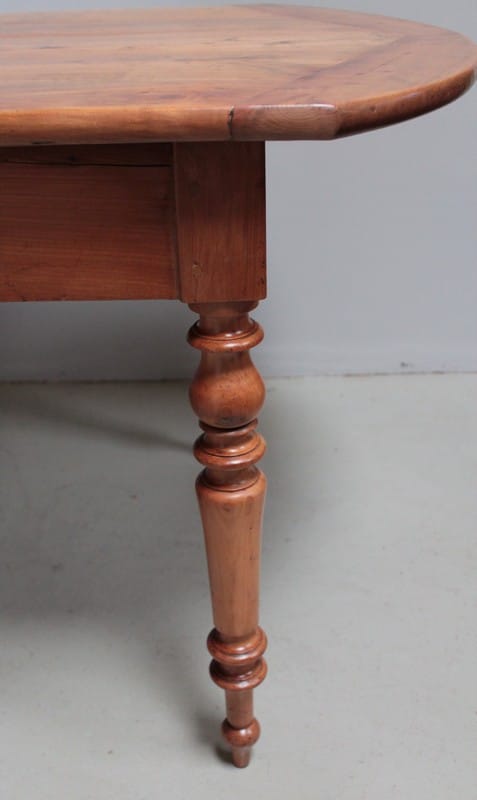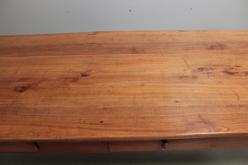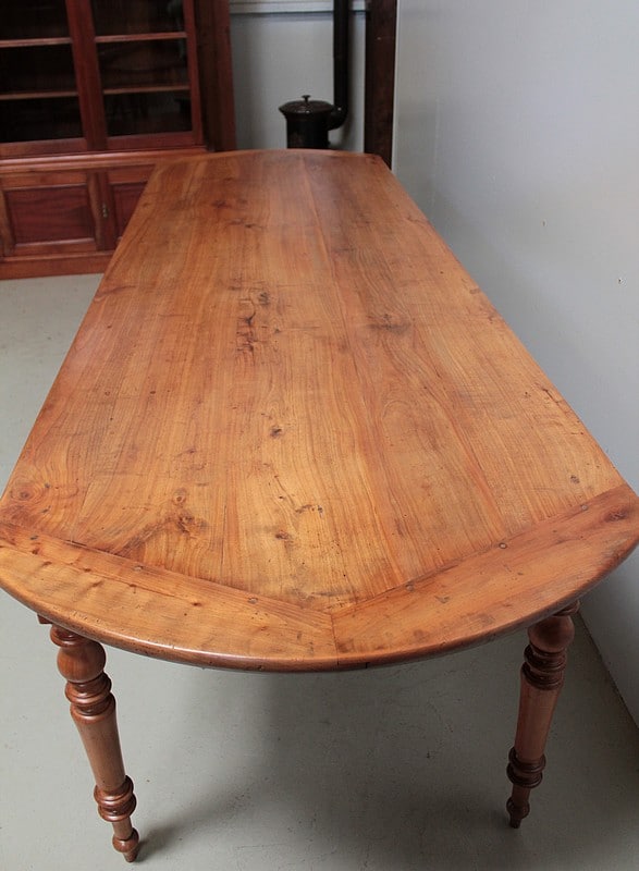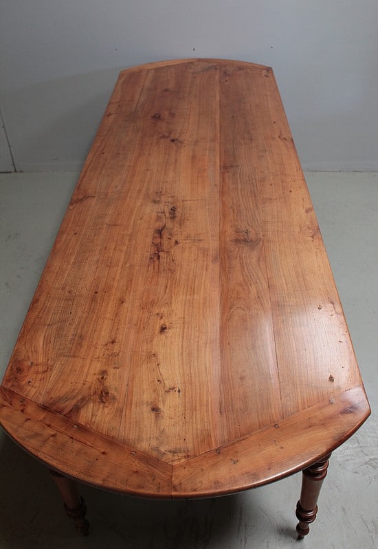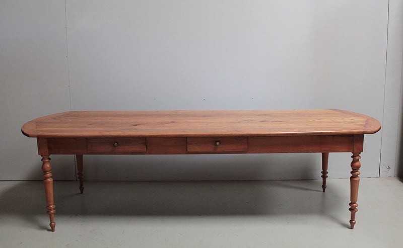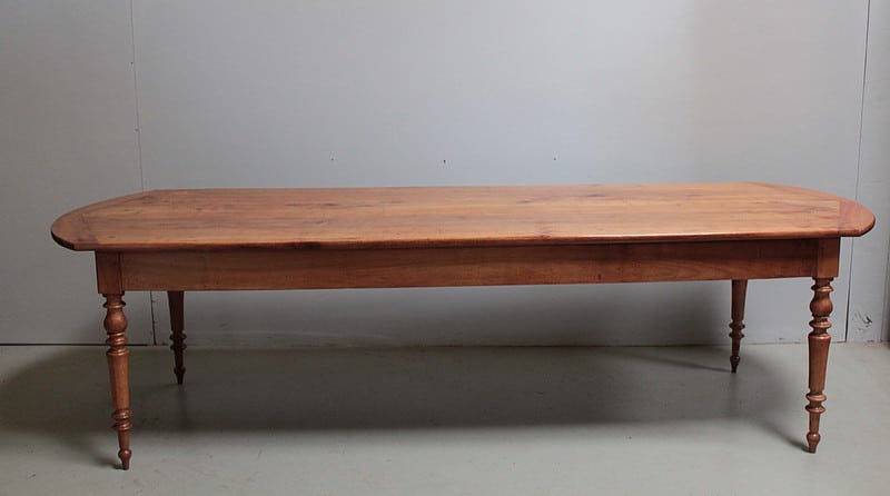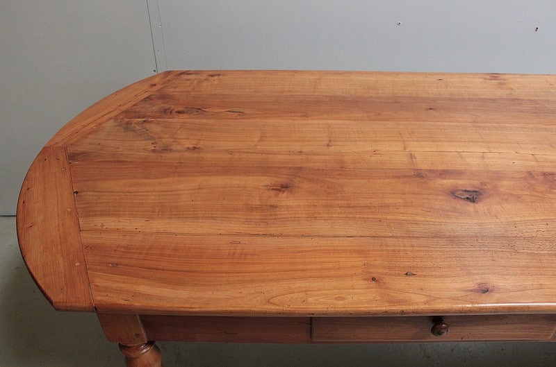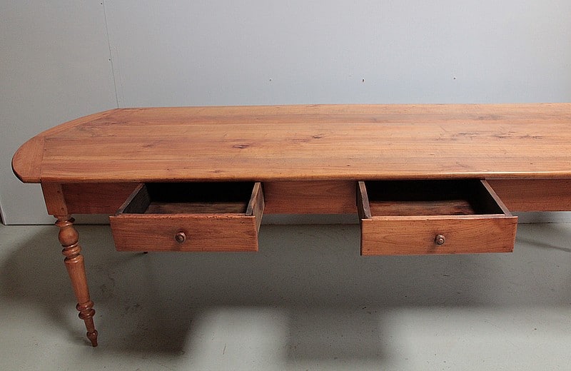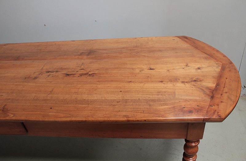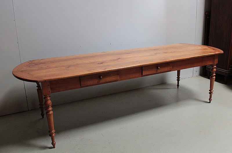 Grande table de communauté en merisier aux extrémités arrondies.