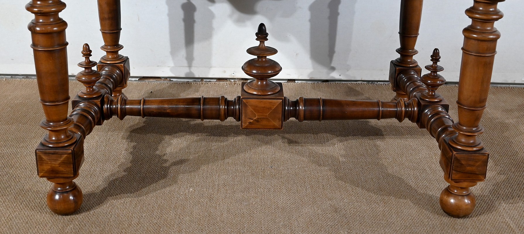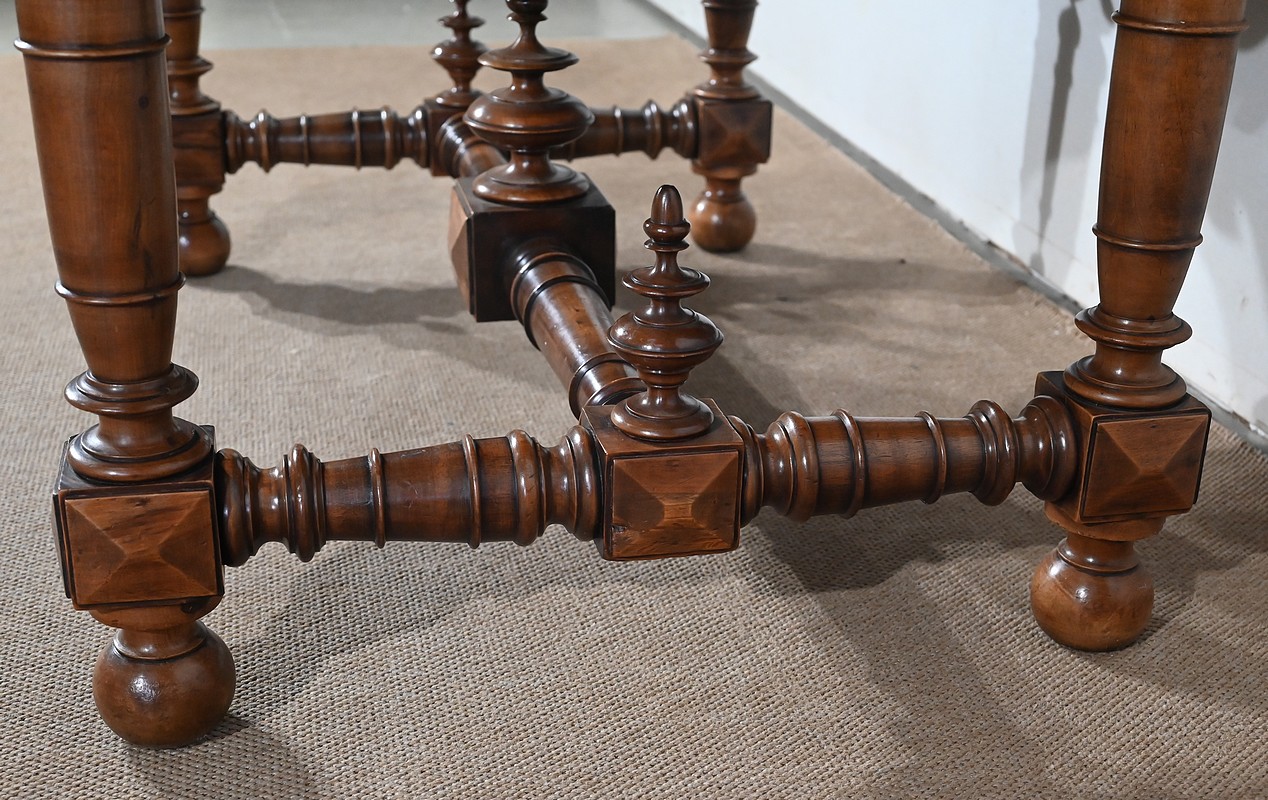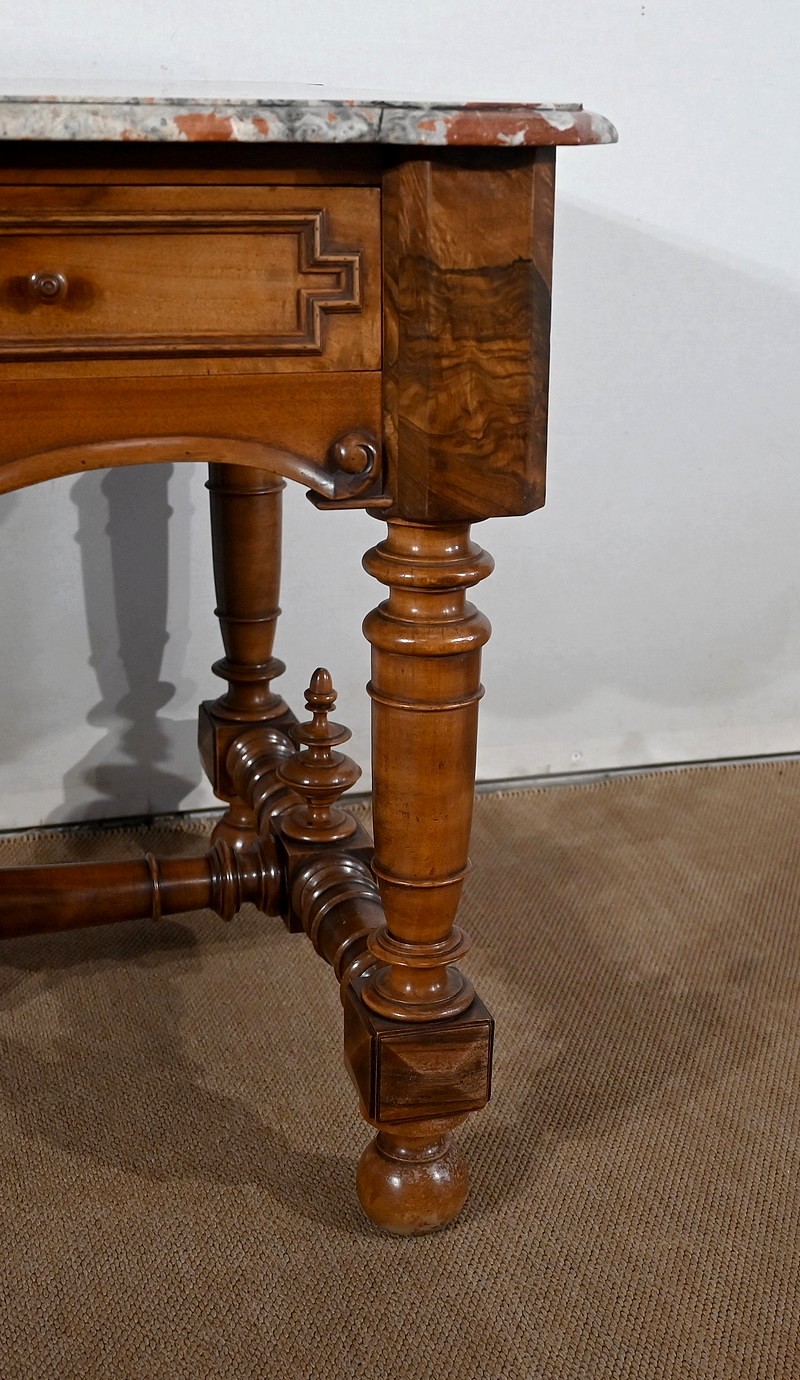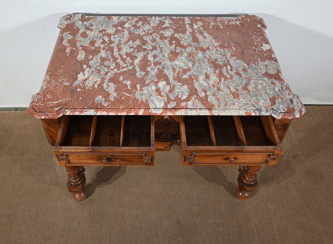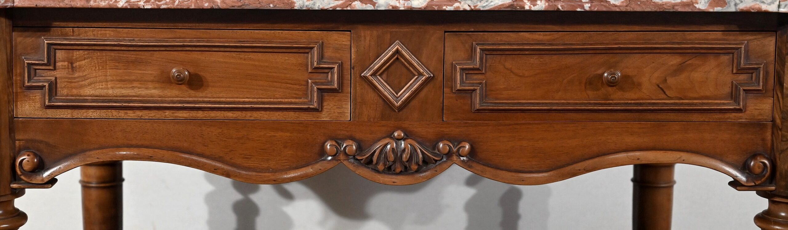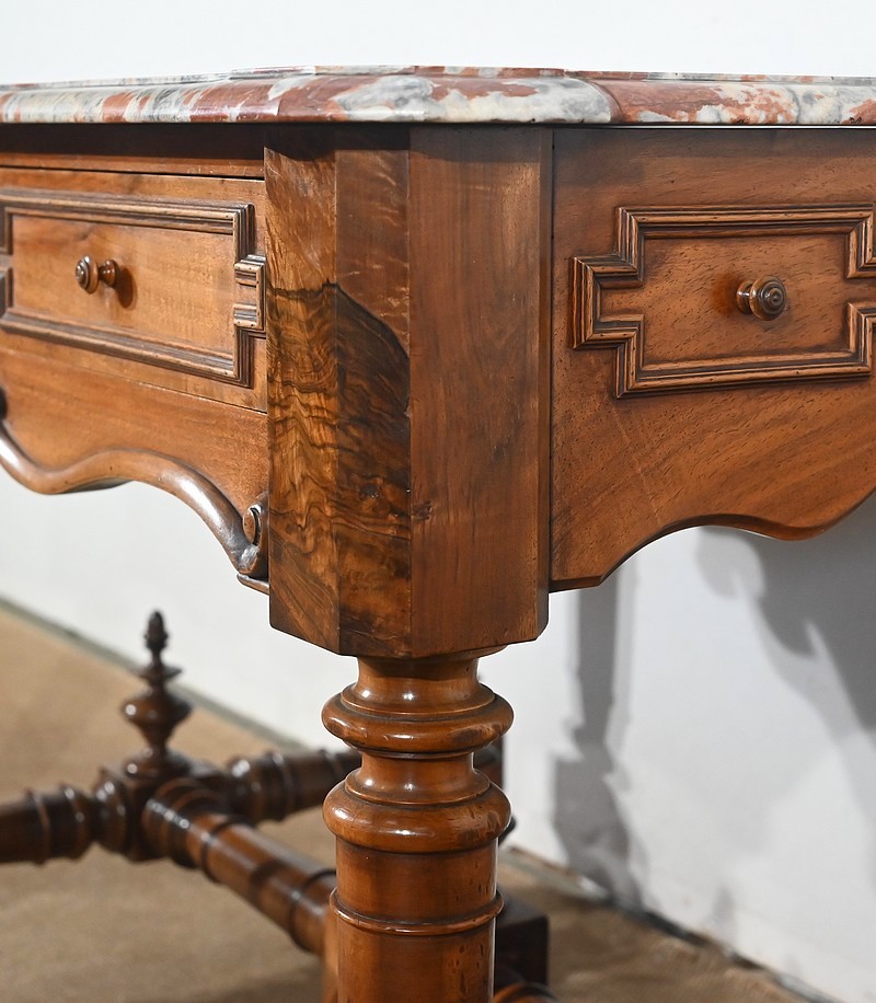 Table à Gibier en Noyer massif et Marbre Incarnat Turquin, goût Louis XIII- Début XXe