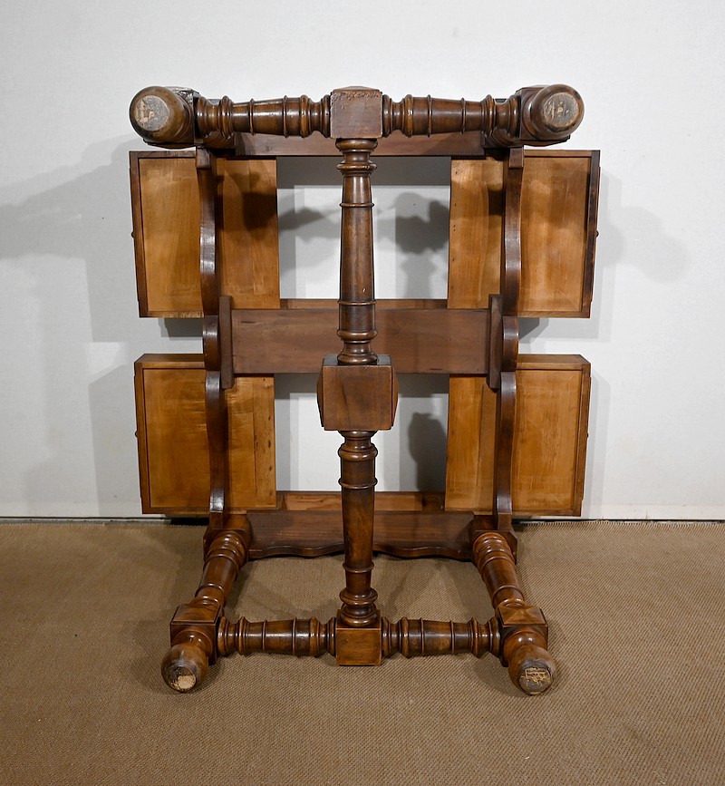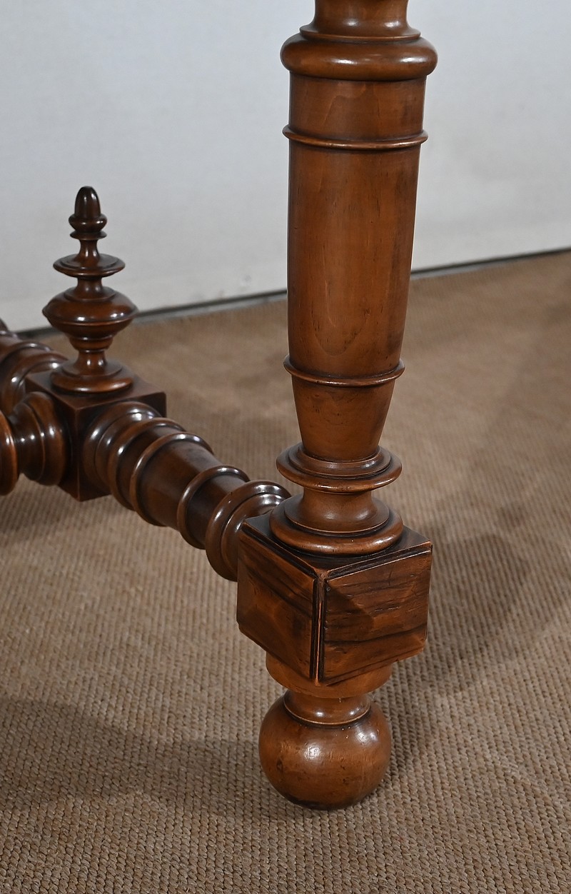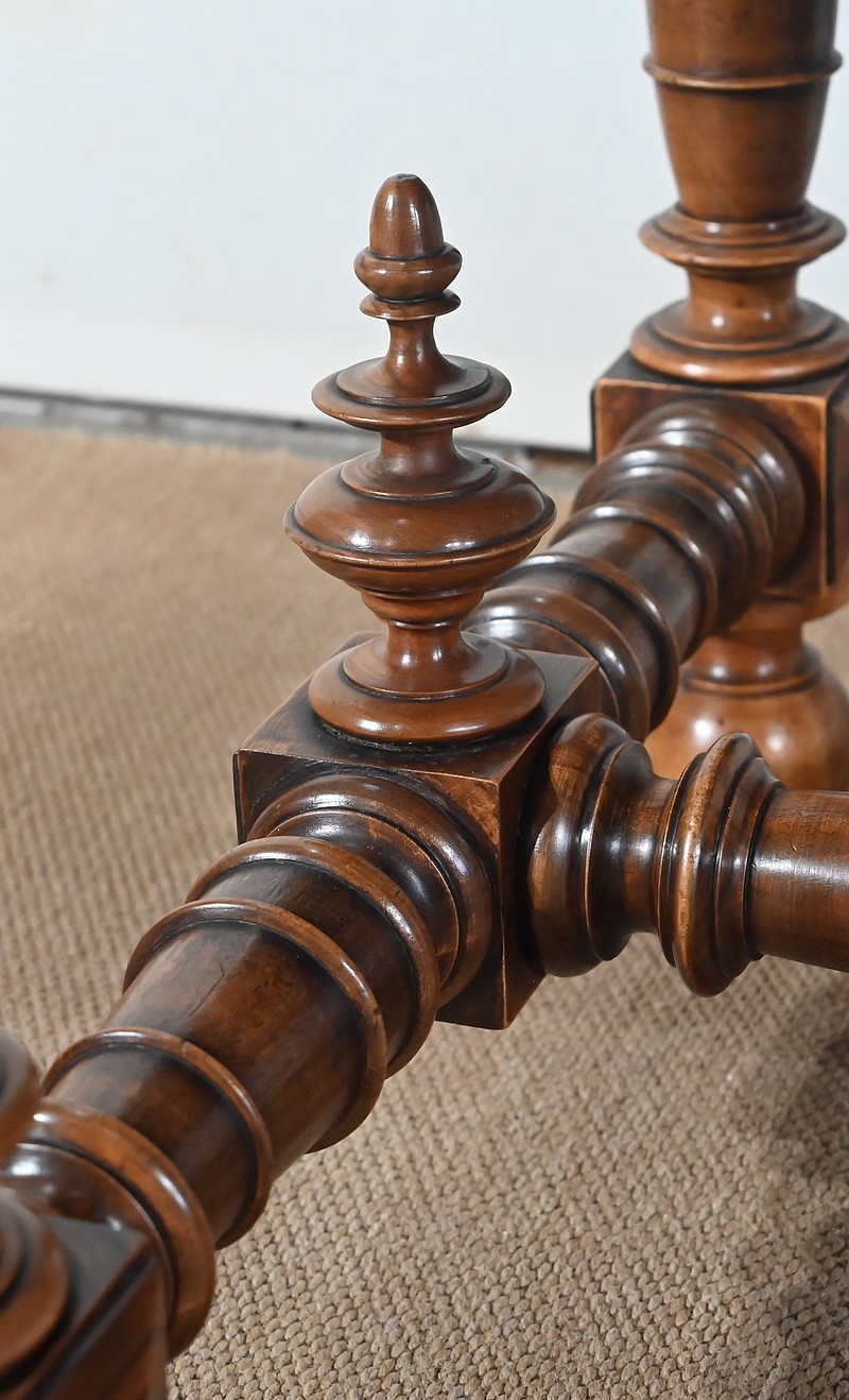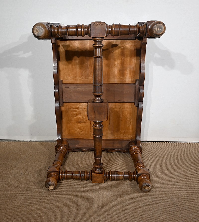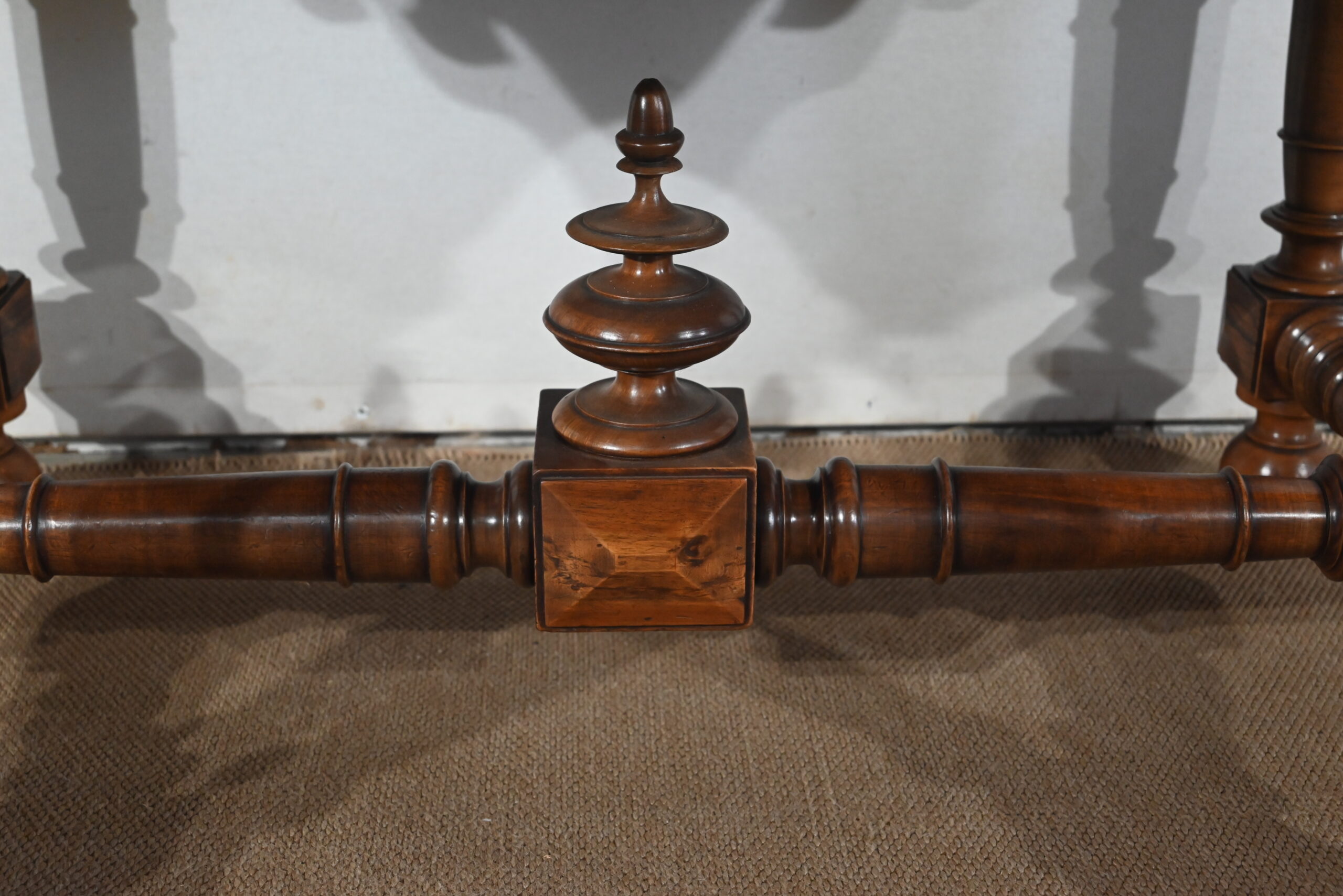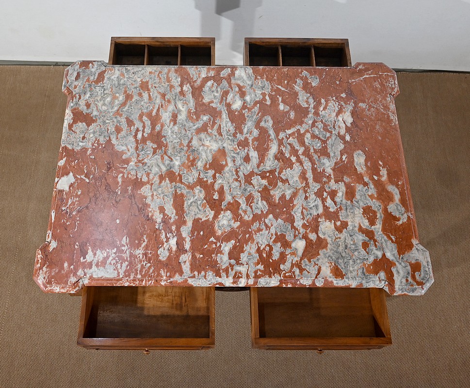Table à Gibier en Noyer massif et Marbre Incarnat Turquin, goût Louis XIII- Début XXe