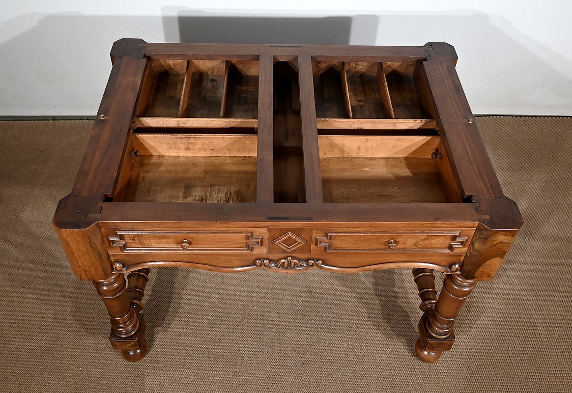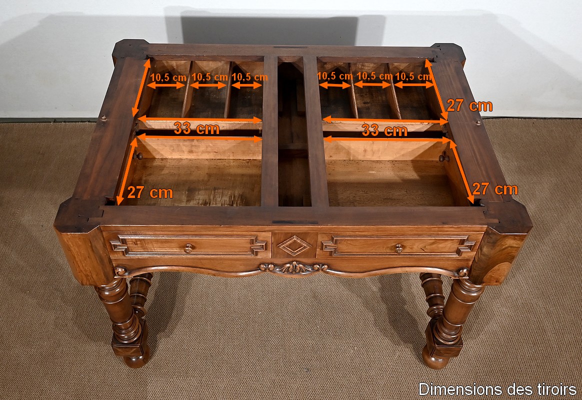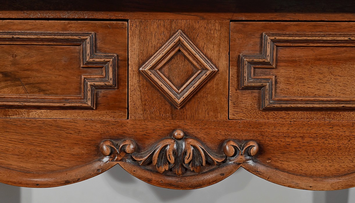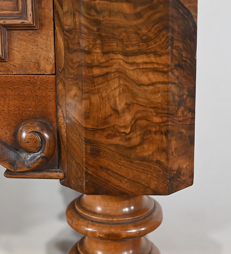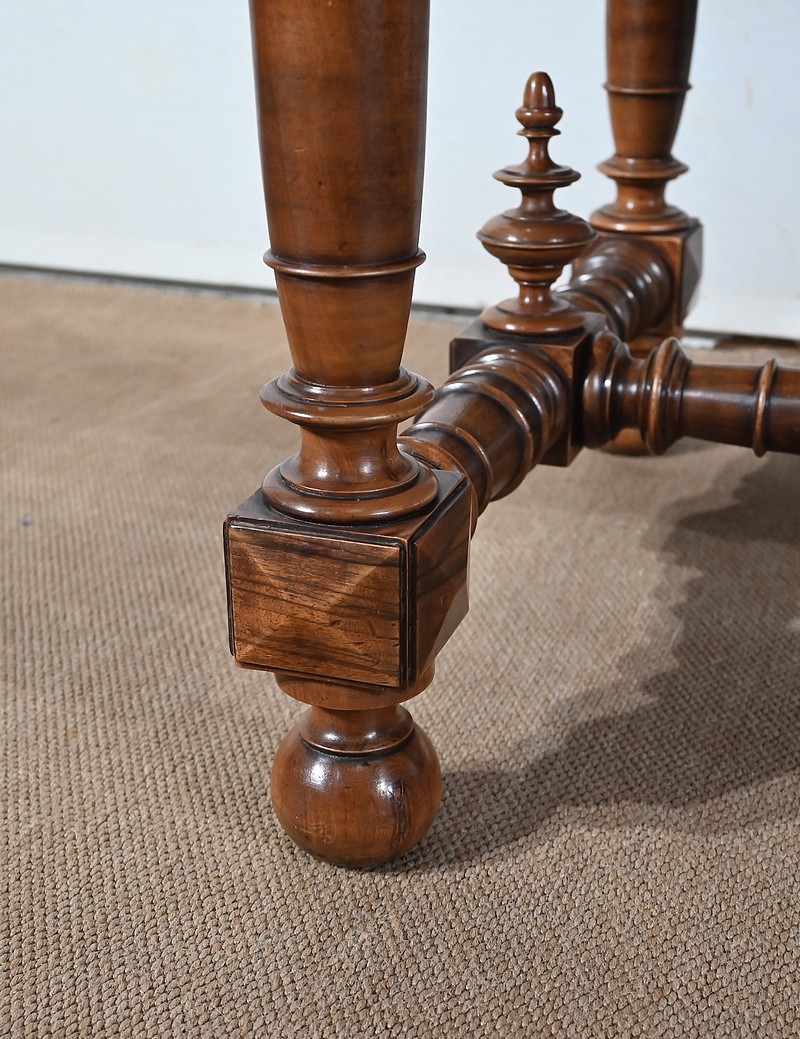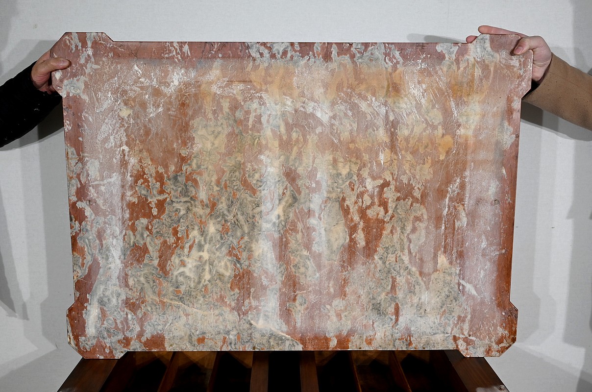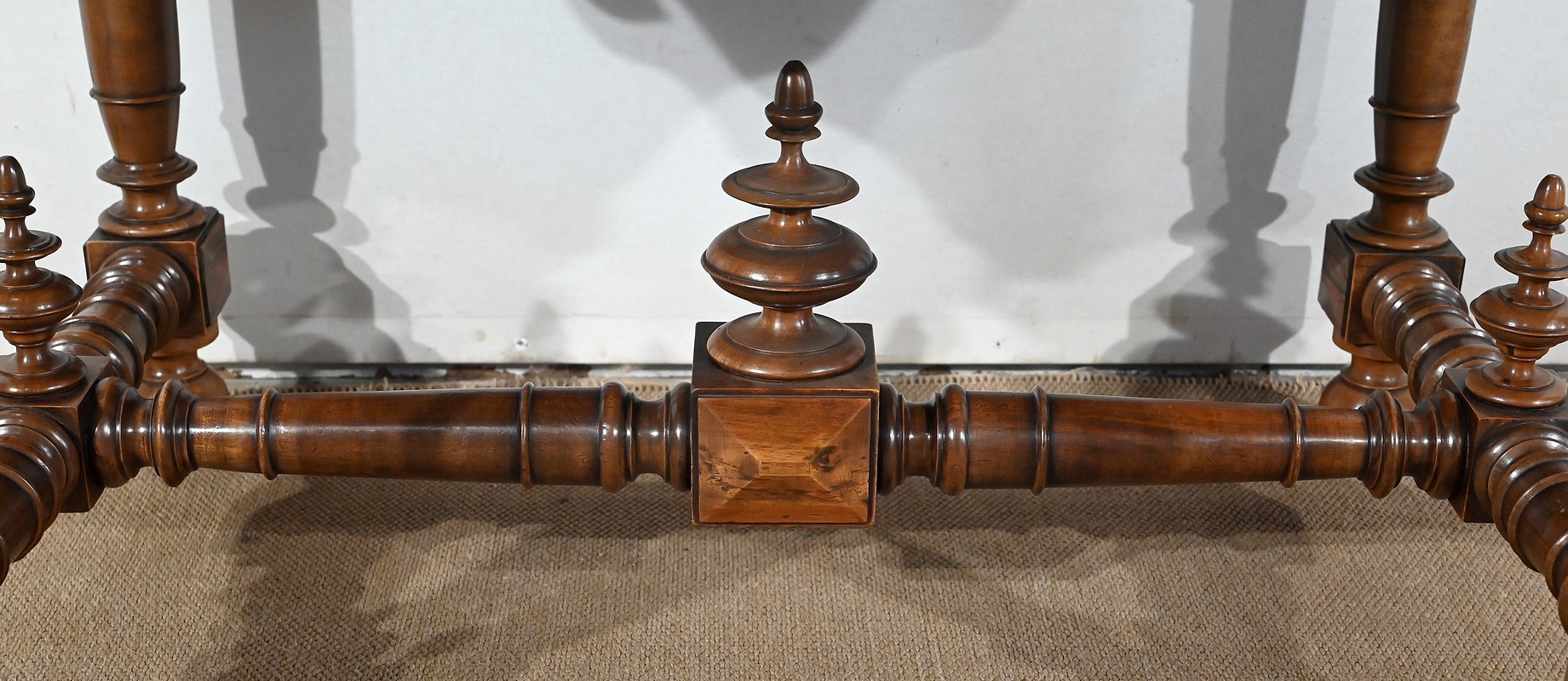 Table à Gibier en Noyer massif et Marbre Incarnat Turquin, goût Louis XIII- Début XXe