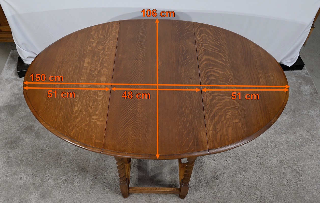 Belle table anglaise Gatelag en chêne massif datant du début du XXe siècle.