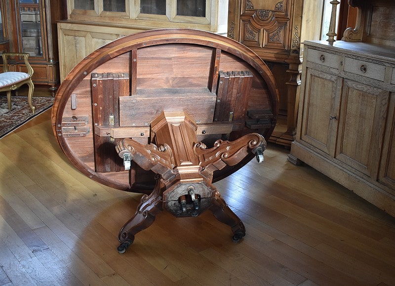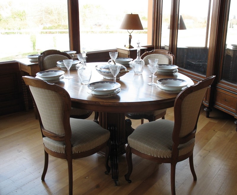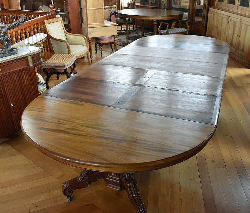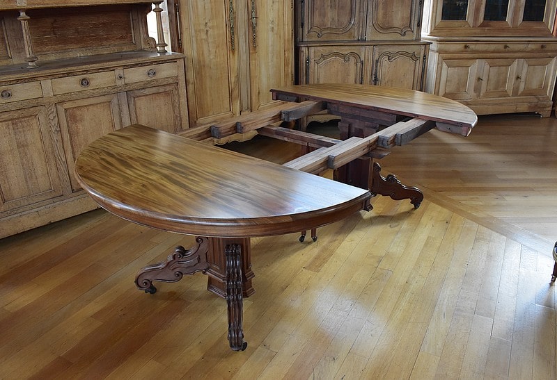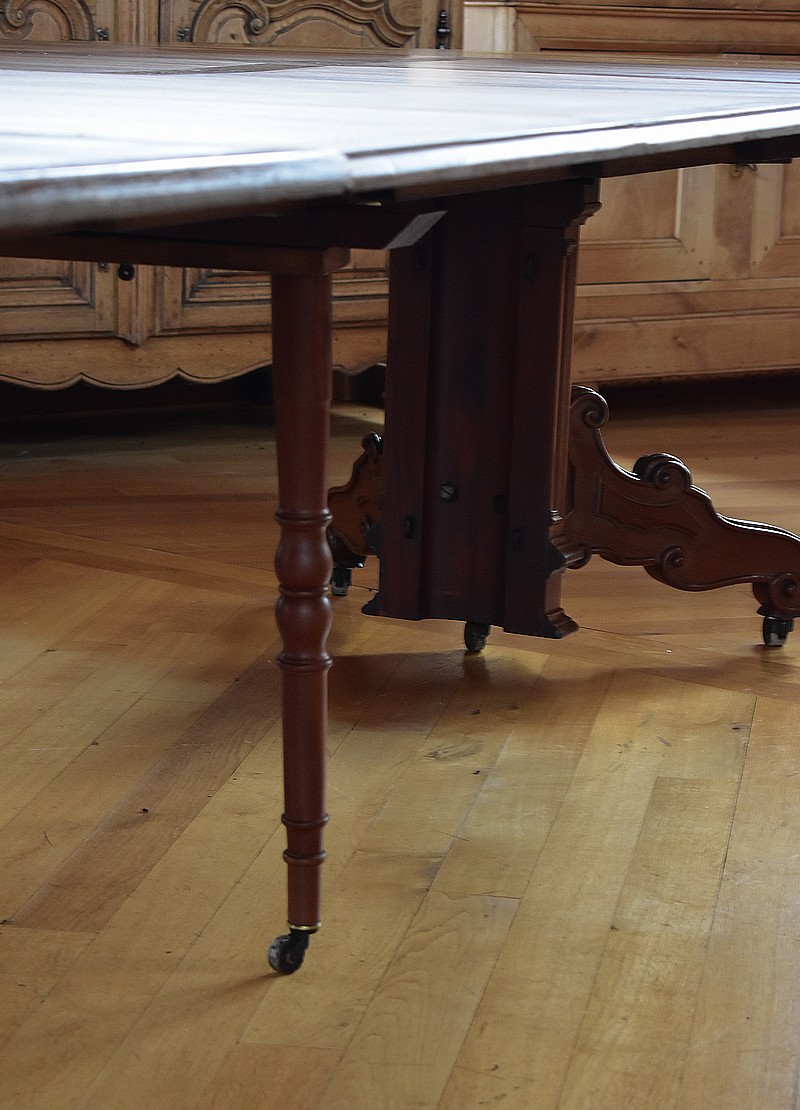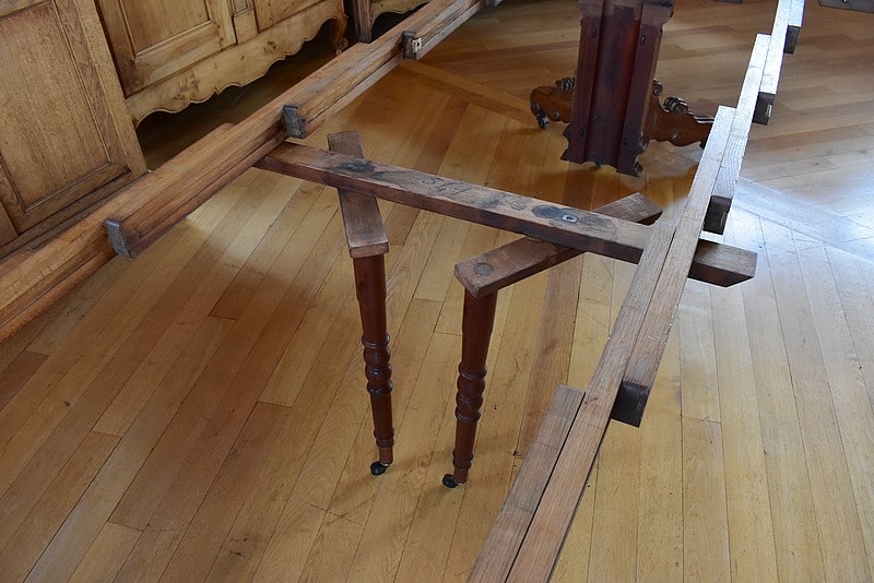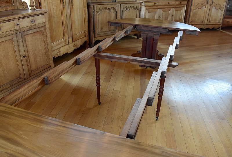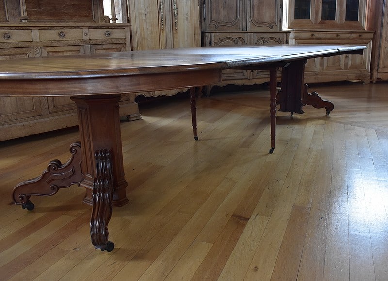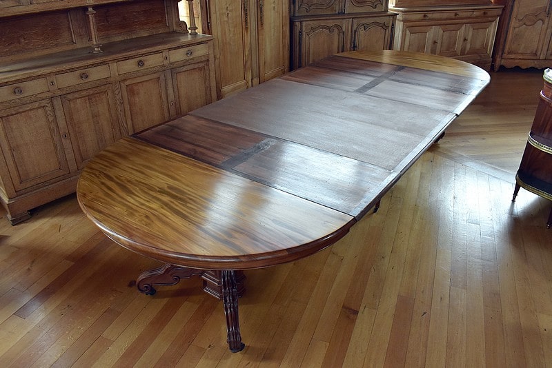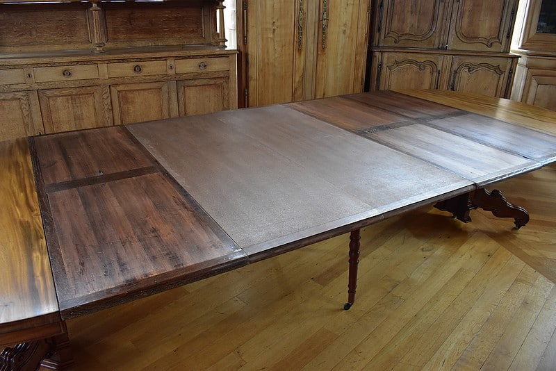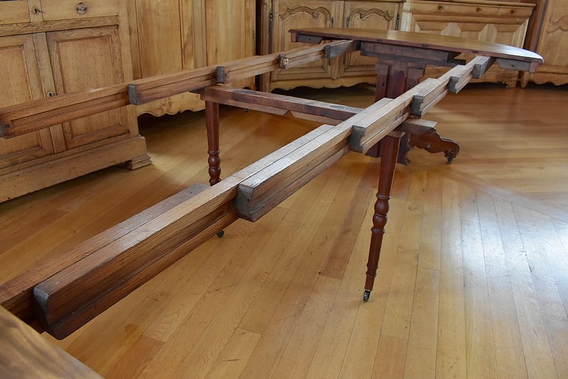 Système d’allonges permettant d’en mettre 5, soit une longueur totale de 3m60 permettant de placer 16 personnes.