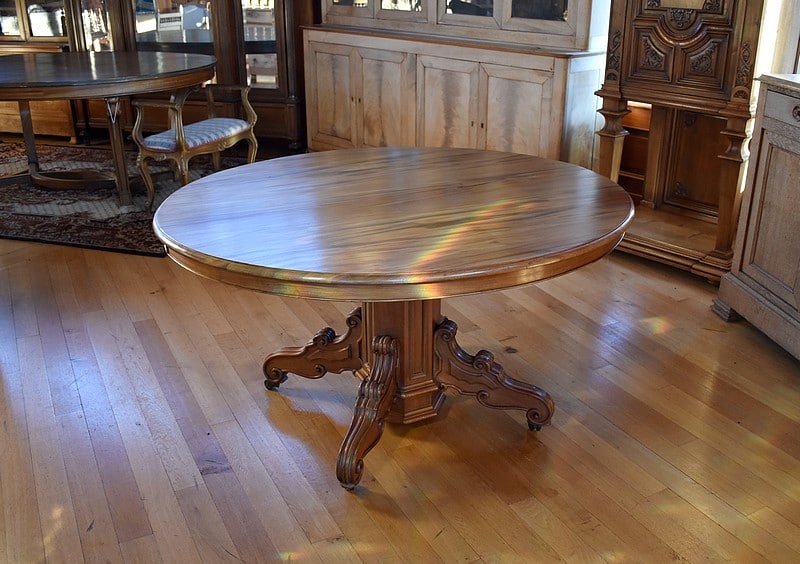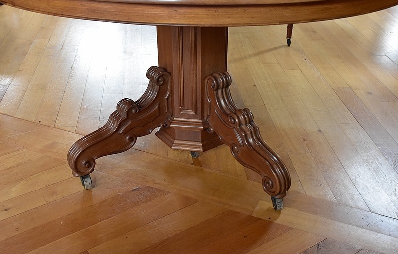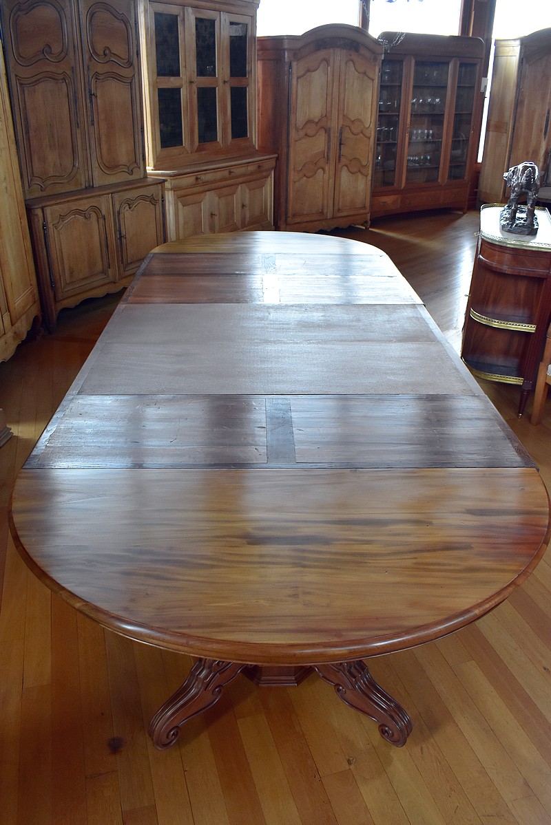 Grande table-guéridon avec pied central en Acajou de Cuba sculpté et mouluré.
