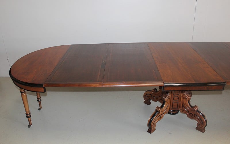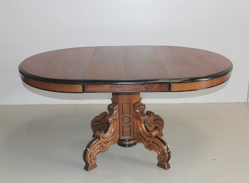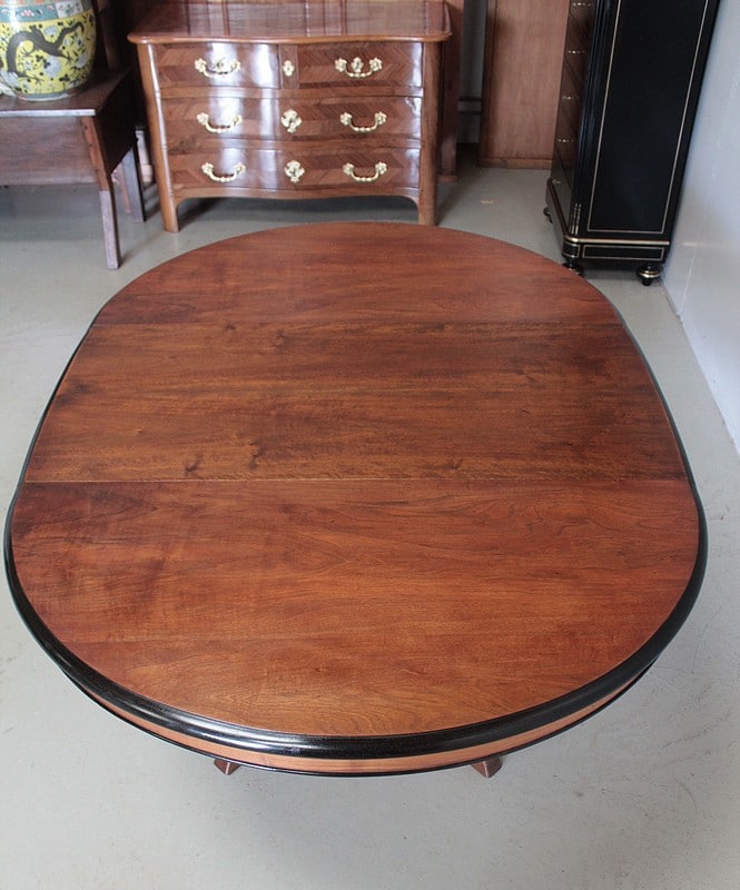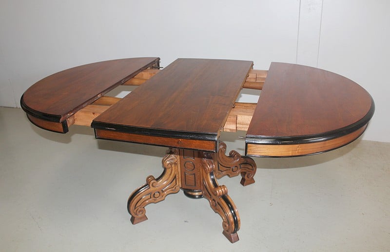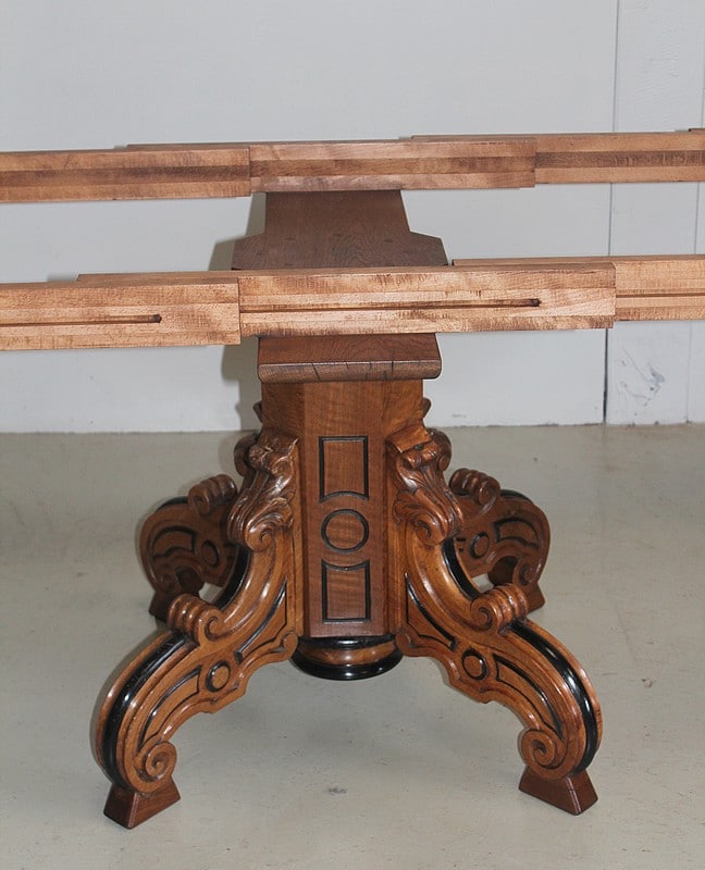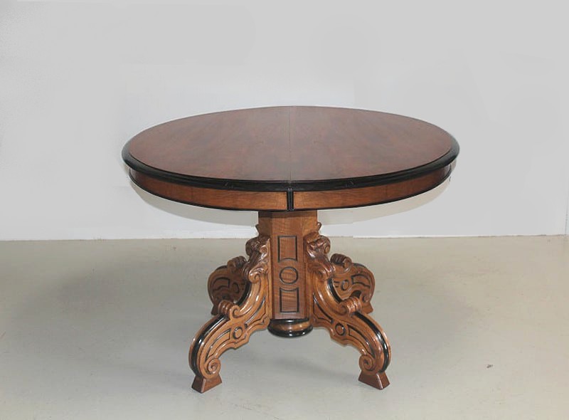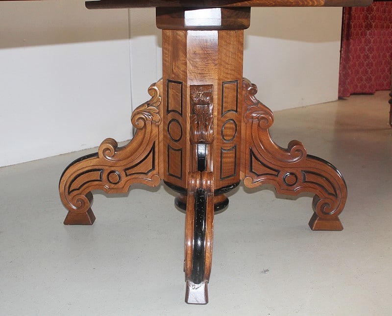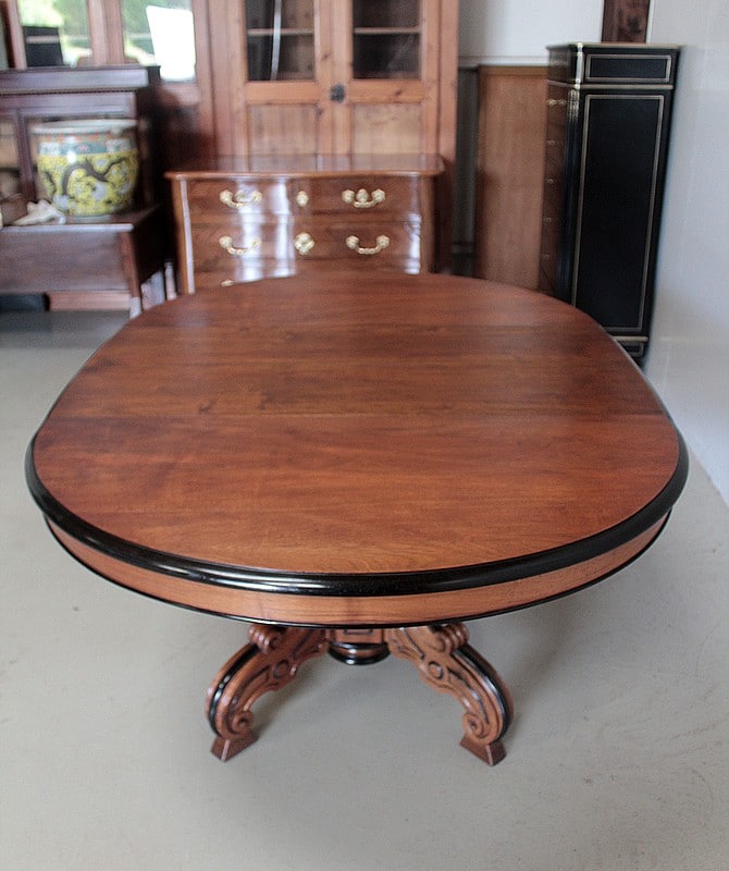 Grande Table-Guéridon dans le goût NAPOLÉON III en noyer, le plateau à bec de corbin rechampi noir.