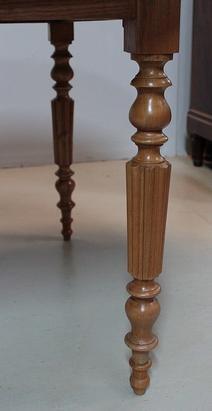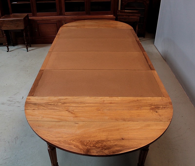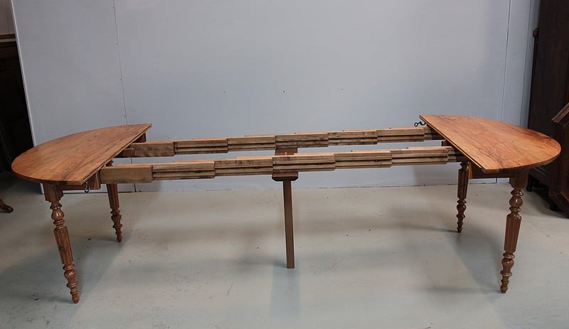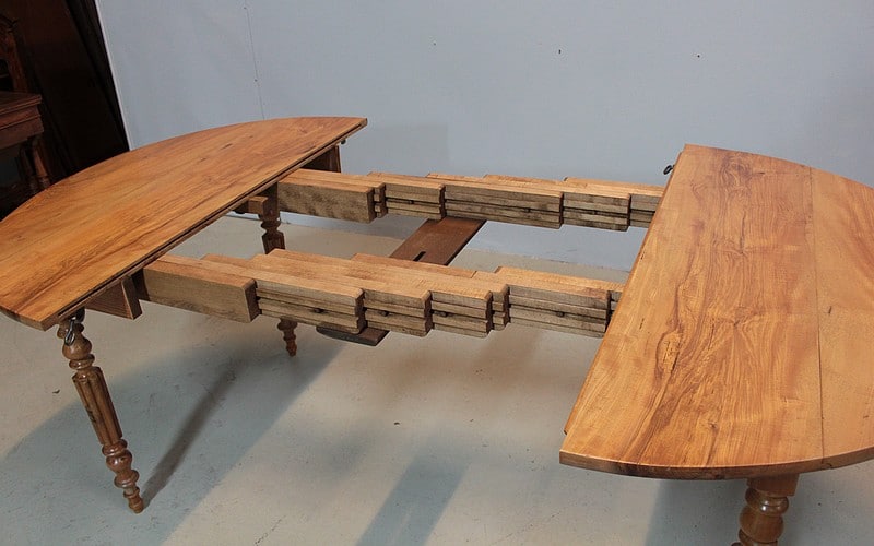 Elle a été mise à allonges sur coulisses en hêtre de 80mm de hauteur et 30mm d’épaisseur.