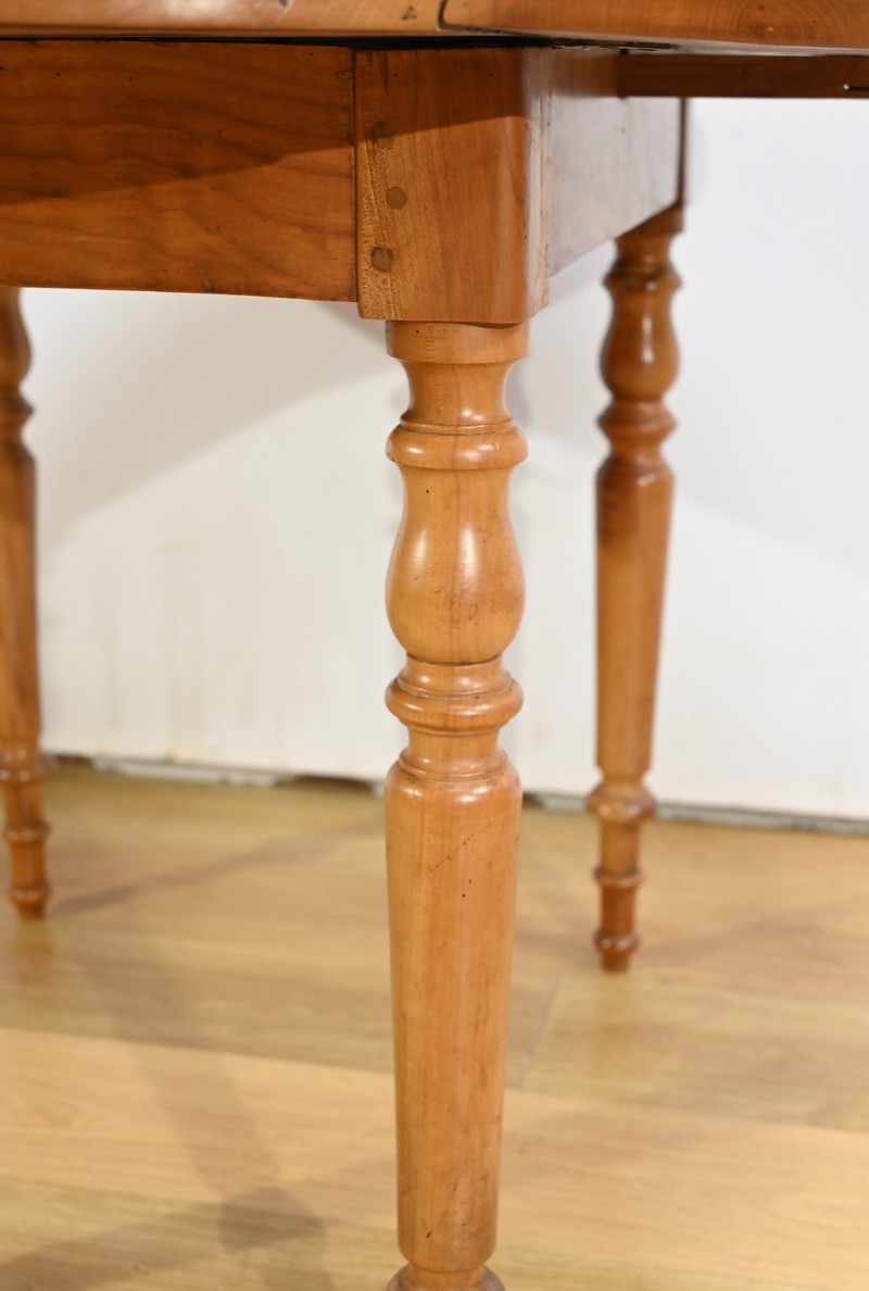 Ces allonges sont maintenues par un double pied central identique et démontable, mais pouvant rester en place une fois la table close.