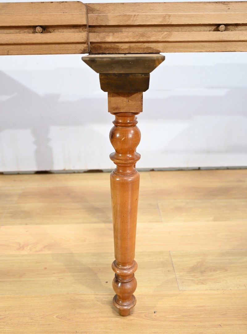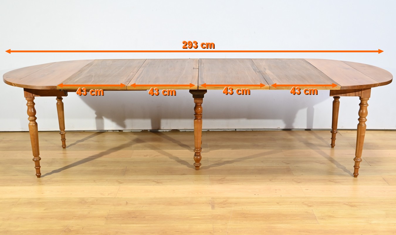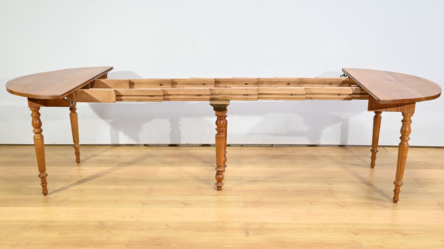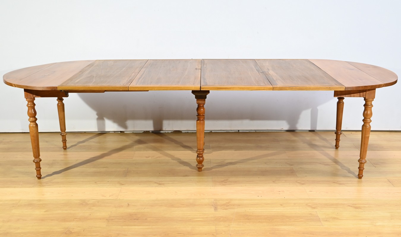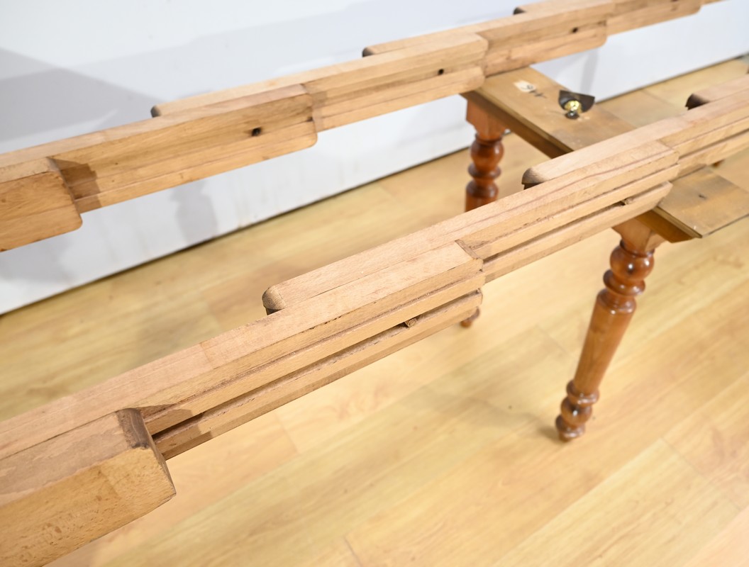 Cette table dispose de quatre allonges offrant au maximum plus du double de sa capacité, soit 12 à 14 couverts.
