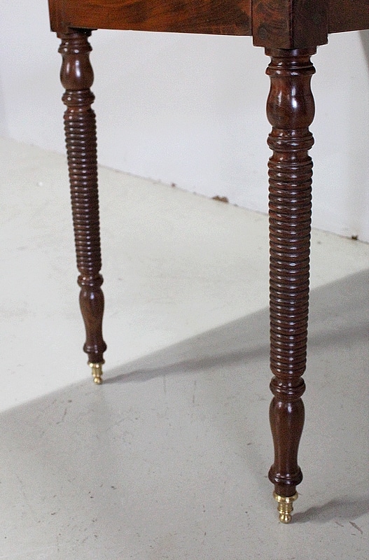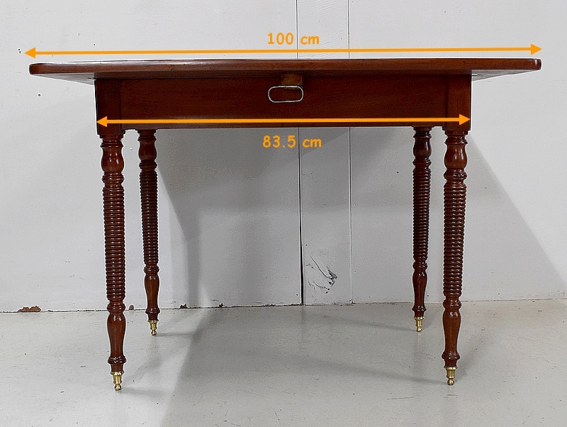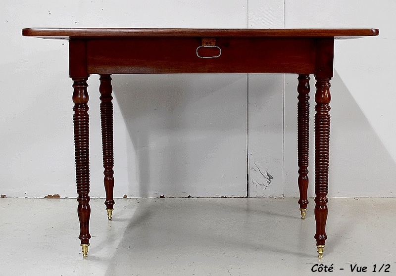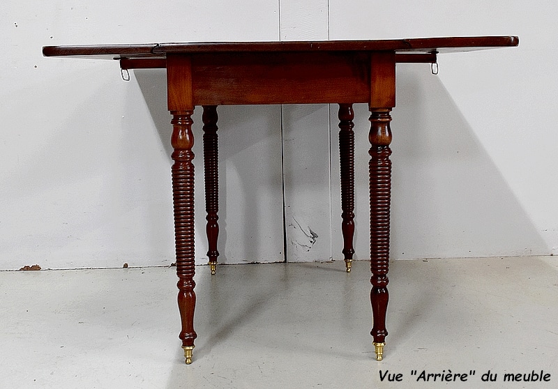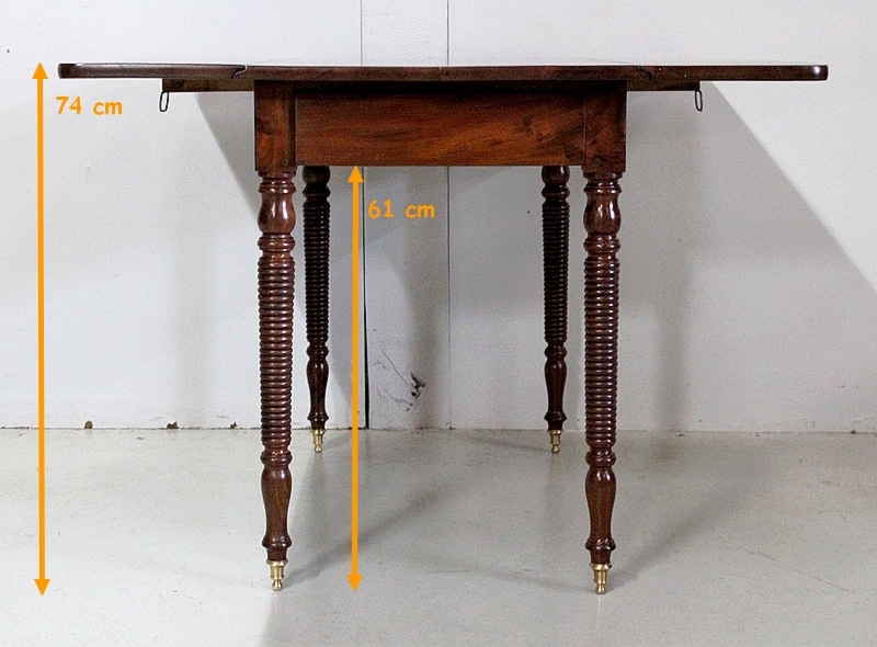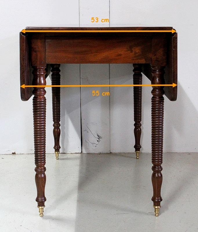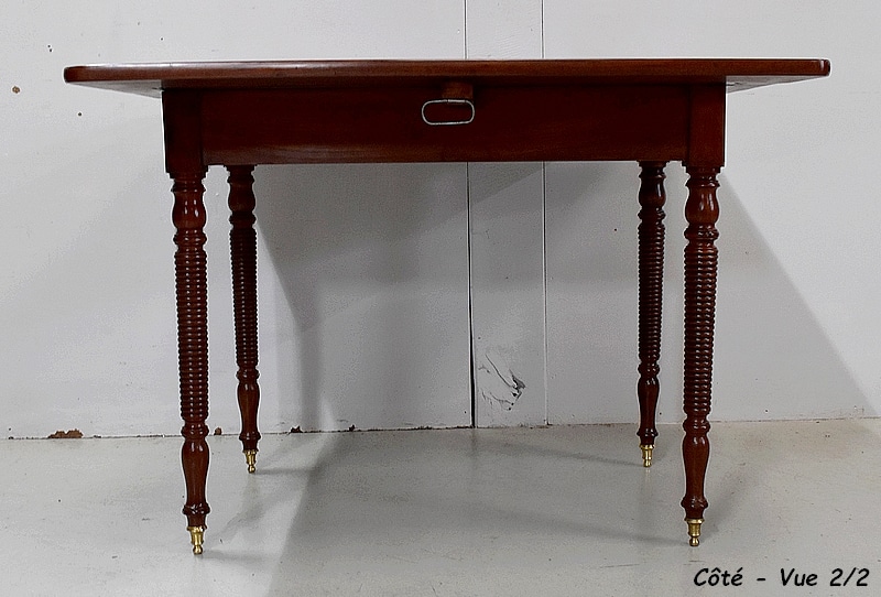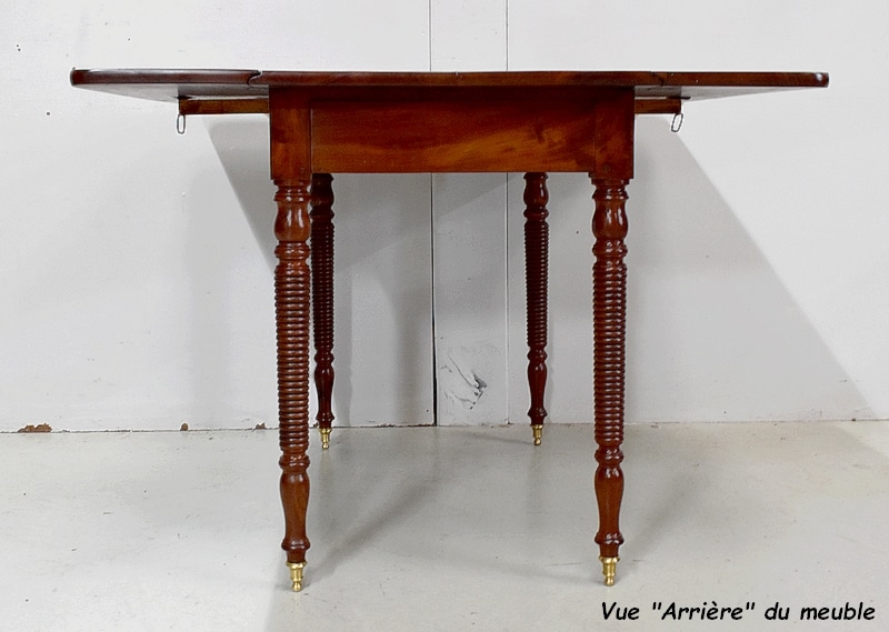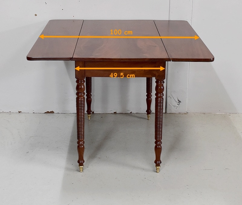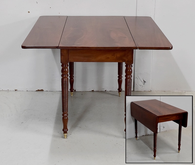 Table Rectangulaire Française, d’époque Louis-Philippe, appareillée d’un Système à Abattants. Caractéristique suffisamment Rare pour être soulignée, sa structure de Qualité est Intégralement conçue en Acajou de Cuba massif.