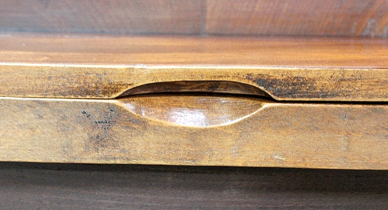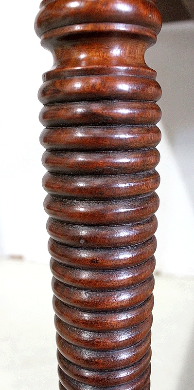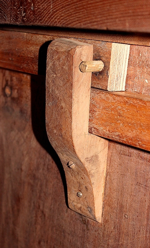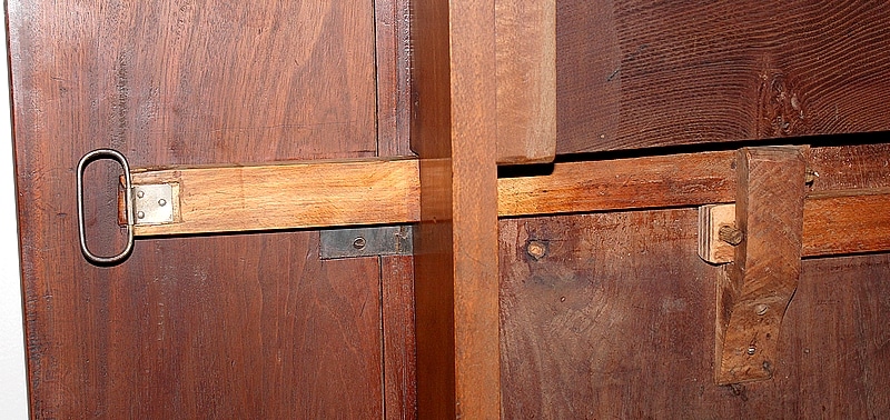 Les Abattants sont soutenus en position dépliés par des Tirants, placés de part et d’autre de ce Bien presque Bicentenaire. On notera la possibilité d’ouvrir Indépendamment chacun de ces deux volets.