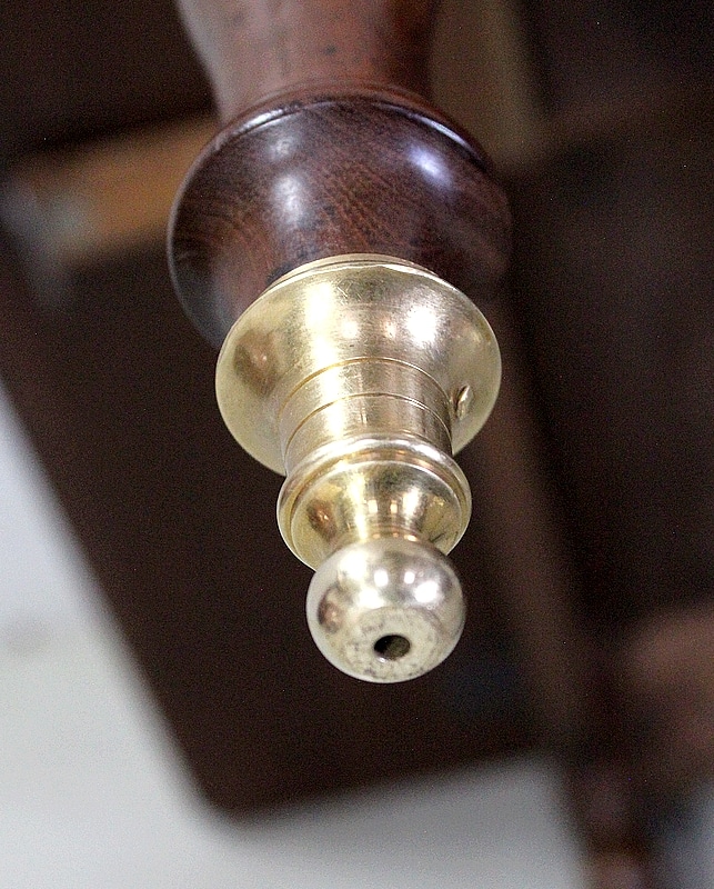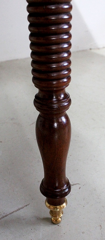 L’ensemble repose sur quatre pieds Élégamment Tournés, terminés par des Sabots Boules en Laiton.