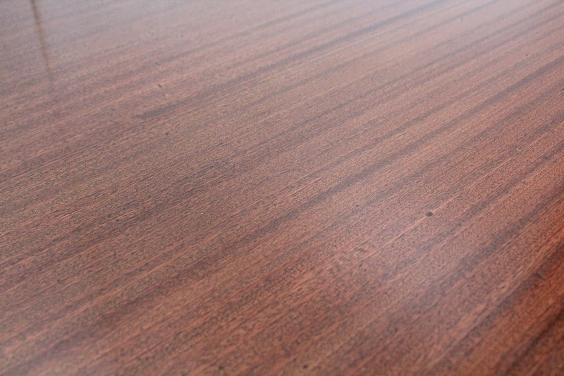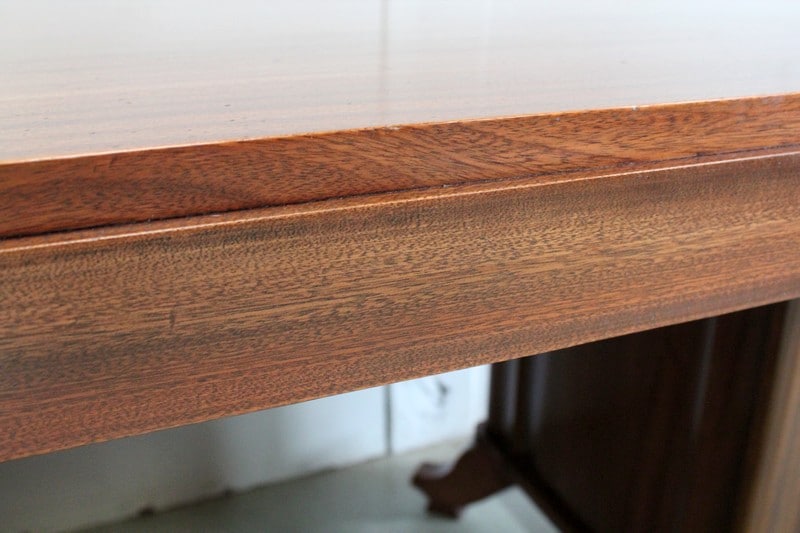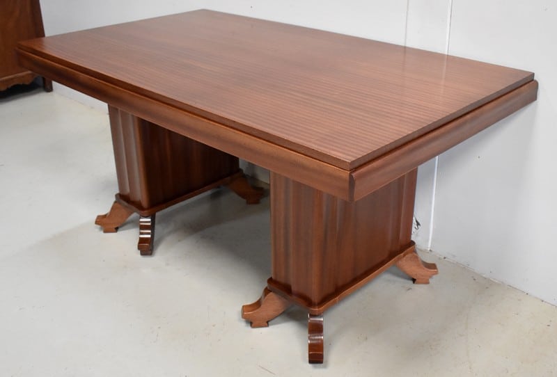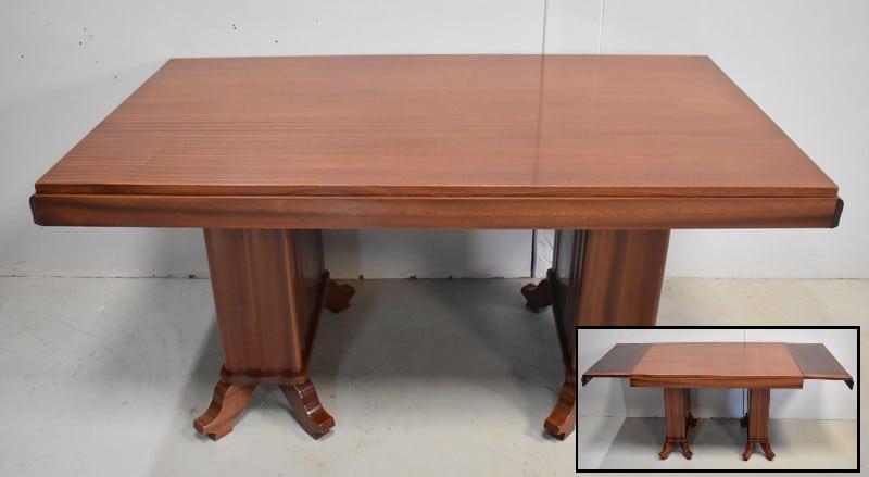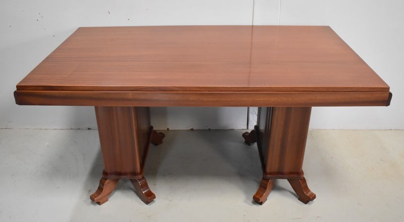 Table Rectangulaire avec dessus en Acajou plaqué en léger retrait.