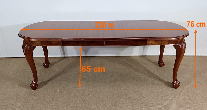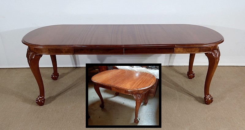 Importante table rectangulaire en acajou sculpté et mouluré de style Chippendale.