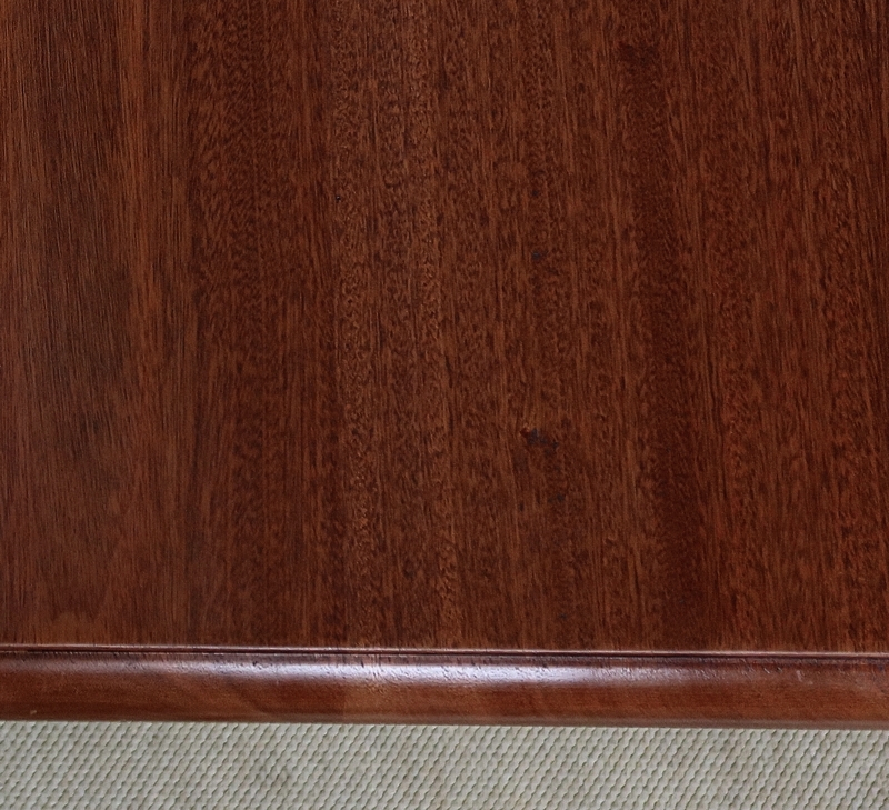 La ceinture peu haute en placage d’acajou présente une moulure importante en partie basse.