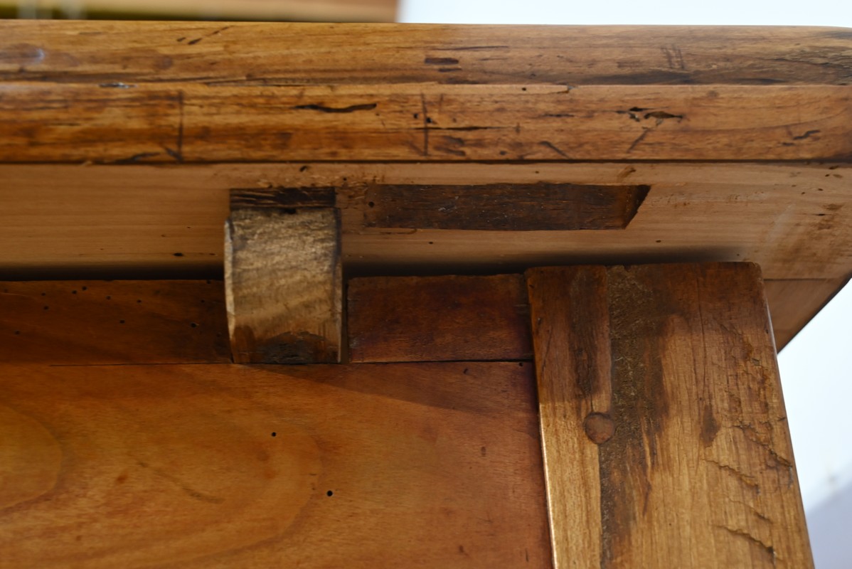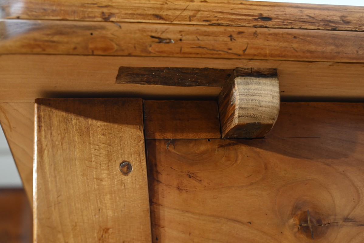 Le dessus est composé de quatre planches bien jointives, sans élément de rebouchage en composite, avec embouts.